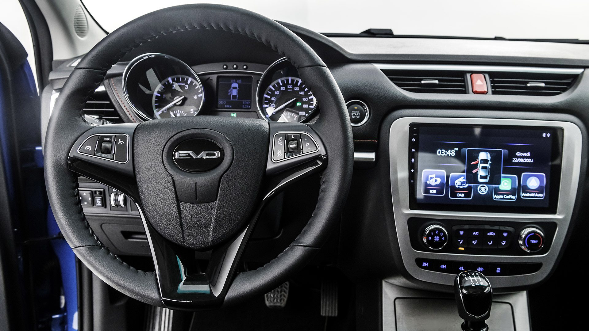 Si tenemos en cuenta que el EVO Cross4 compite en el segmento de los pick ups económicos, la dotación se puede considerar razonable. En seguridad incluyen las luces diurnas por LEDs, control de crucero, sensores de estacionamiento traseros, cámara de visión posterior, faros antiniebla, encendido de luces automático y alarma antirrobo.