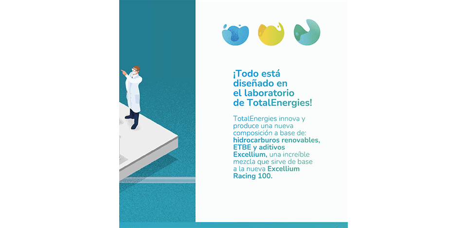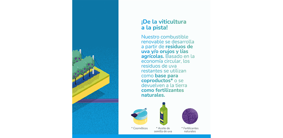 Aseguran que con el Excellium Racing 100 se emiten, al menos, un 65% menos de CO2 en coches de carreras. Pero, ¿cómo es eso de que sale del vino? (No te pierdas el esquema en la galería de imágenes).