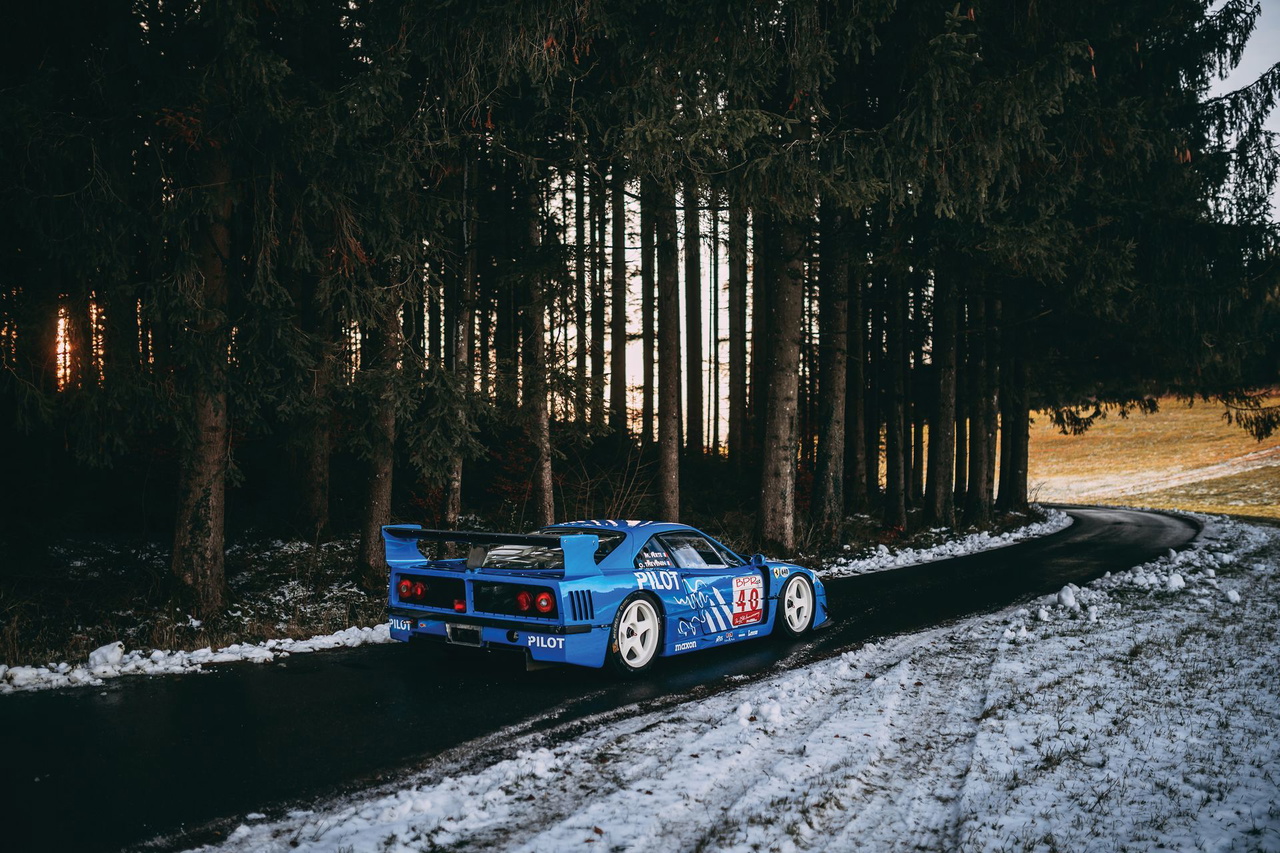 Este renovado sistema de sobrealimentación iba de la mano de un sistema Weber-Marelli de inyección. El resultado de todo esto era que la potencia pasaba de los más que respetables 478 CV a unos increíbles 700 CV. Además, Michelotto reforzaba el chasis de estos F40, instalaba una transmisión reforzada y modificaba la carrocería en busca de un mejor rendimiento aerodinámico. ¿Habíamos mencionado la increíble decoración de carreras de la unidad en concreto? La decoración azul de Pilot con las llantas blancas forman un delicioso contraste en las espectaculares fotos de Stephan Bauer (no os perdáis su cuenta de Instagram).