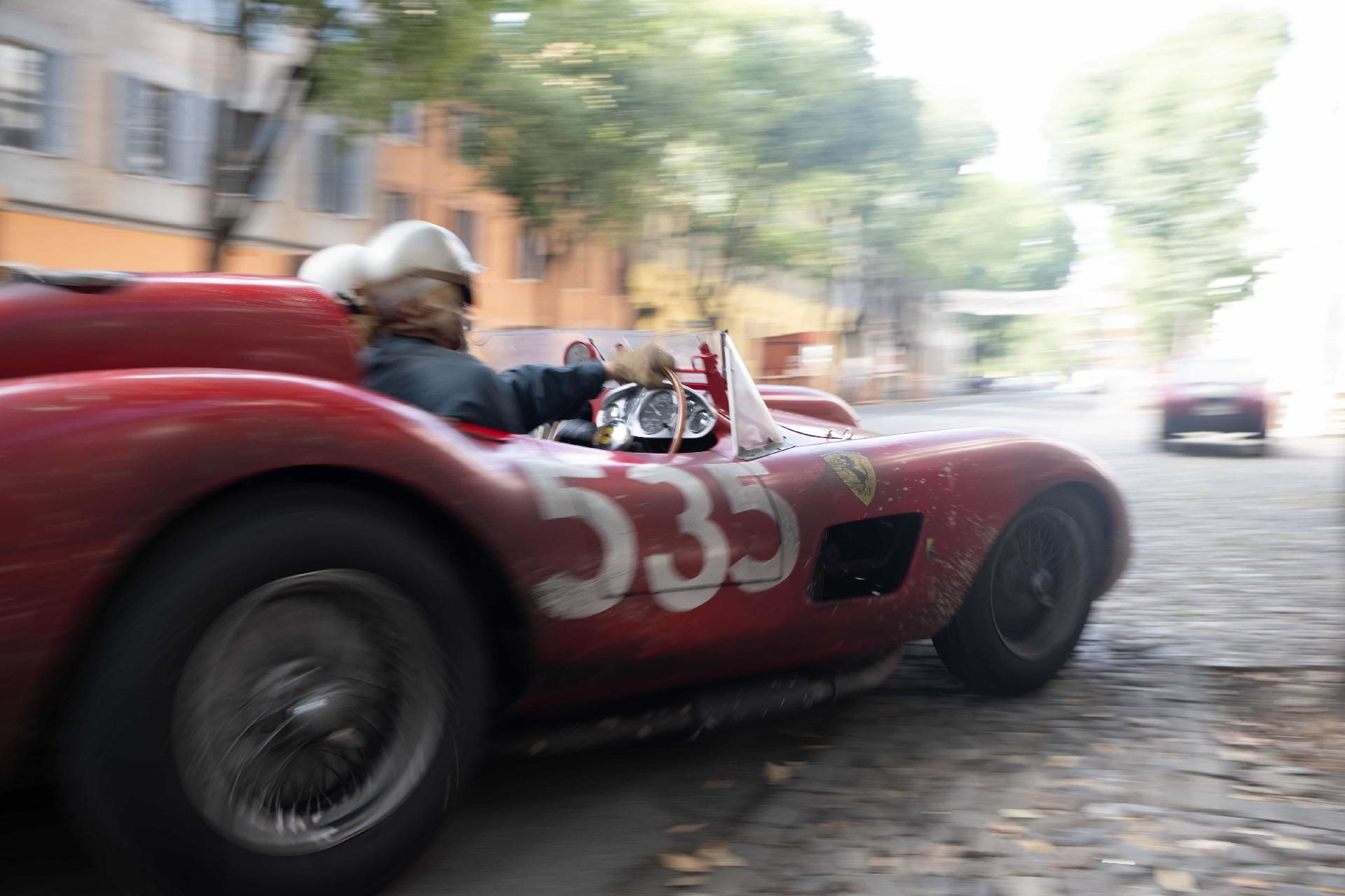 Este coche es reseñable no solo por su distinción de lo que un Ferrari representaba en aquellos años. También establece el tono de la película cuando vemos cómo Enzo sale de casa y lo empuja cuesta abajo antes de arrancar el motor, por miedo a despertar a su amante o a su hijo al marcharse a trabajar. Conduce la humilde berlina con gusto y habilidad hasta toparse con otro pilar de la cinta: el piloto Alfonso de Portago (interpretado por Gabriel Leone).
