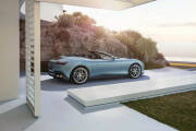 La llegada de la capota de lona ha obligado a Ferrari a modificar la línea trasera para que la luneta pueda plegarse. Encontramos, por lo tanto, una tapa con un par de jorobas y un spoiler de fibra de carbono cuya inclinación se modifica automáticamente: hasta 100 km/h permanece cerrado y a 170 km/h hace acto de presencia. A 250 km/h ejerce una presión extra de 95 kilogramos y a 300 km/h se levanta para incrementar la carga aerodinámica.