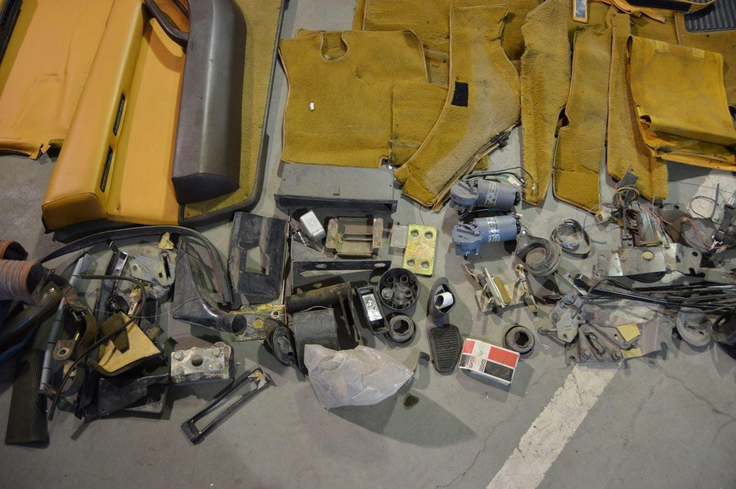 El salpicadero está ajado y el volante, muy gastado. Además, un vistazo al kilometraje del cuadro de instrumentos y el del informe de Carfax refleja problemas: este coche ha recibido un «afeitado». Aunque el chasis parece sólido, presenta algo de óxido y revela que ha habido goteo de fluidos en la zona del motor. La caja de cambios tiene parte del varillaje atascado. ¿Menudo desastre, verdad? Las piezas incluidas por el vendedor están en un estado mediocre, pero al menos permiten reconstruir el interior al completo.