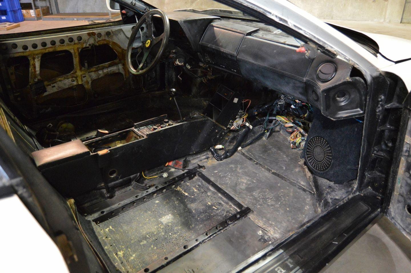 Está actualmente a subasta y ya roza los 30.000 dólares, un precio incluso alto para un coche que no funciona, que no tiene interior y que lleva más de 10 años parado. Su historia es de lo más peliaguda. Por su informe Carfax se sabe que el coche era originalmente de color «Rosso Corsa», y que en 1994 tuvo un grave accidente frontal, que le granjeó un «salvage title», una mancha en su expediente automovilístico. Hace una década, su dueño lo envió a un taller de Florida para una restauración, pero se esfumó al poco tiempo.