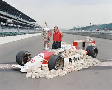 El negocio de las carreras funcionaba en efectivo y lo siguió haciendo por muchos años. Así entregaban el premio a los pilotos, billete en mano. Por la mente de Fittipaldi pasó que sería buena idea hacerse las fotos que puedes ver en el artículo (cortesía del Indianapolis Motor Speedway Museum).