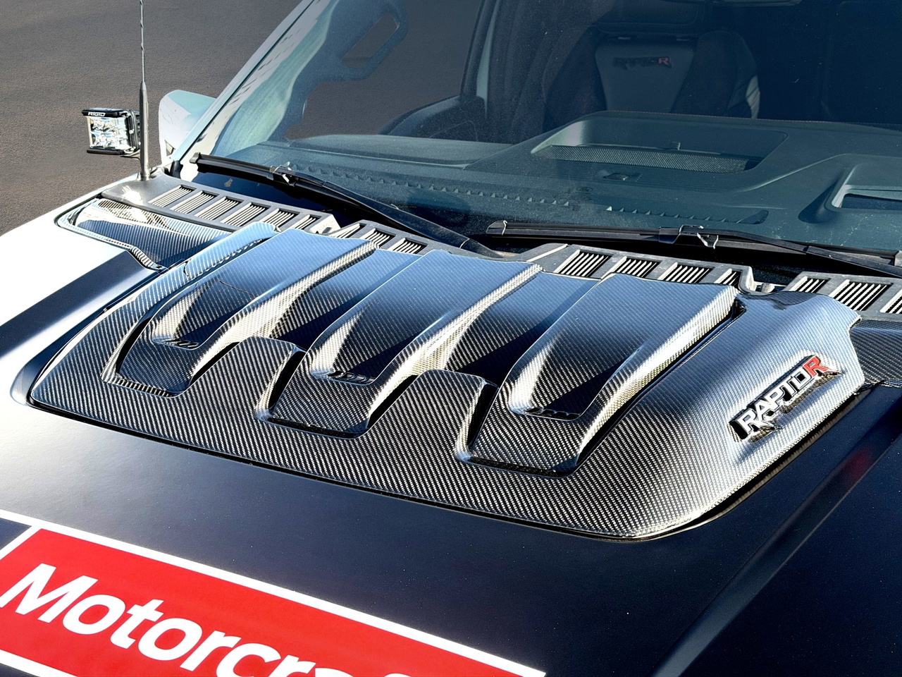 Adicionalmente, esta revisión de la F-150 Raptor R también incluye un nuevo kit de iluminación auxiliar LED firmado por RIGID, una nueva cubierta para el capó y salidas de aire en fibra de carbono y llantas forjadas fabricadas por METHOD pintadas en negro brillante y calzadas con neumáticos todoterreno BF Goodrich en tamaño de 35″.
