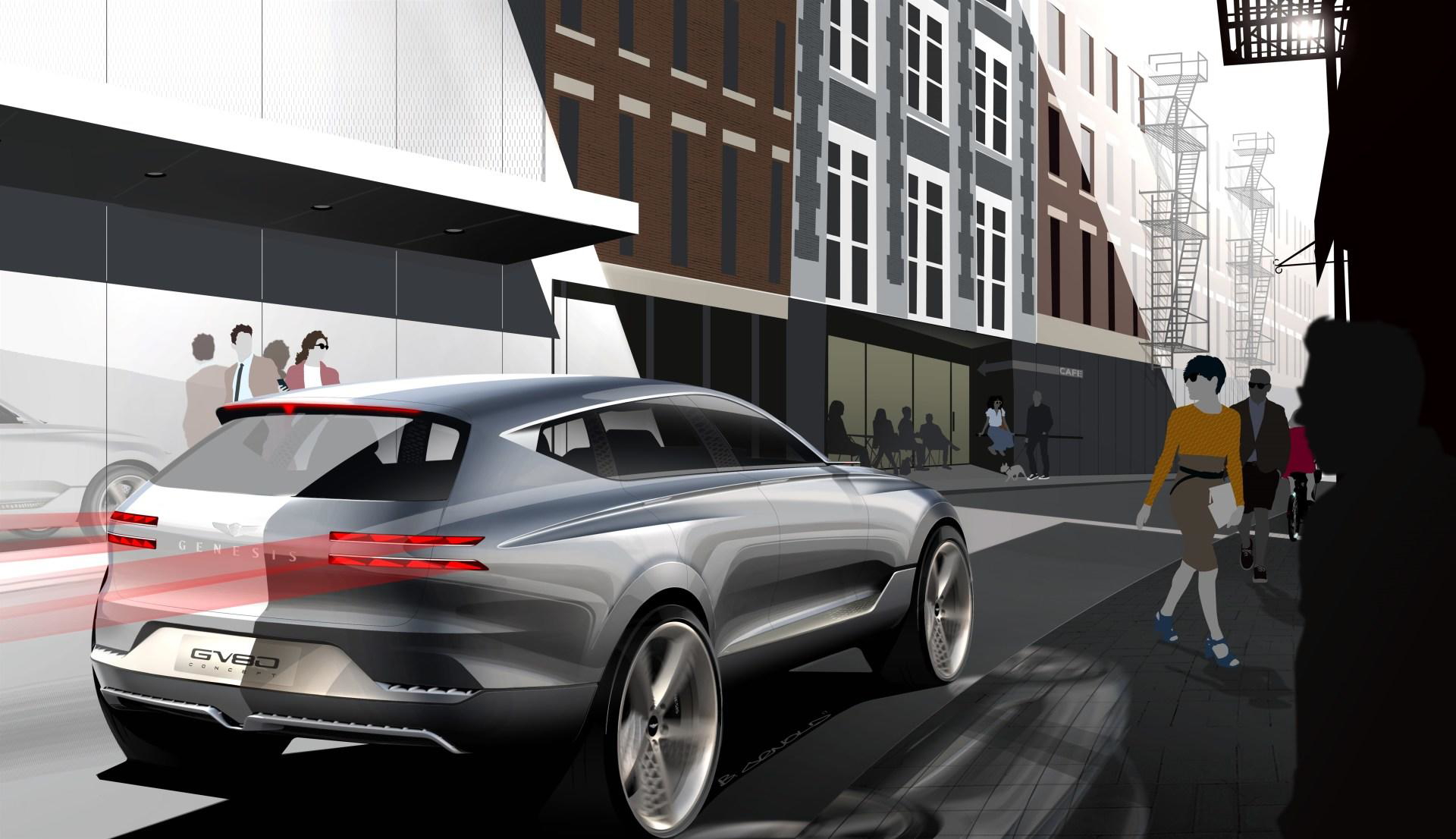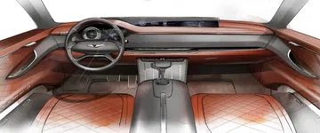 Genesis no ha dado pistas sobre su posicionamiento, no sabemos su longitud, pero las plazas traseras de este SUV nos dan una buena pista, presentándonos unos reposapies para las dos butacas individuales posteriores que nos hacen pensar en un gran habitáculo propio de un SUV dispuesto a enfrentarse a modelos como el Mercedes GLS.