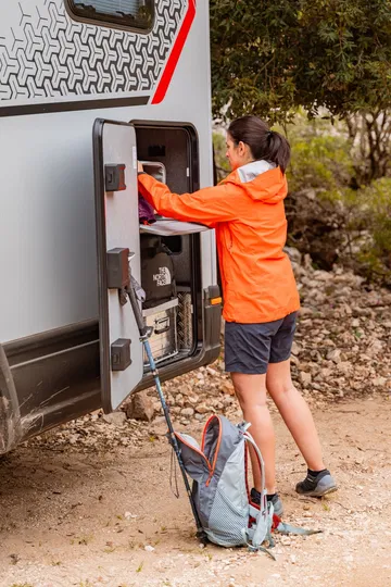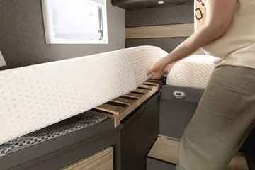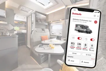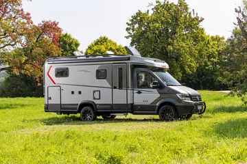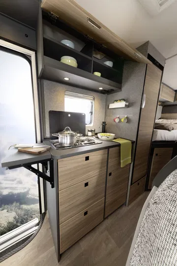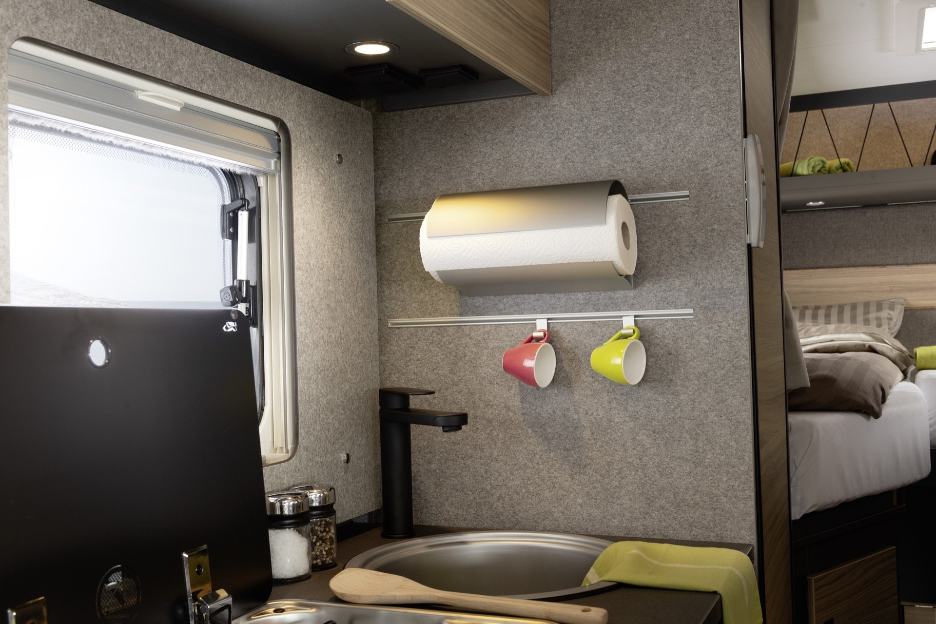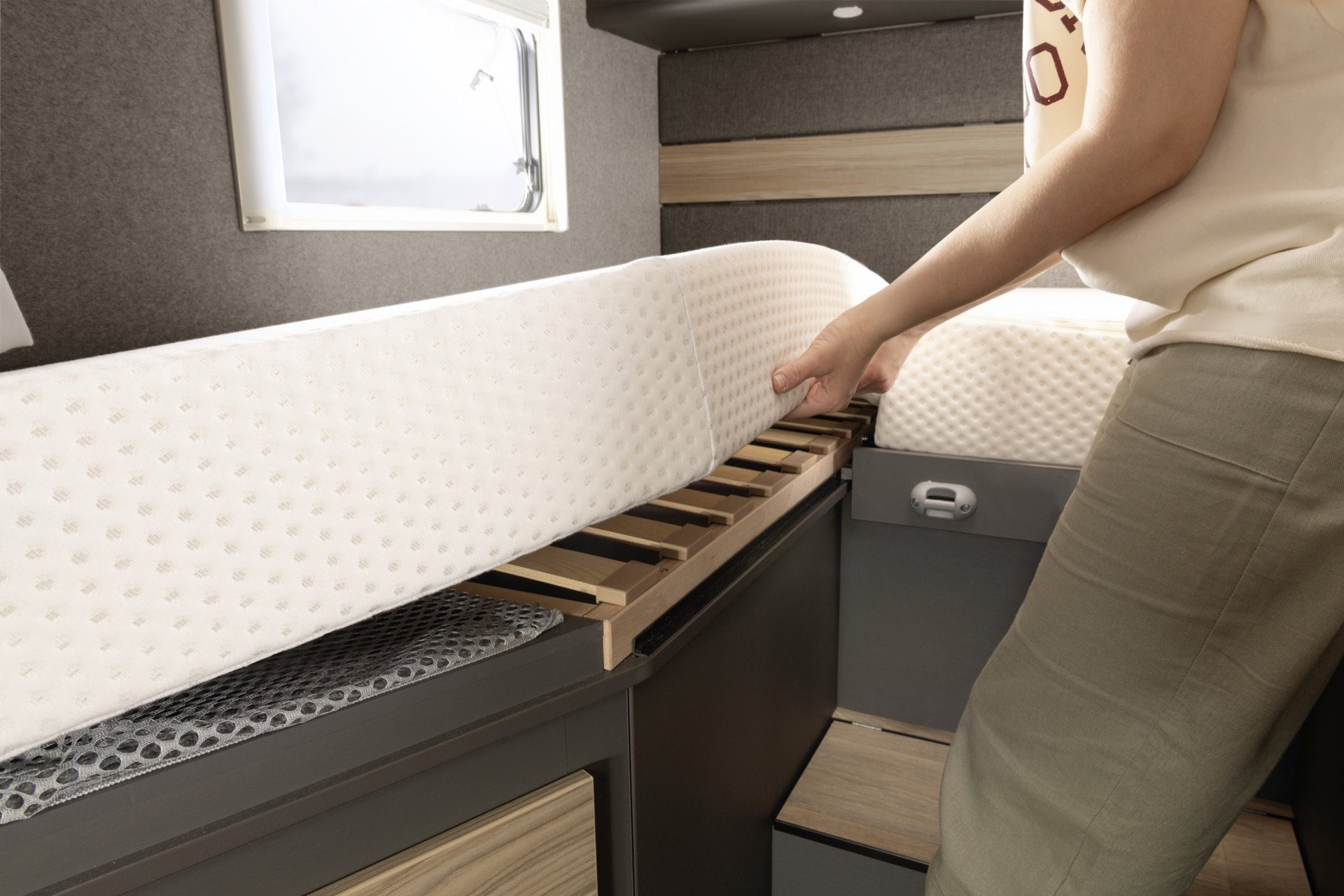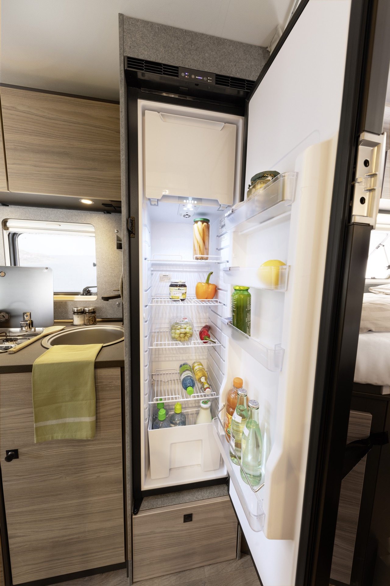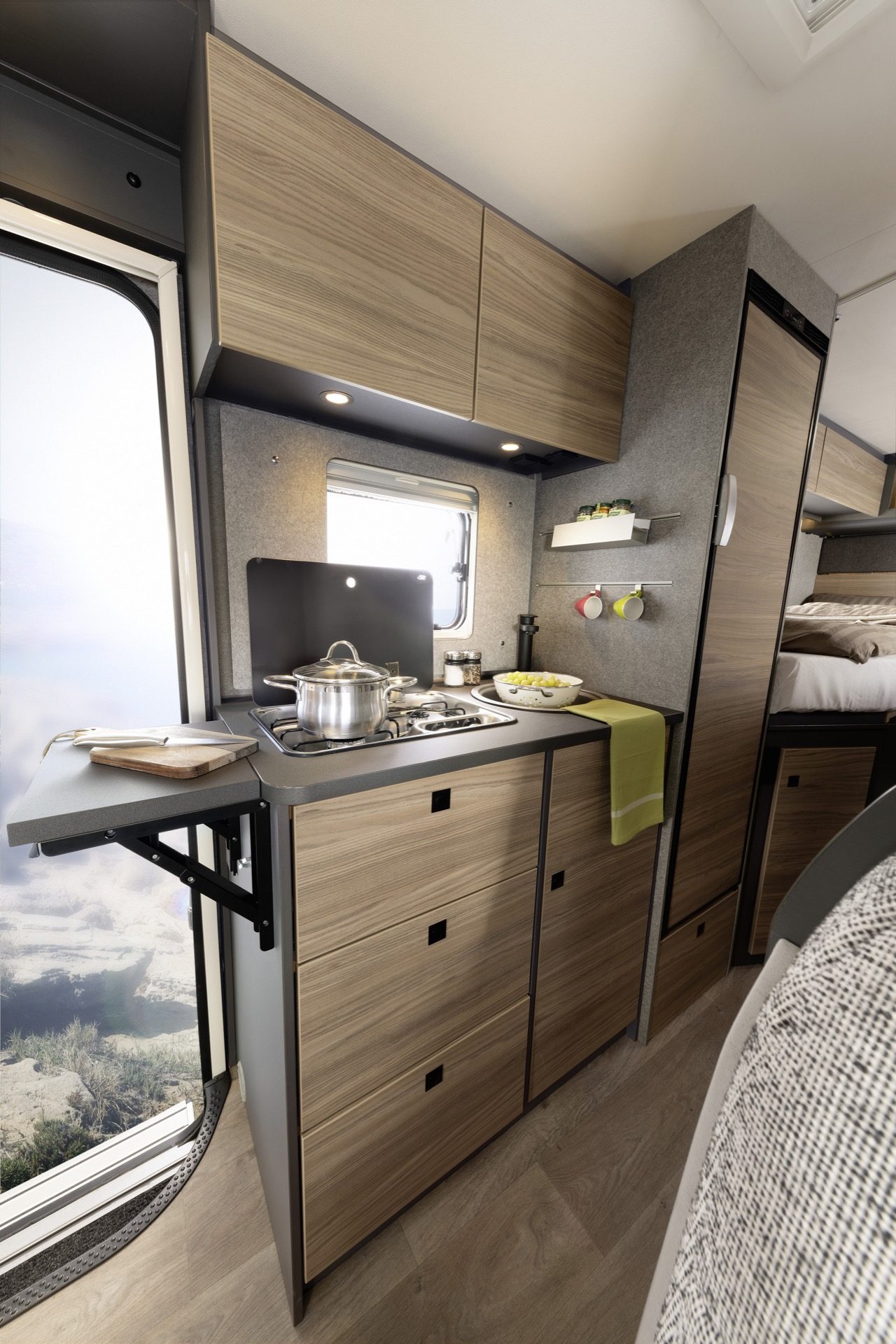 Entre su equipamiento no falta todo lo necesario en confort, con unos acabados de alta calidad en tapizados y mobiliario, y control desde pantalla táctil y aplicación móvil con System Control Unit Lite. Emplea baterías de litio, calefacción diésel y frigorífico de compresor con 131 litros de capacidad, por supuesto cocina de gas y fregadero. También incluye cuarto de aseo con ducha, con depósito de agua en marcha de 20 litros, capacidad total de 115 litros, y depósito de aguas residuales de 90 litros.