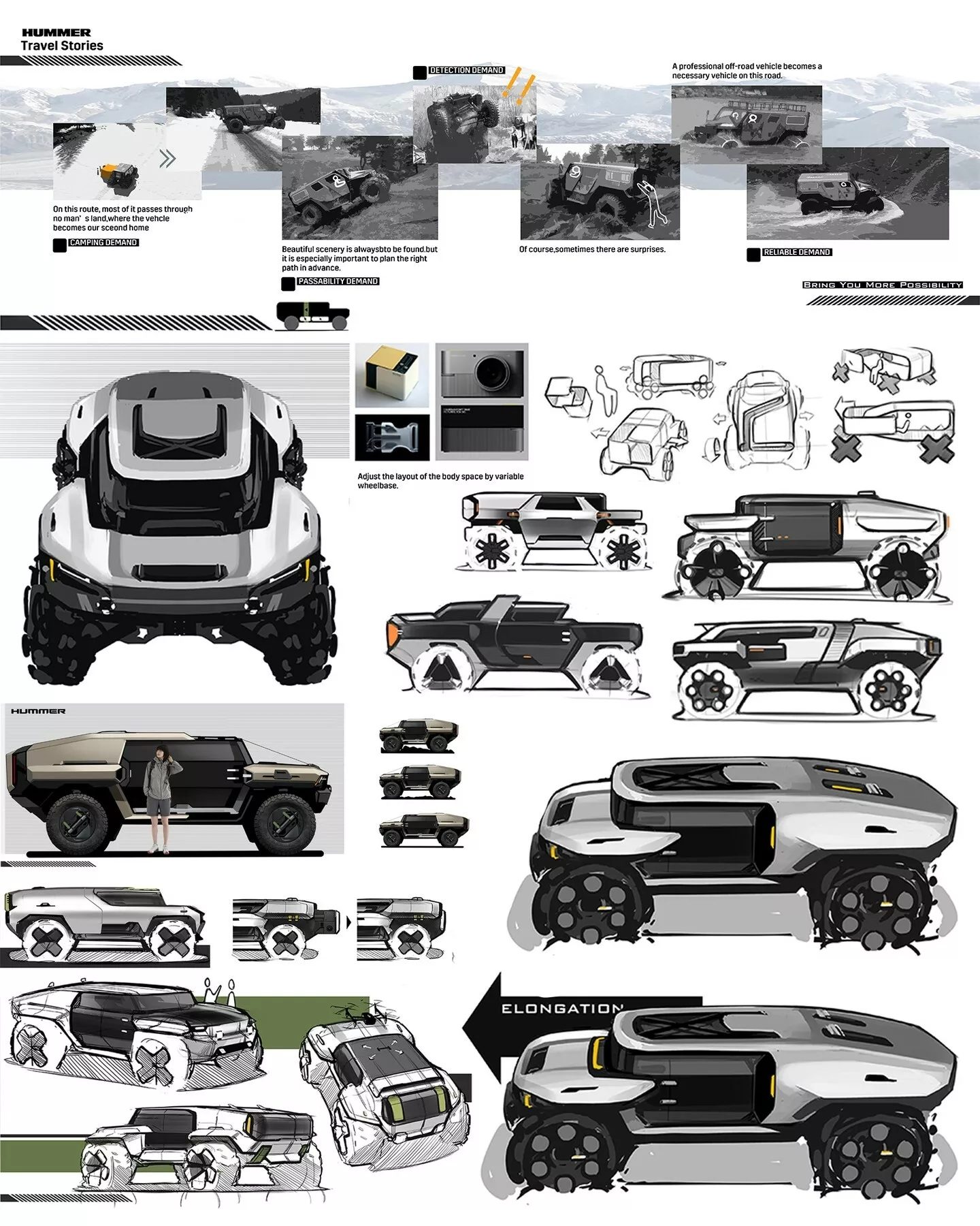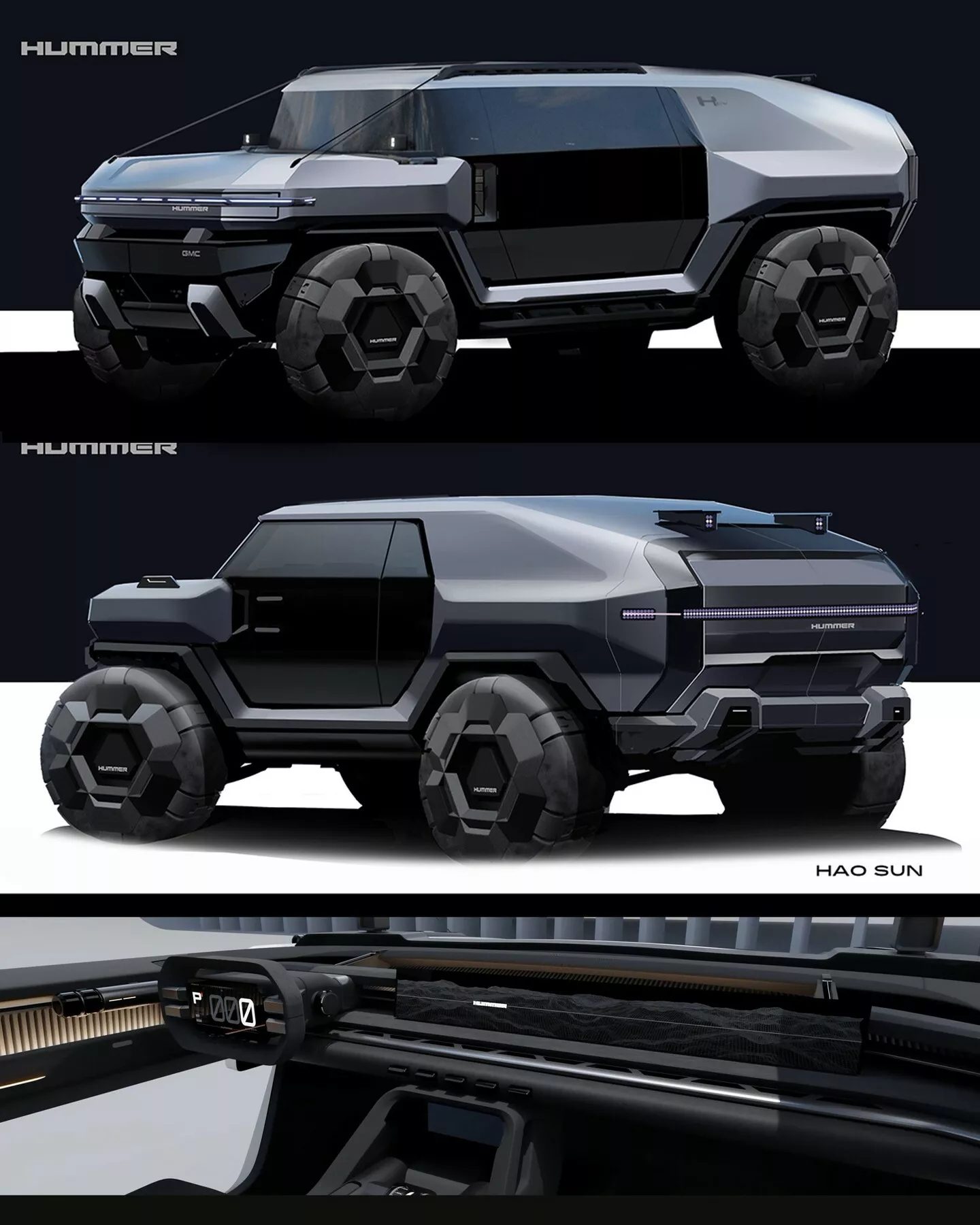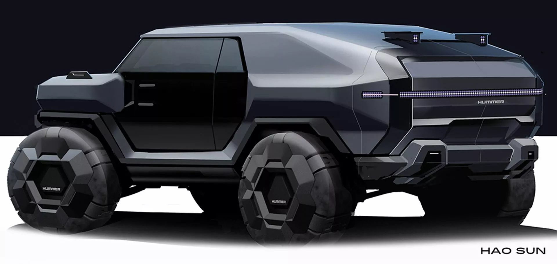 Y uno de los trabajos más interesantes es el que precisamente os traemos hoy en esta entrada, un diseño firmado por Hao Sun. Se llama GMC Hummer HEV Peak Concept, y aunque estamos ante un boceto conceptual, en realidad se trata de una reinterpretación del prototipo Hummer HX que fue presentado en 2018 en el salón del automóvil de Norteamérica.