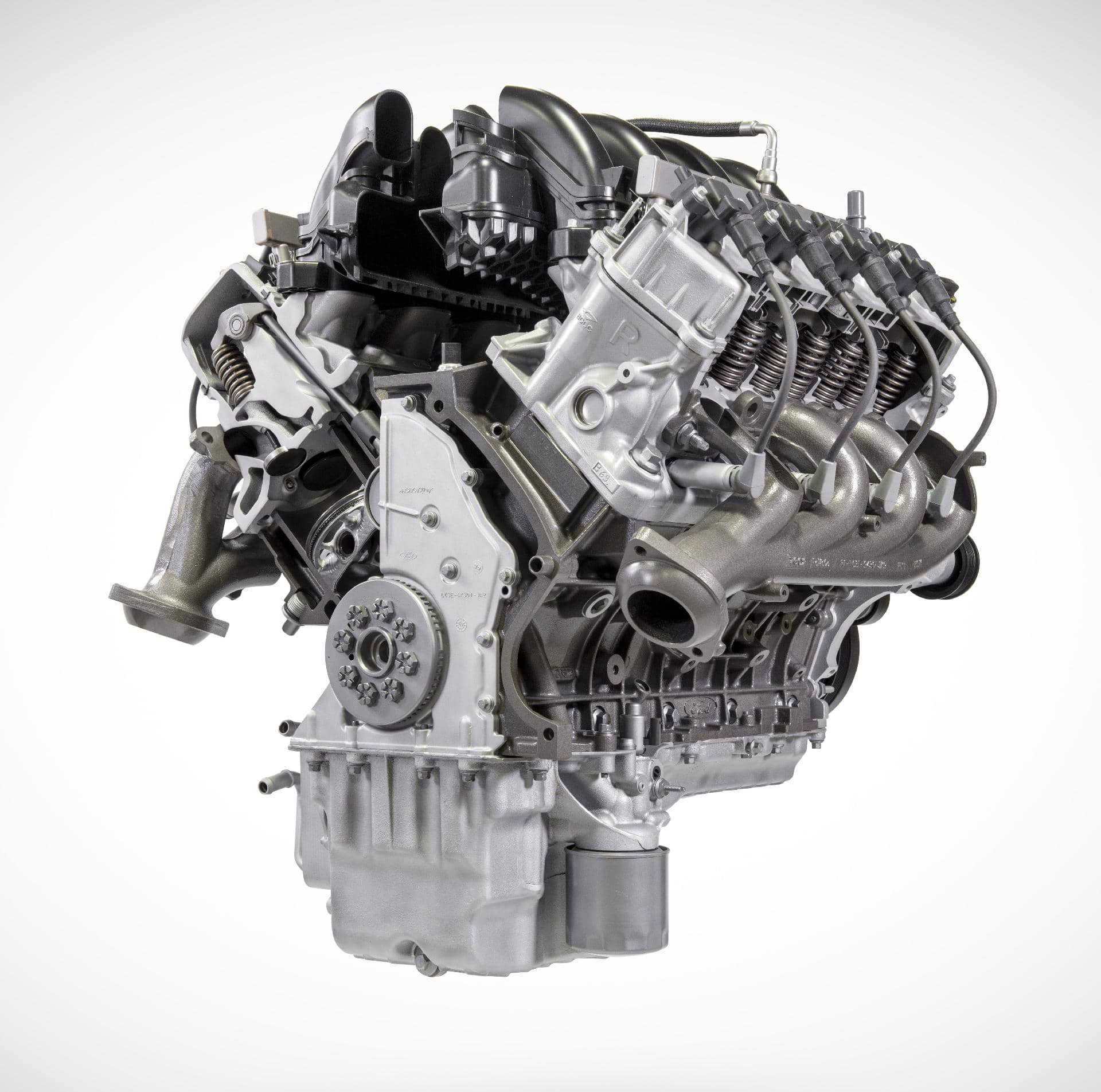 Ford tenía diferentes opciones para conseguir las prestaciones que requerían sus pick-ups. Podía optar por sobrealimentar la mecánica, pero decidió apostar por un motor atmosférico, bajo los requisitos de entregar más potencia y par, gozar de una gran capacidad de arrastre, pero sobre todo ser fiable y duradero. Estamos ante un motor de la vieja escuela, que entrega 436 CV de potencia a 5.500 rpm y un par máximo de 644 Nm a 4.000 rpm.