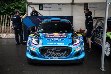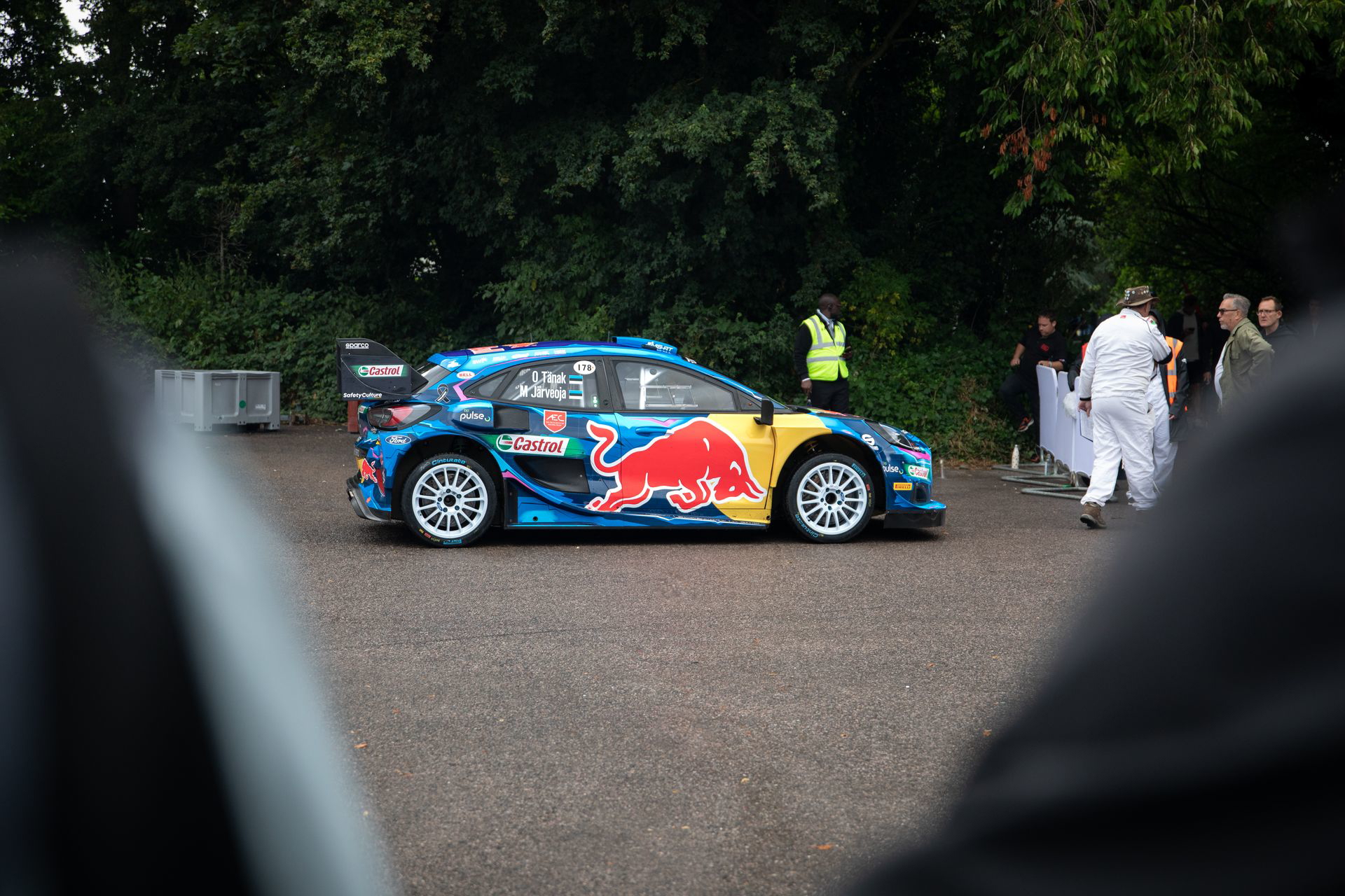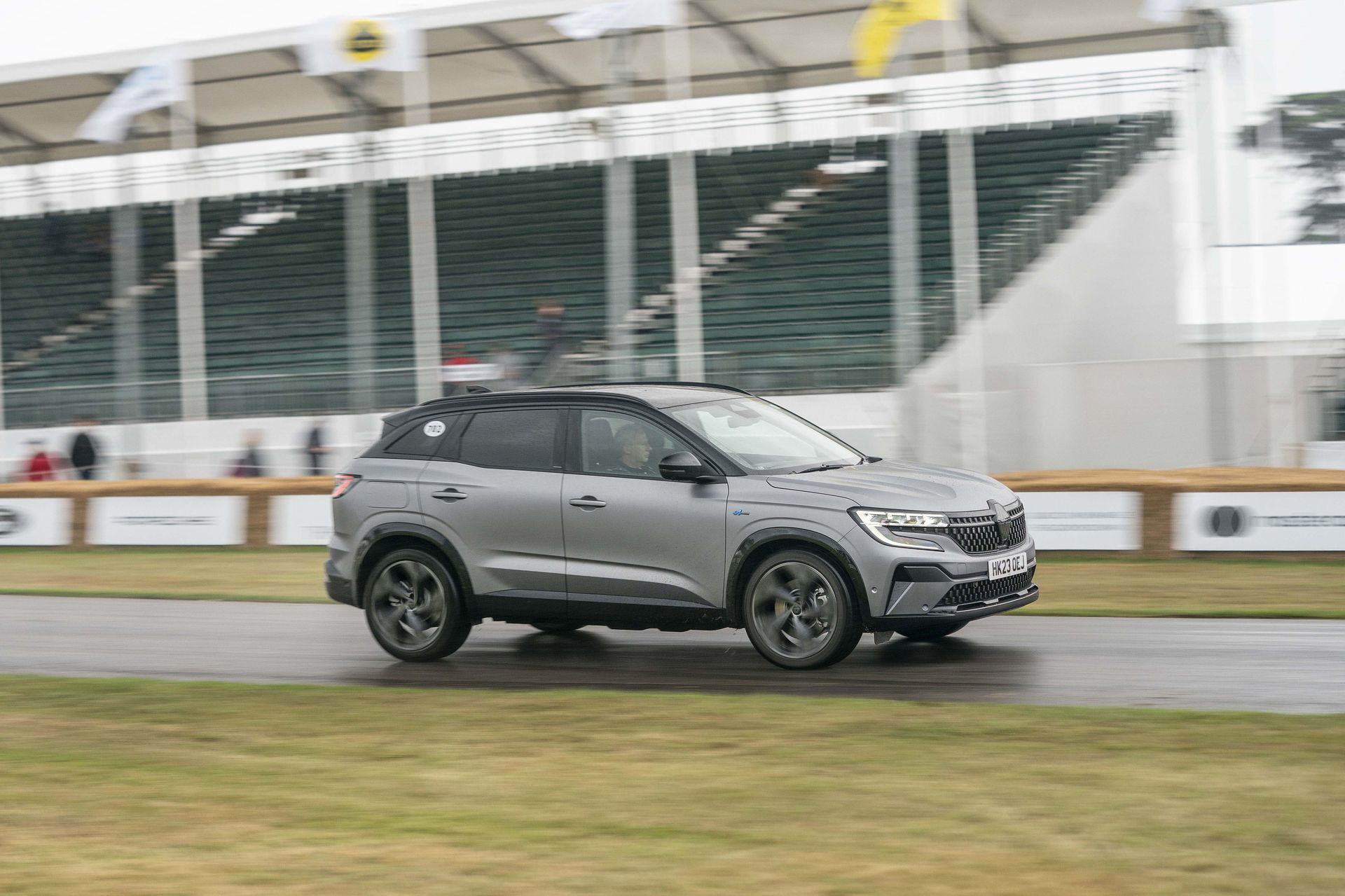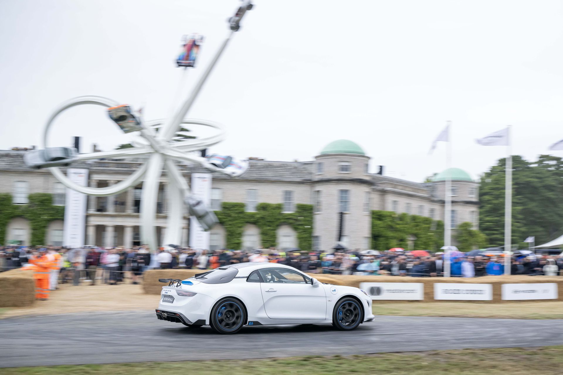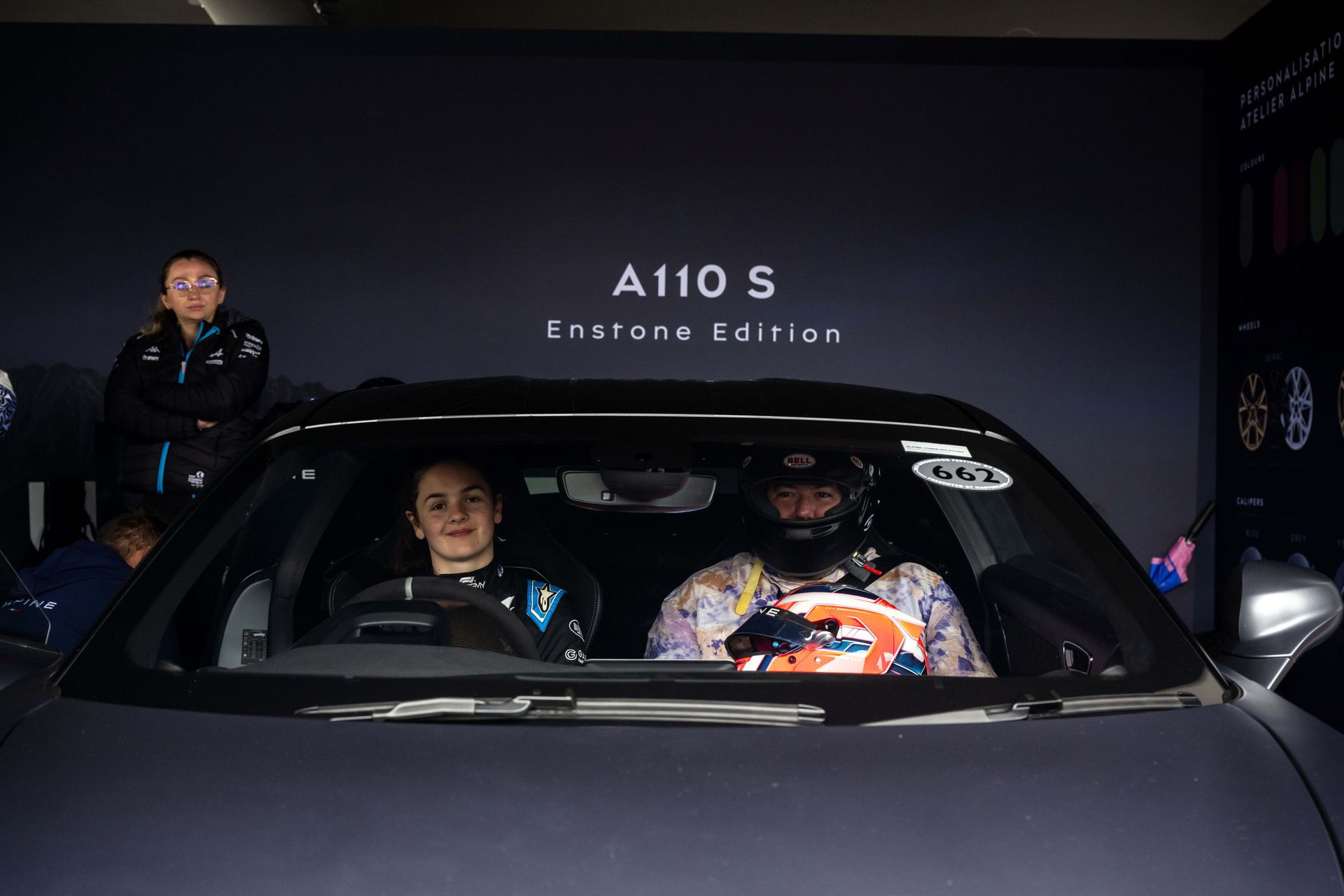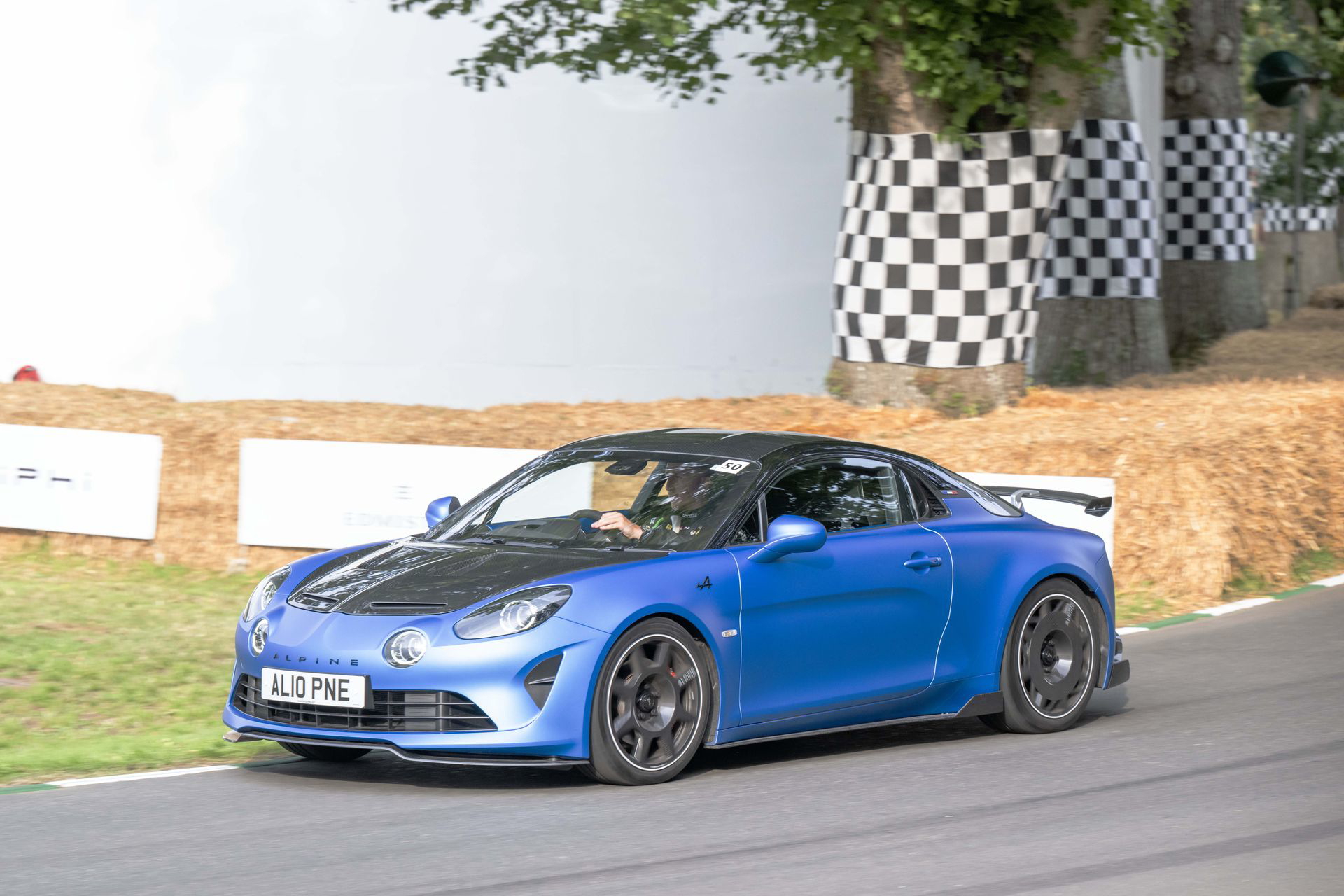 Soy asturiano y la lluvia no me molesta en absoluto, pero añade un extra de emoción cuando vas a hacer un copilotaje en la subida a Goodwood Hill. Y es que era el momento de auparnos al puesto del copiloto de un Alpine A110 S Enstone Edition. A los mandos estaba la piloto inglesa Abbi Pulling, una promesa de Alpine para la Fórmula 1 que podría hacer grandes cosas en un futuro cercano. En el «atasco» que se formó para llegar a la salida del ascenso teníamos delante un Toyota Supra GT4 y el nuevo Ford Mustang Dark Horse con motor 5.0 V8.