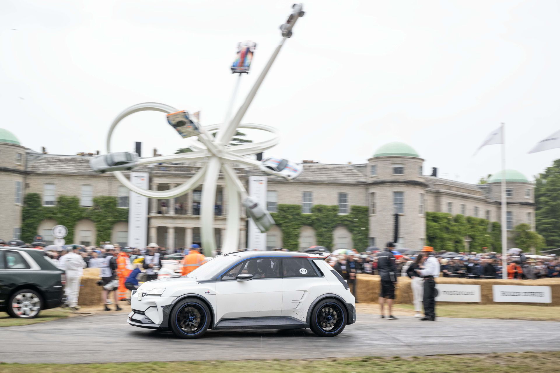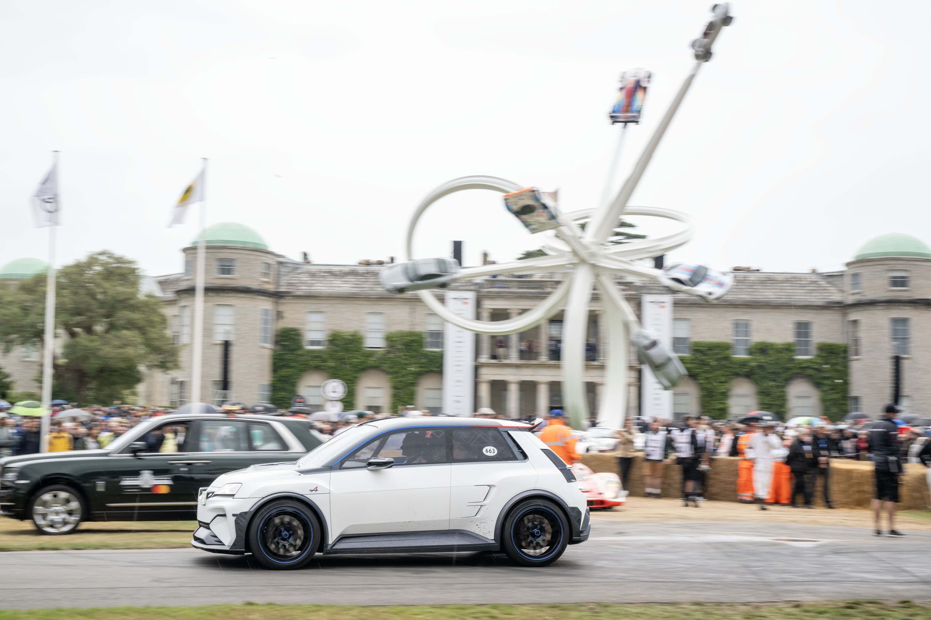 Siempre y claro, eso sí, el público sea capaz de aceptar la transición a la movilidad eléctrica también en el segmento de los utilitarios/compactos deportivos. La lluvia comenzó a arreciar aun más, y sufrió un efecto multiplicador con las grandes rachas de viento que asolaron Goodwood. De hecho, el día siguiente a nuestra visita el festival fue cancelado por una alerta de viento, que comprometía la seguridad de las carpas y estructuras provisionales. El evento volvió a celebrarse el domingo, pero fue la primera vez en sus 30 años que sufrió una cancelación.