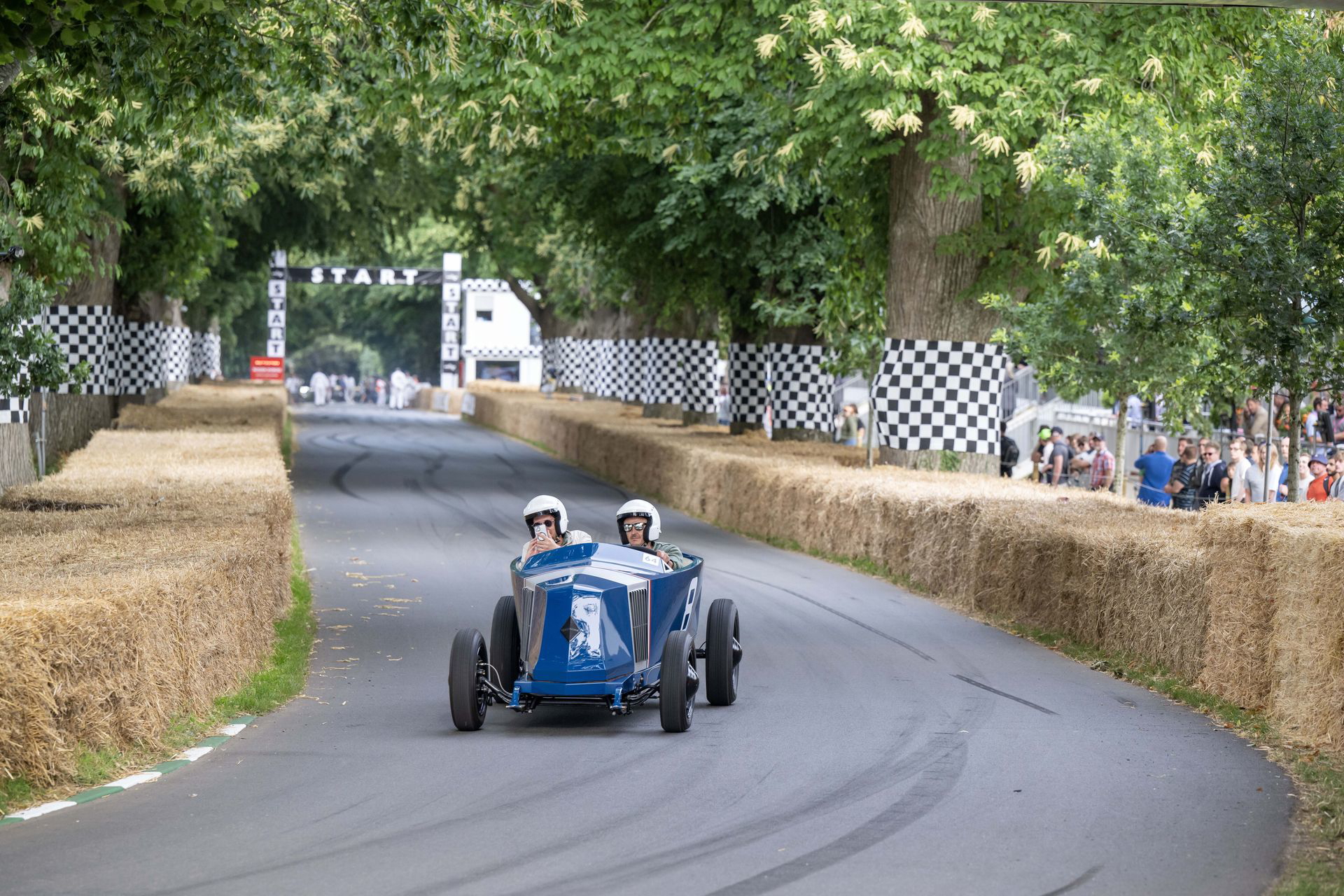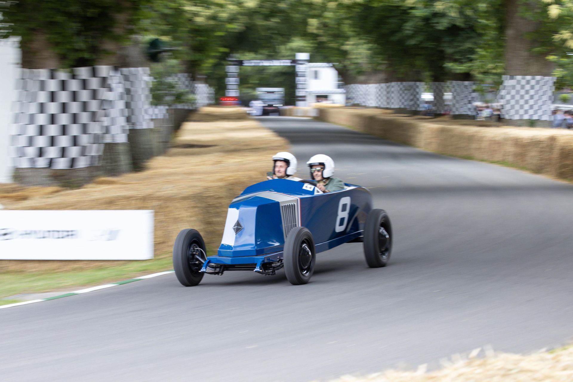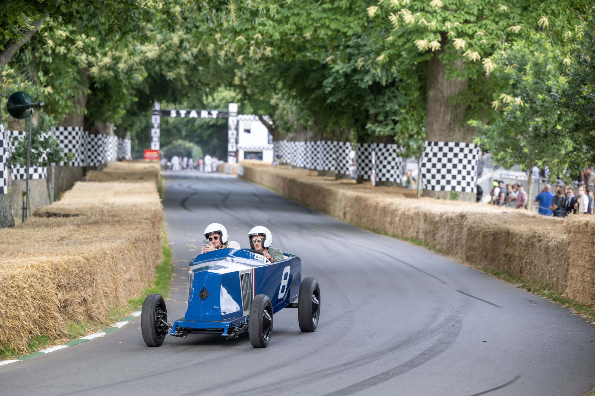 El coche se mueve con una agilidad suprema, se descoloca lo justo en la entrada de las curvas, y asciende Goodwood Hill a un ritmo meteórico. El ascenso es bastante más estrecho, más revirado y con más pendiente de lo que parece en los streaming del festival. El muro pasa muy cerca y en nada estamos cruzando la recta de meta. No he medido el tiempo, pero se ha sentido muy rápido. No se me borra la sonrisa de la cara, y agradezco la increíble experiencia a Abbi. La vuelta al paddock se hace en sentido inverso, y en ella no se busca correr, solo dar espectáculo.