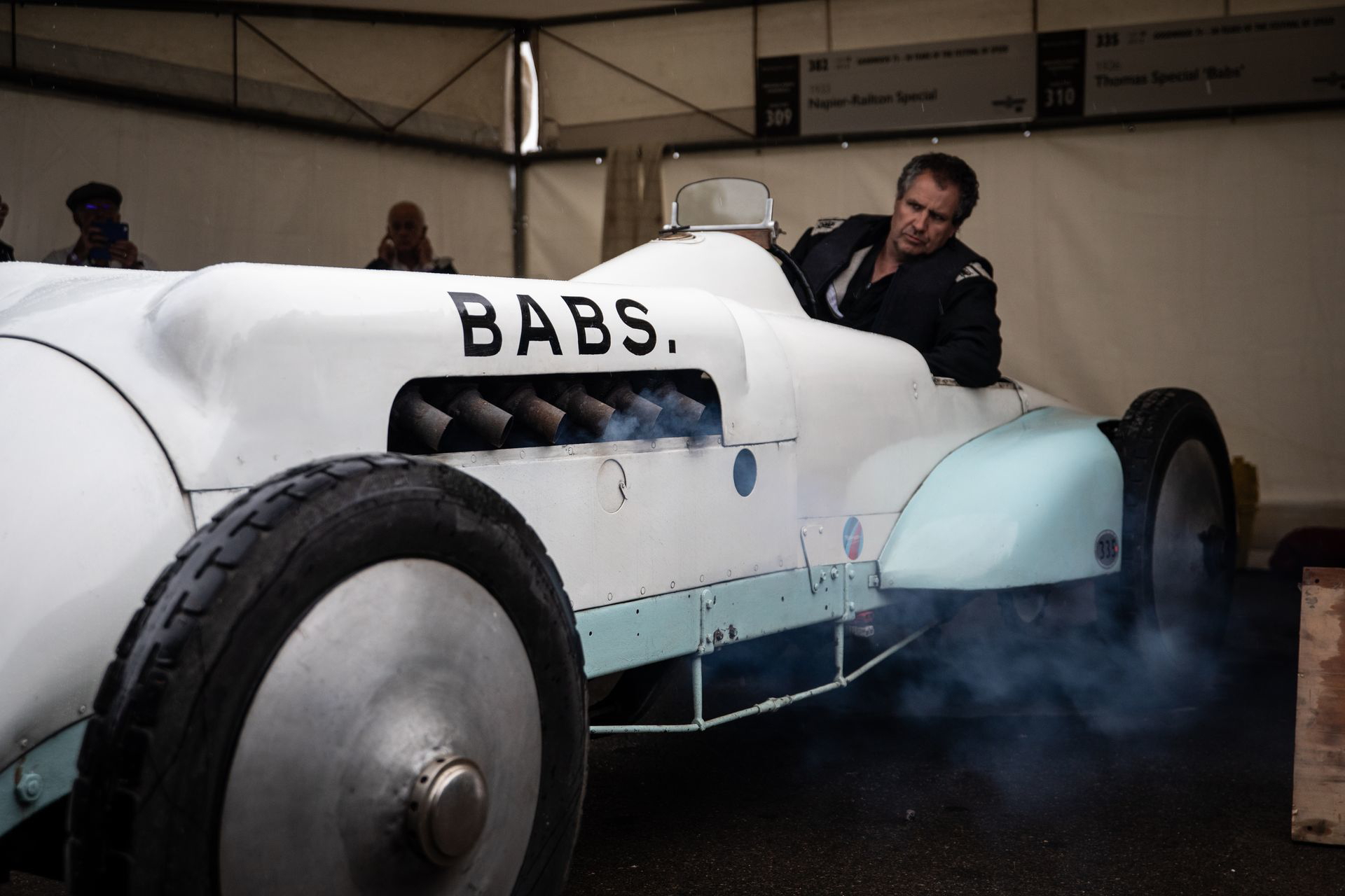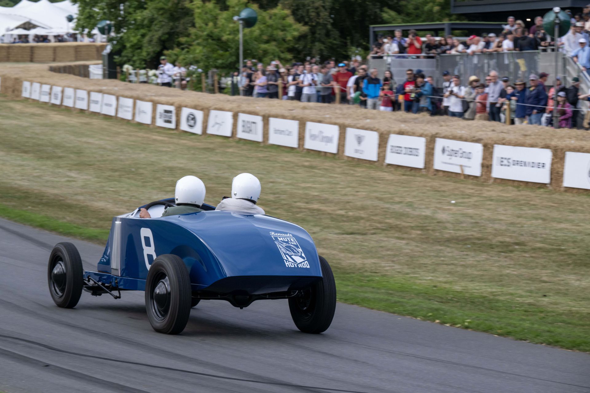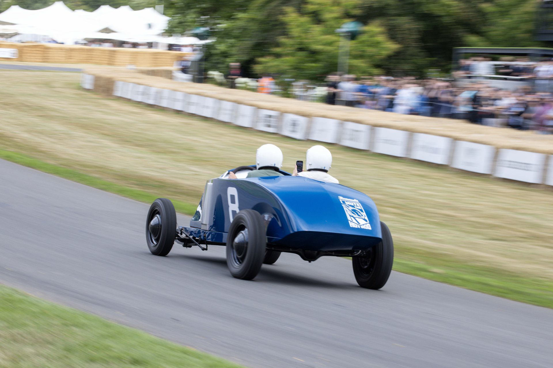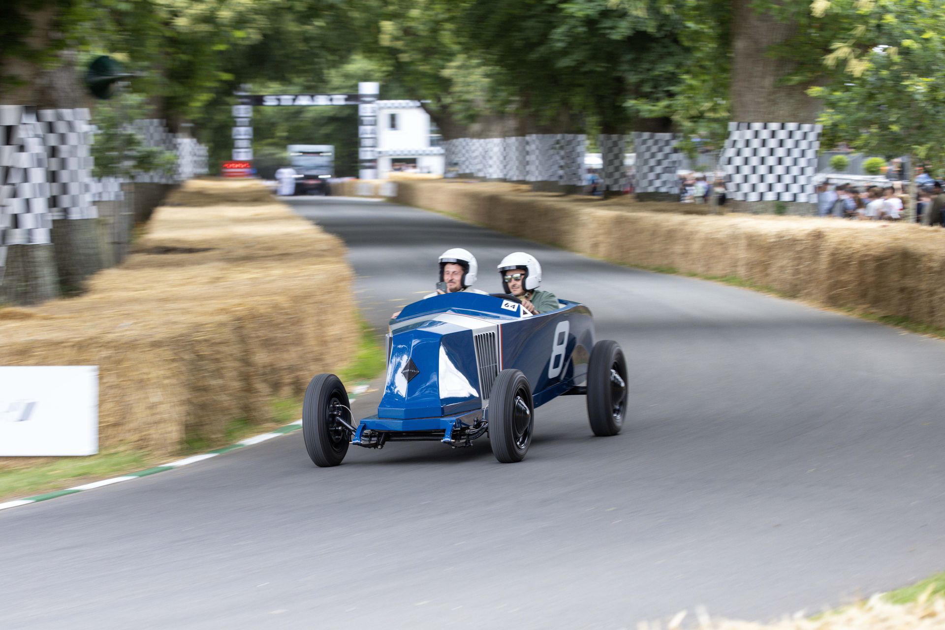 El coche se mueve con una agilidad suprema, se descoloca lo justo en la entrada de las curvas, y asciende Goodwood Hill a un ritmo meteórico. El ascenso es bastante más estrecho, más revirado y con más pendiente de lo que parece en los streaming del festival. El muro pasa muy cerca y en nada estamos cruzando la recta de meta. No he medido el tiempo, pero se ha sentido muy rápido. No se me borra la sonrisa de la cara, y agradezco la increíble experiencia a Abbi. La vuelta al paddock se hace en sentido inverso, y en ella no se busca correr, solo dar espectáculo.