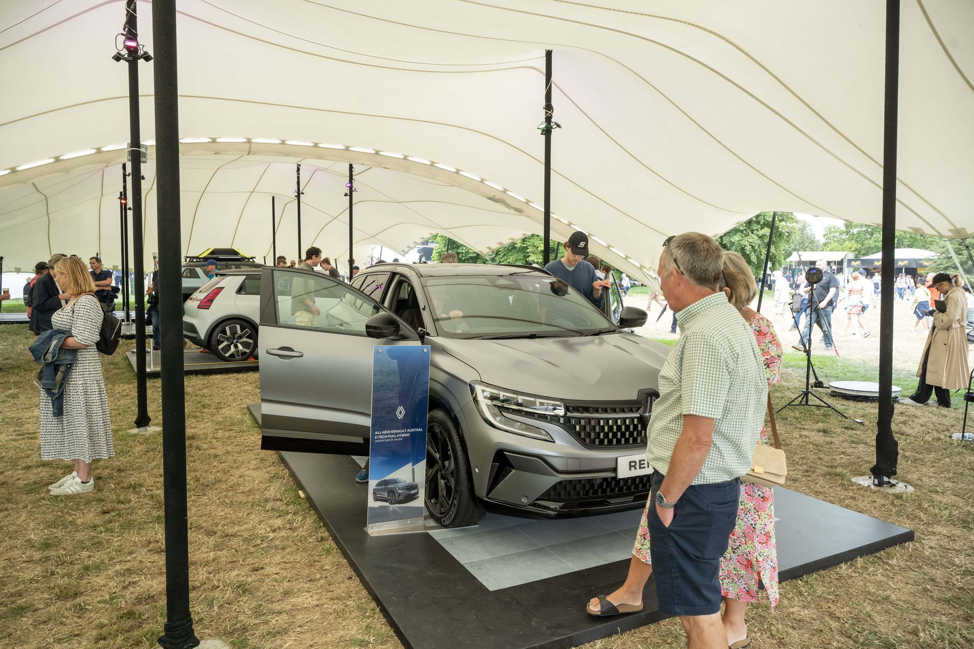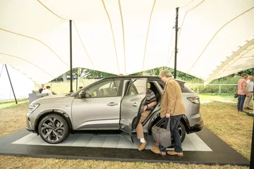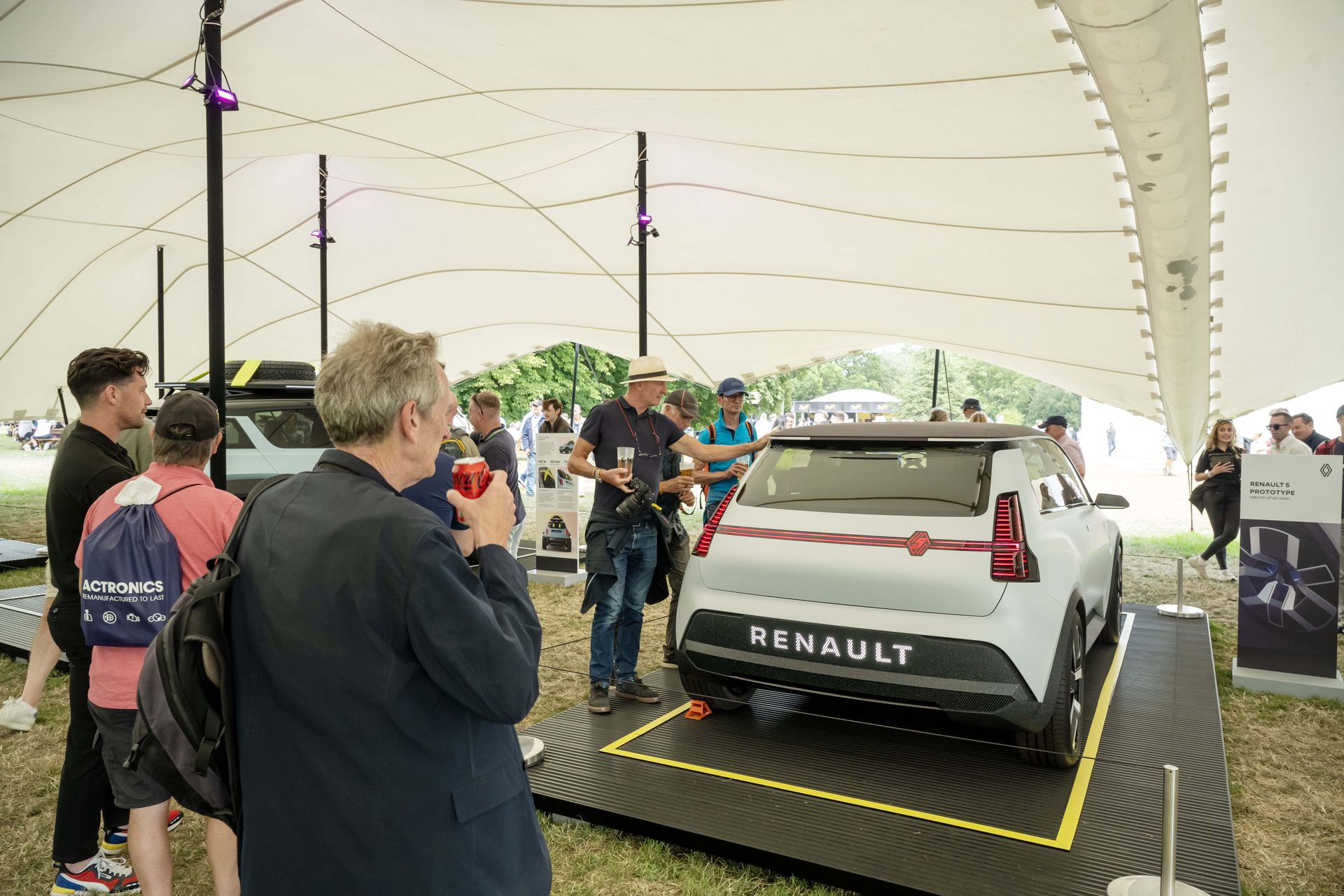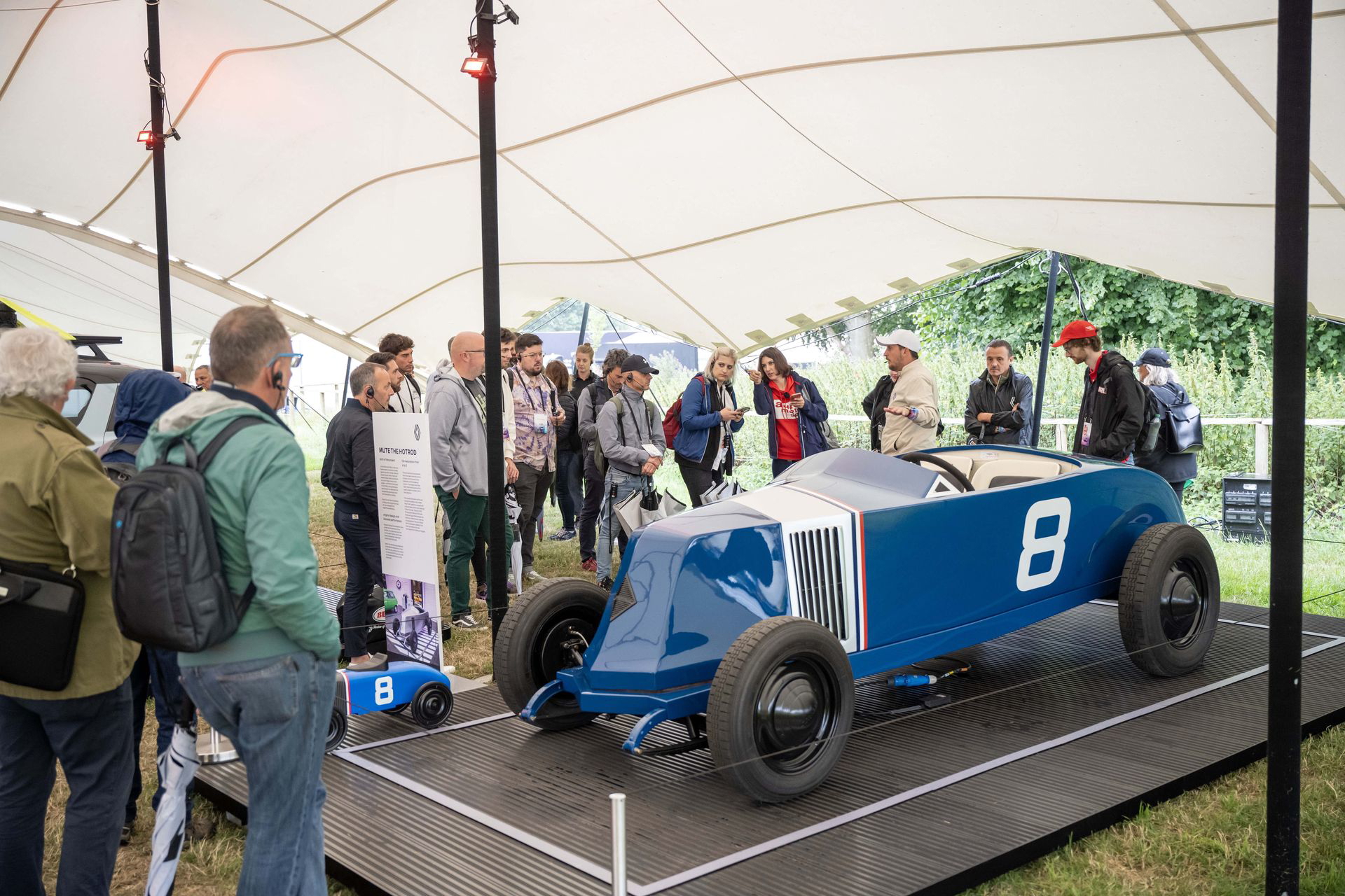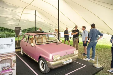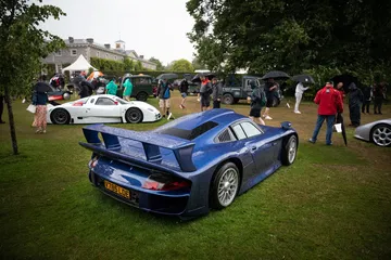 Para llegar al stand de Renault tenemos que pasar por el jardín trasero de la Goodwood House, donde la marca de relojes de lujo Cartier expone algunos de los coches más especiales de la historia. Aparcados en un sencillo jardín, sin barreras ni seguridad, paso por al lado de un McLaren F1, un Bugatti EB110, un Porsche 911 GT1 de calle o un Mercedes CLK GTR. A mis oídos llega el atronador sonido de los motores de un BMW M1 Procar, que acaba de completar la subida a Goodwood Hill y está volviendo a su paddock. Creo que he muerto y estoy en el cielo.