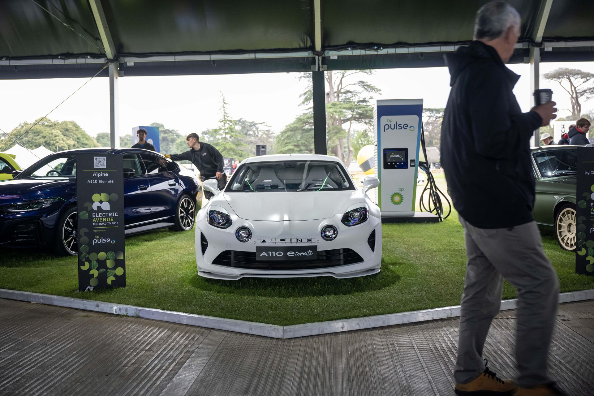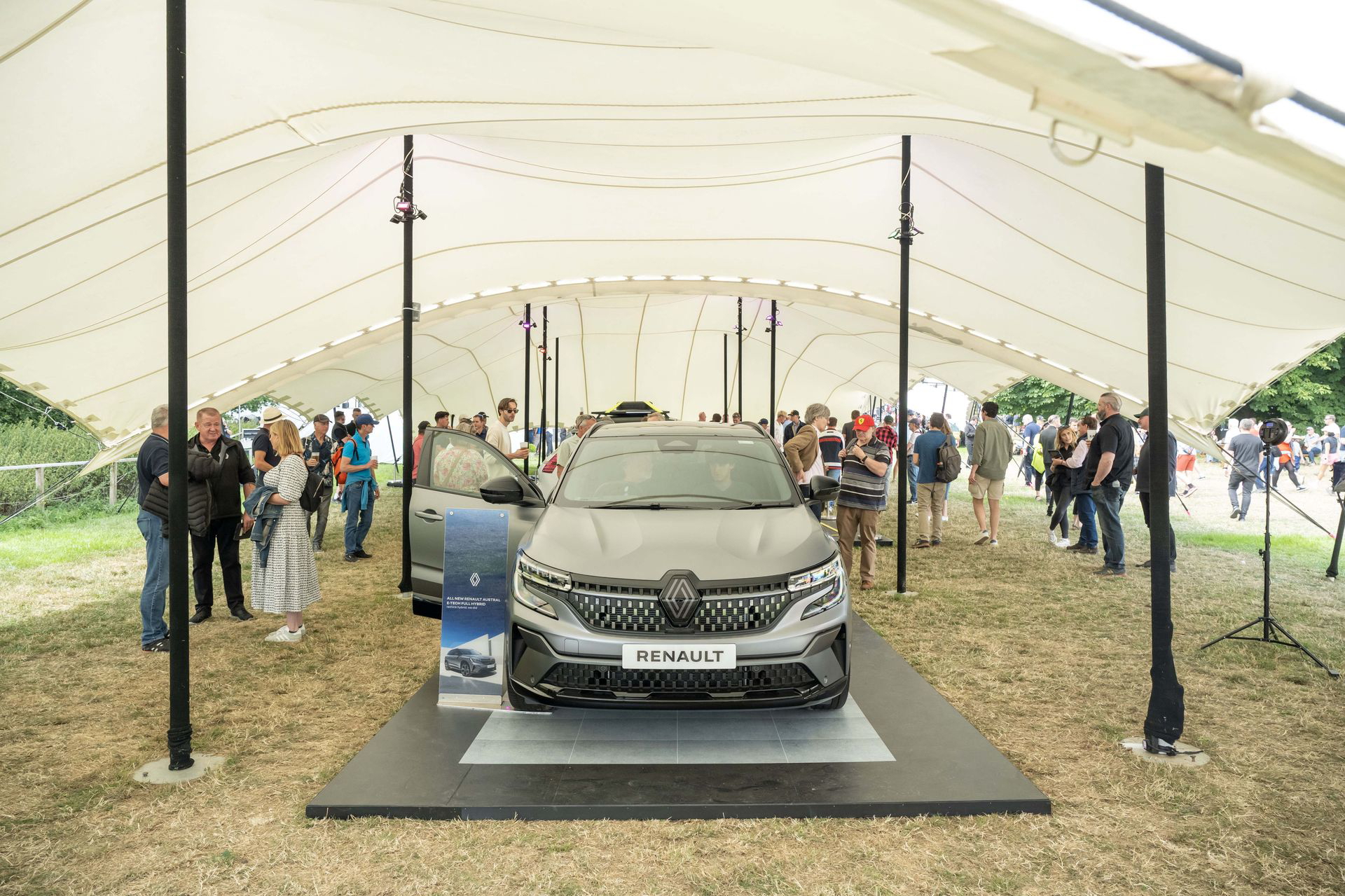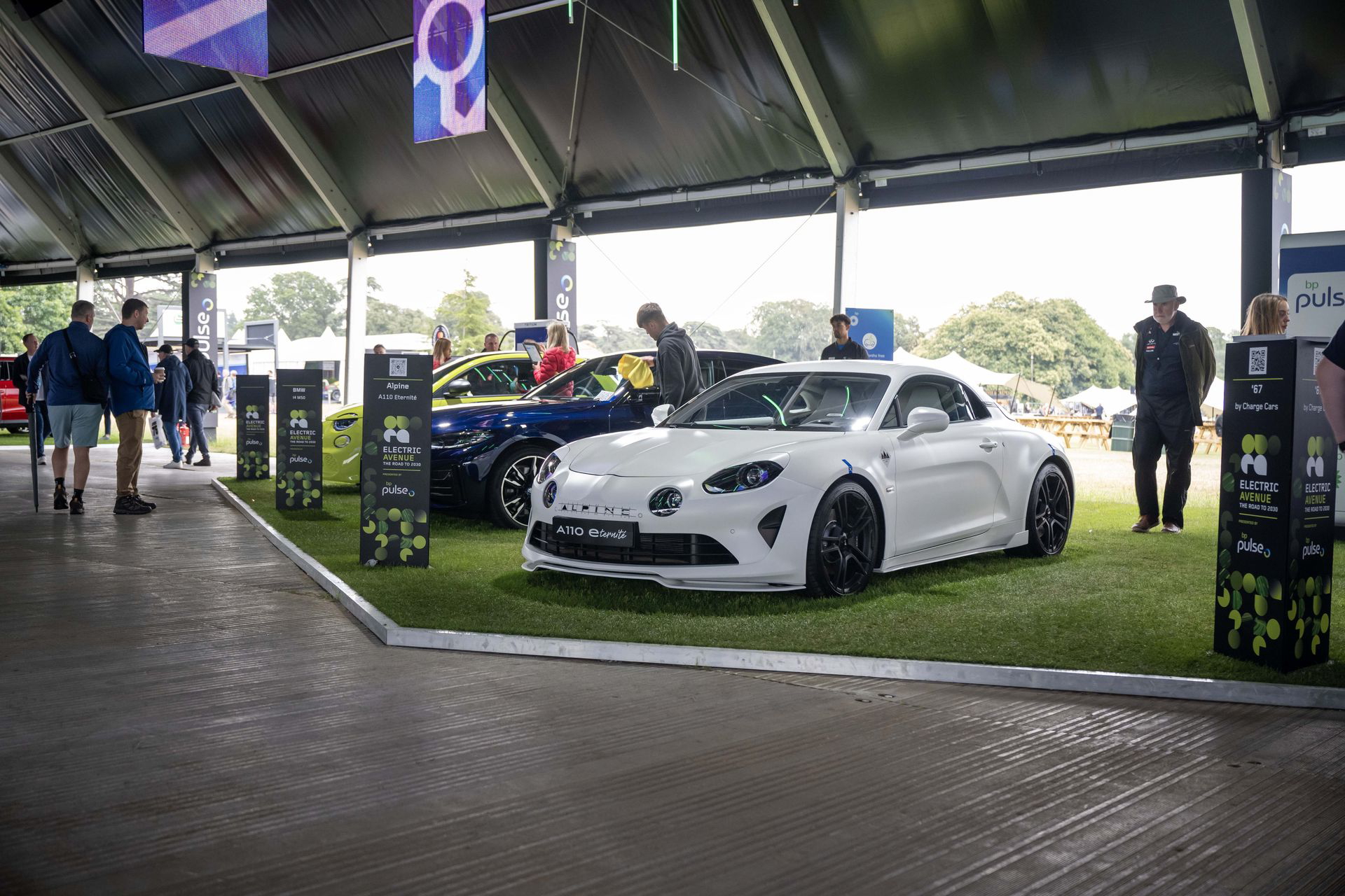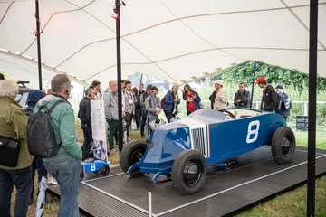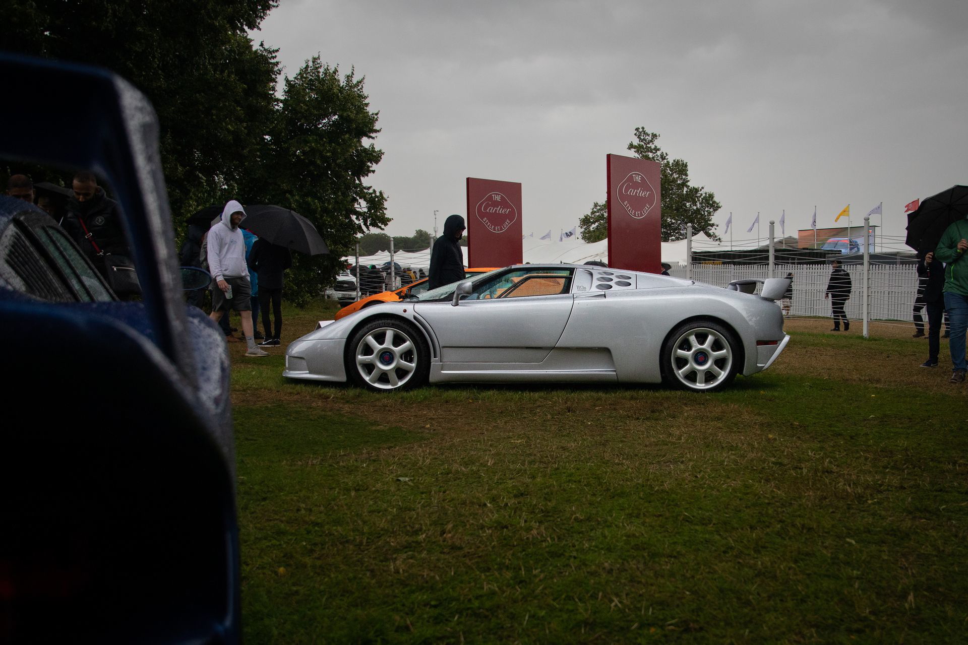 Para llegar al stand de Renault tenemos que pasar por el jardín trasero de la Goodwood House, donde la marca de relojes de lujo Cartier expone algunos de los coches más especiales de la historia. Aparcados en un sencillo jardín, sin barreras ni seguridad, paso por al lado de un McLaren F1, un Bugatti EB110, un Porsche 911 GT1 de calle o un Mercedes CLK GTR. A mis oídos llega el atronador sonido de los motores de un BMW M1 Procar, que acaba de completar la subida a Goodwood Hill y está volviendo a su paddock. Creo que he muerto y estoy en el cielo.