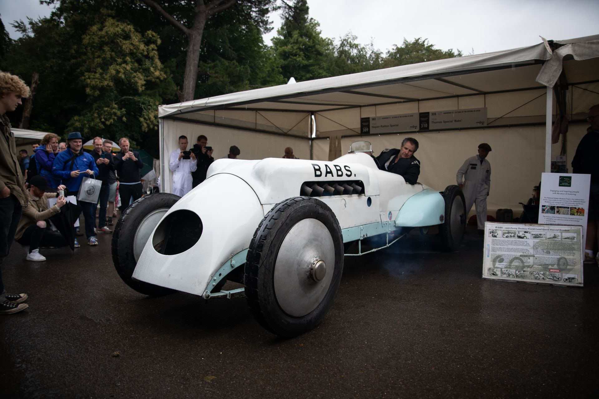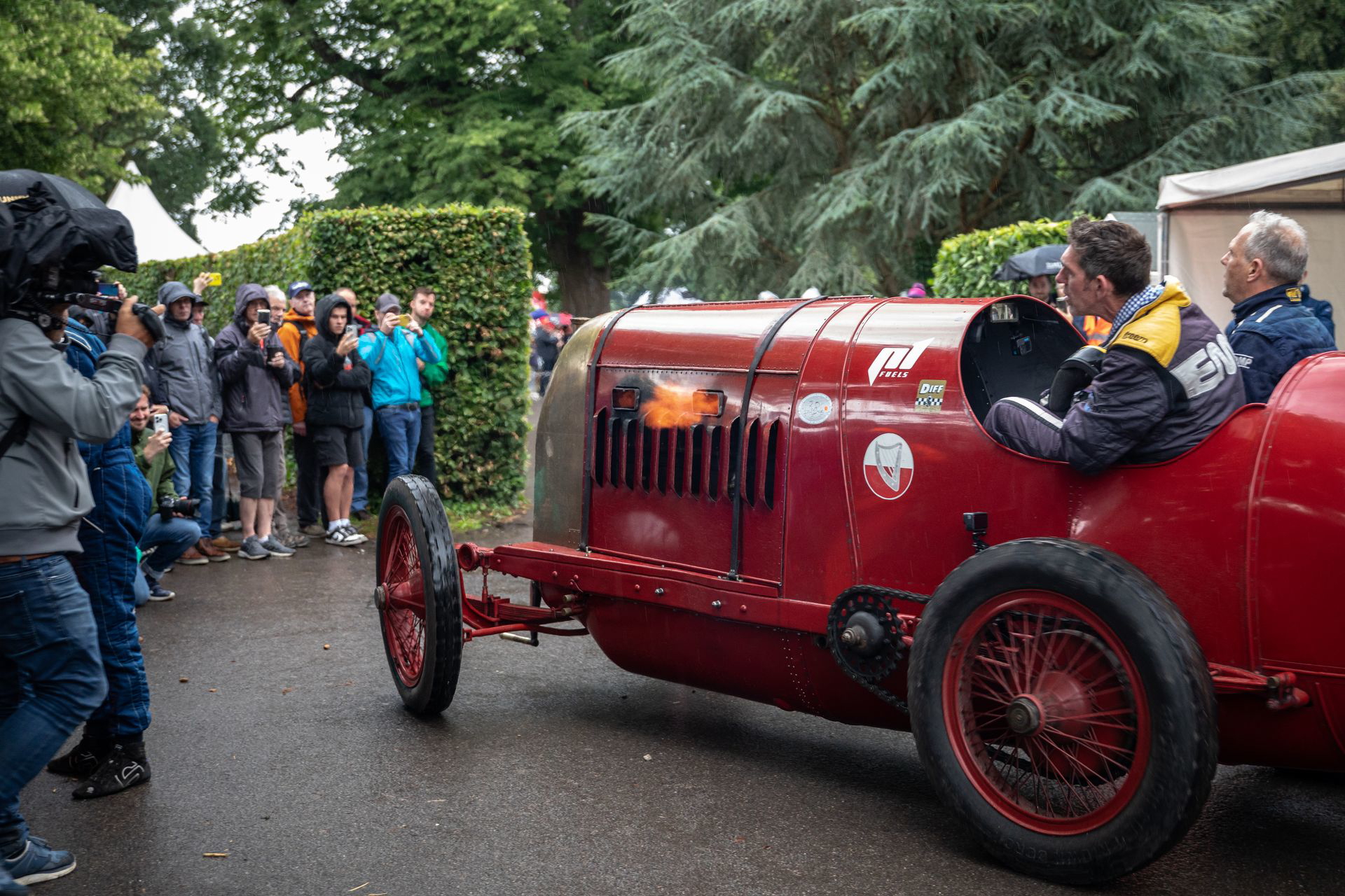 El tiempo se nos echaba encima y debíamos volver al hotel, pero un último rato libre me sirvió para pasear por los diferentes paddocks. Ahí pude apreciar el enorme respeto que se tiene por el automóvil en Reino Unido, así como la pasión desmedida que se desborda en un evento como este. Nunca verás a nadie sentado en un coche, subiéndose a un coche sin autorización, o tirando una sola lata al suelo. La lluvia intensa no hizo mella en la asistencia ni en los participantes, que seguían subiendo de forma religiosa Goodwood Hill al máximo ritmo posible.