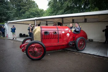 Entrar al recinto es ya una experiencia en sí misma. Invitados por Alpine – uno de los patrocinadores del año – entramos directamente al festival sin hacer colas, y lo hacemos por los paddock donde se encuentran los coches más clásicos. Lo primero con lo que me encuentro de bruces es con la Bestia de Turín, con varios Ferrari 250 GTO y varios coches de competición de preguerra. Mientras nos insisten en que no nos distraigamos, hay un horario que cumplir, balbuceo palabras inconexas y trato de hacer alguna foto rápida con mi teléfono.