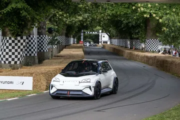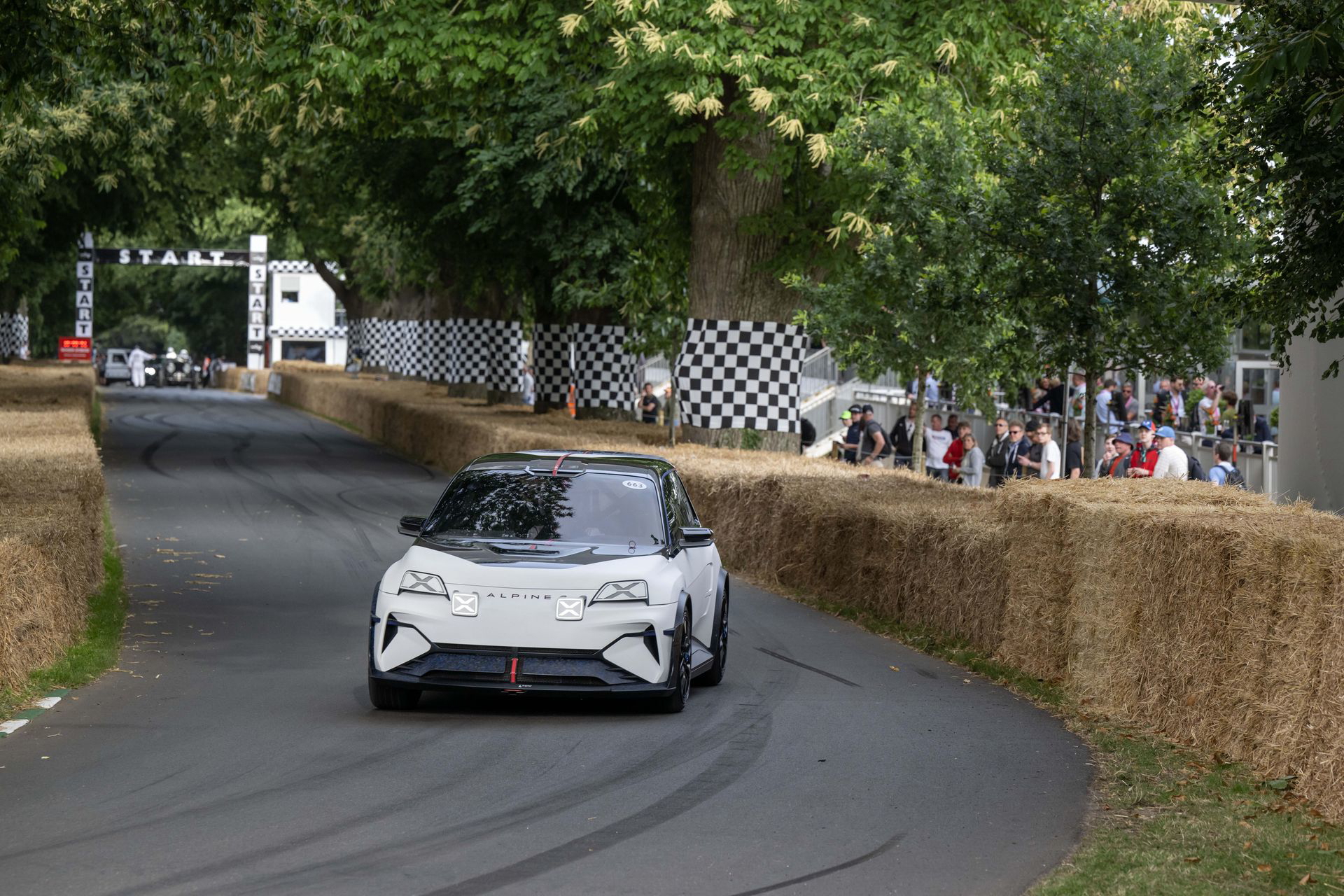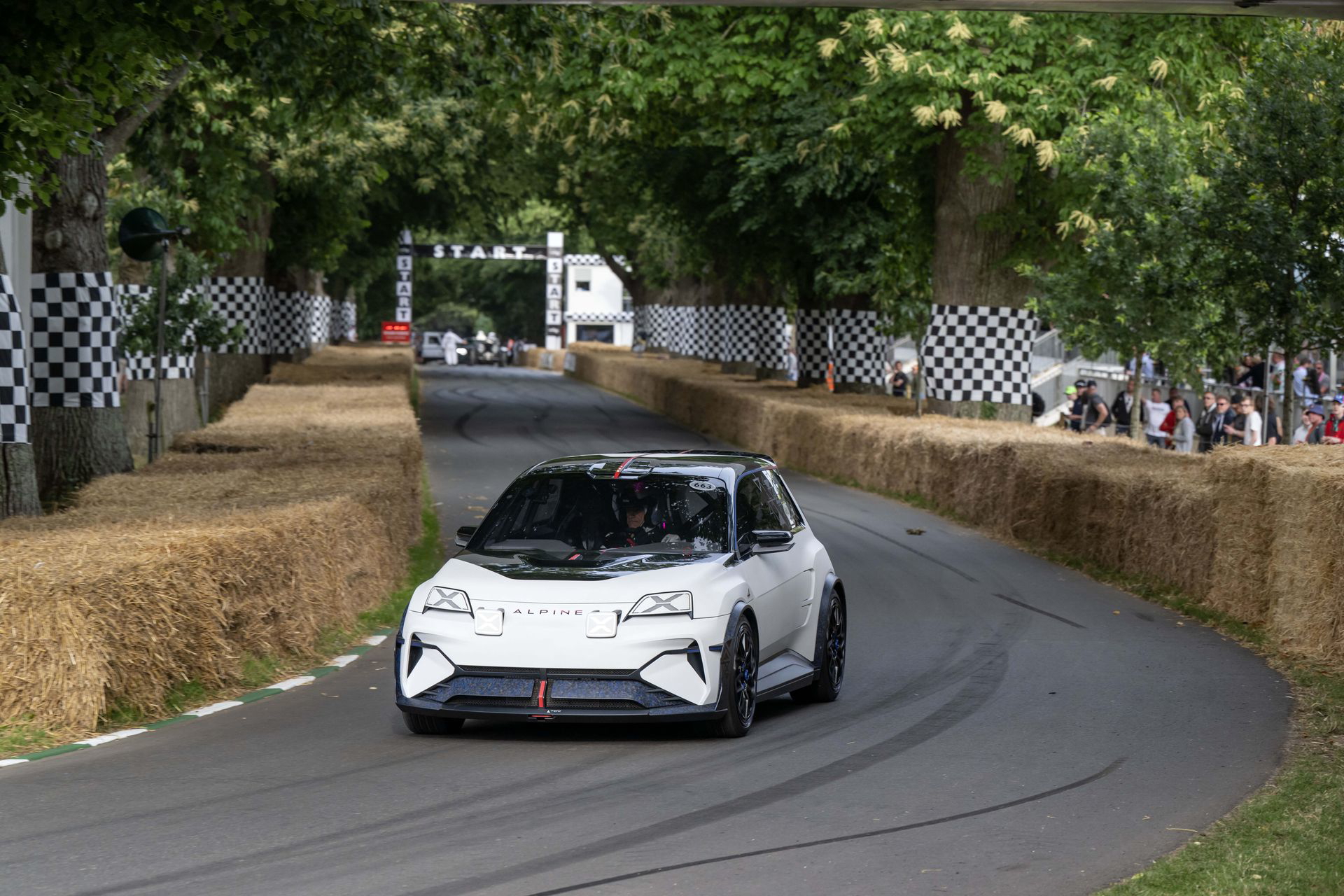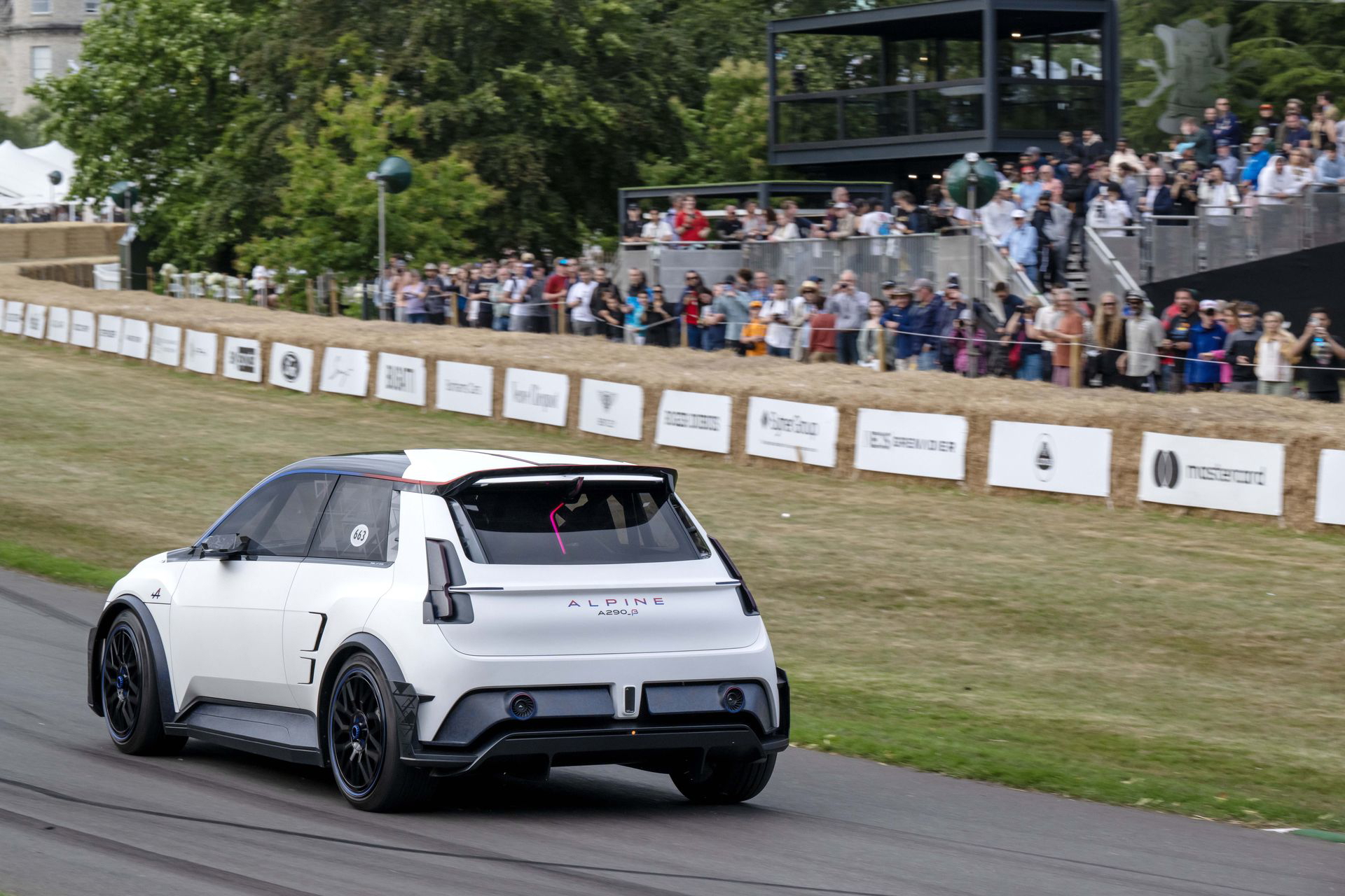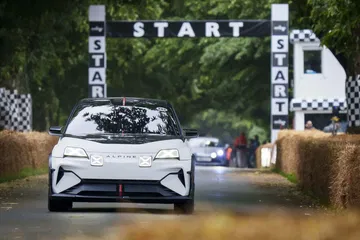 Abbi saca su lado más petrolhead: hace varios acelerones y derrapa con el coche en alguna curva, para algarabía del público – y mía, claro está. Los otros compañeros del grupo español ascendieron Goodwood Hill en uno de los coches más interesantes del futuro de Alpine: el espectacular A290_β. Es la versión deportiva, hot hatch, del Renault 5. En vivo, es un coche muy llamativo, y se siente verdaderamente especial. No deja de ser un concept, pero es un concept que se acerca mucho a lo que será el coche de producción definitivo.