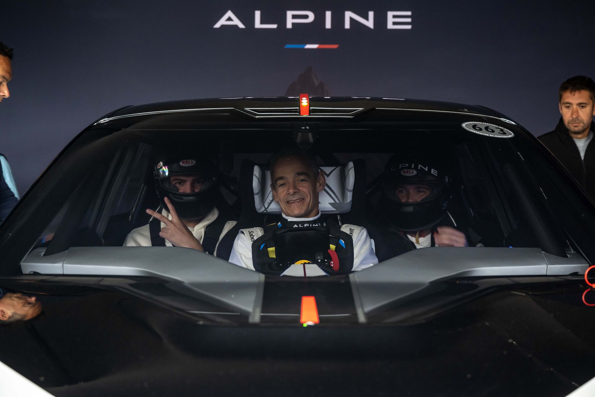 Desde el asiento «del miedo» del A110 S, sentados a apenas unos centímetros del suelo, empiezo a ponerme un poco nervioso. Emocionado, mejor dicho. Quizá de forma parecida a cuando estás llegando al punto más alto de una montaña rusa, y sabes que llegan las emociones fuertes. Las emociones fuertes llegaron, y es que por poco tengo que bajarme del coche. No llevaba puesta una chaqueta, si no una camisa de manga corta, y un comisario me dice que no puedo ir de copiloto si no tengo manga larga – una medida de precaución en caso de accidente.