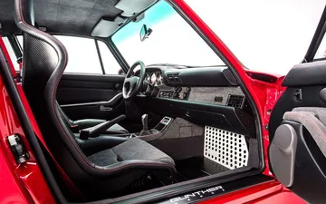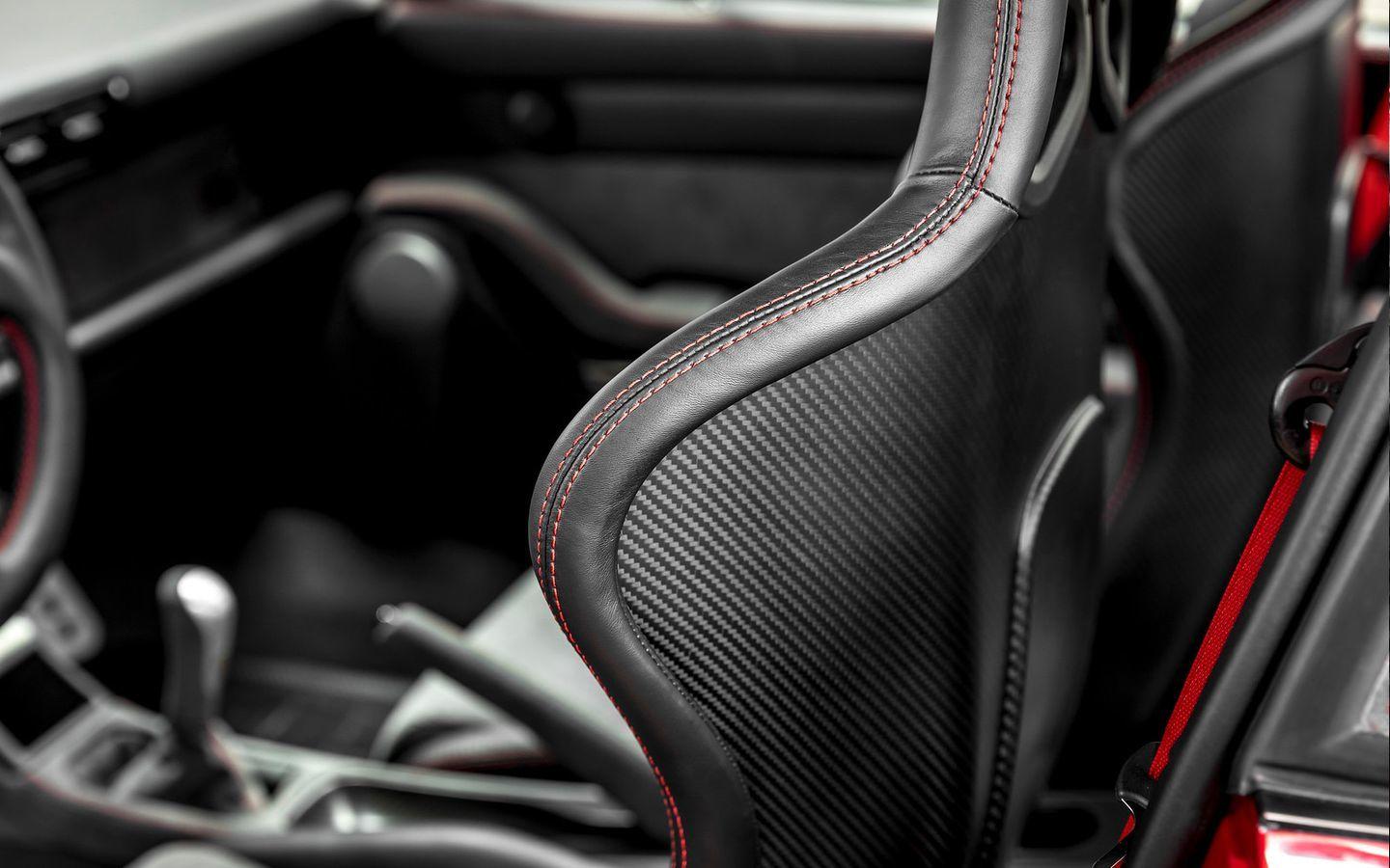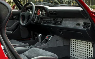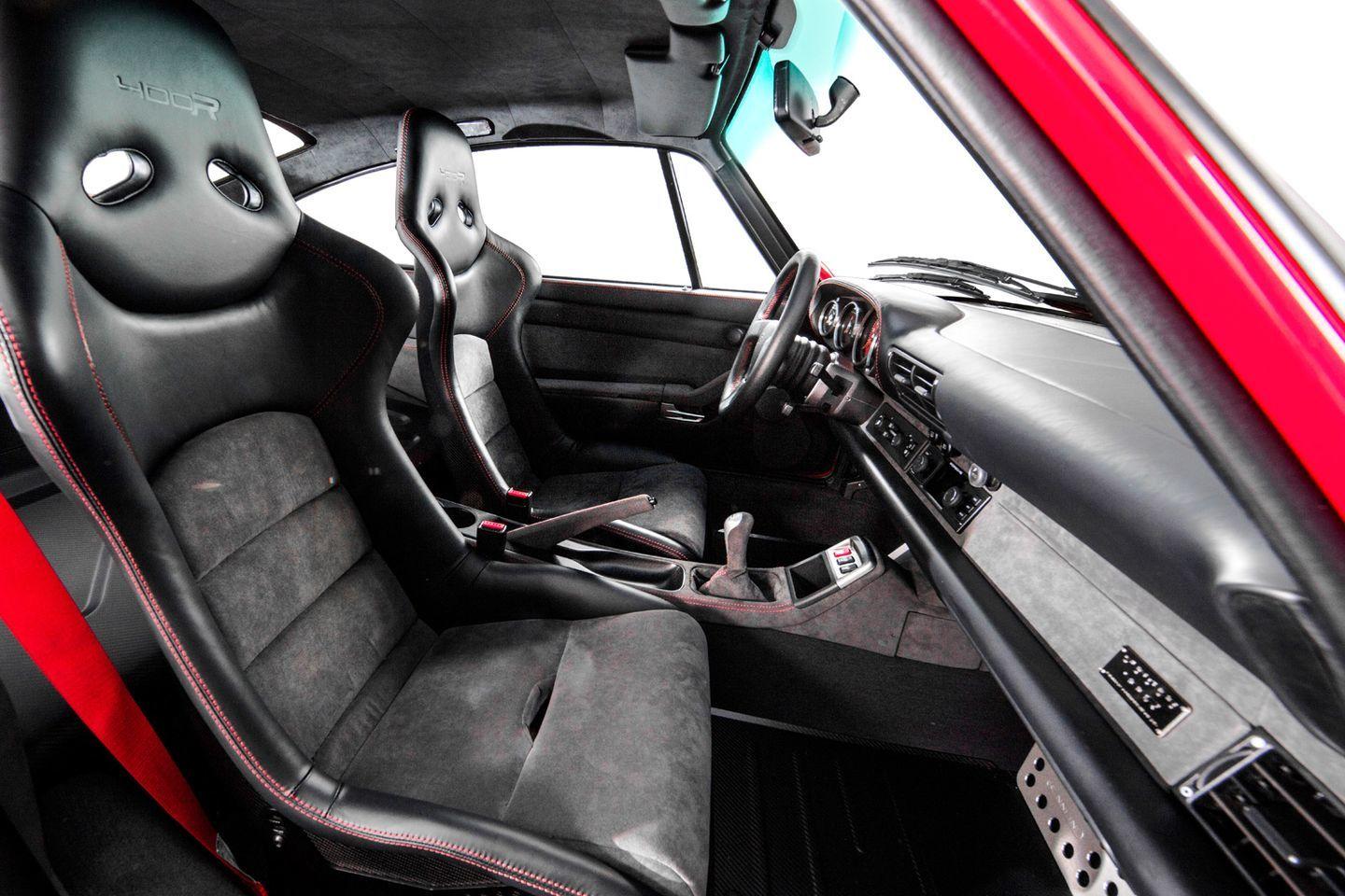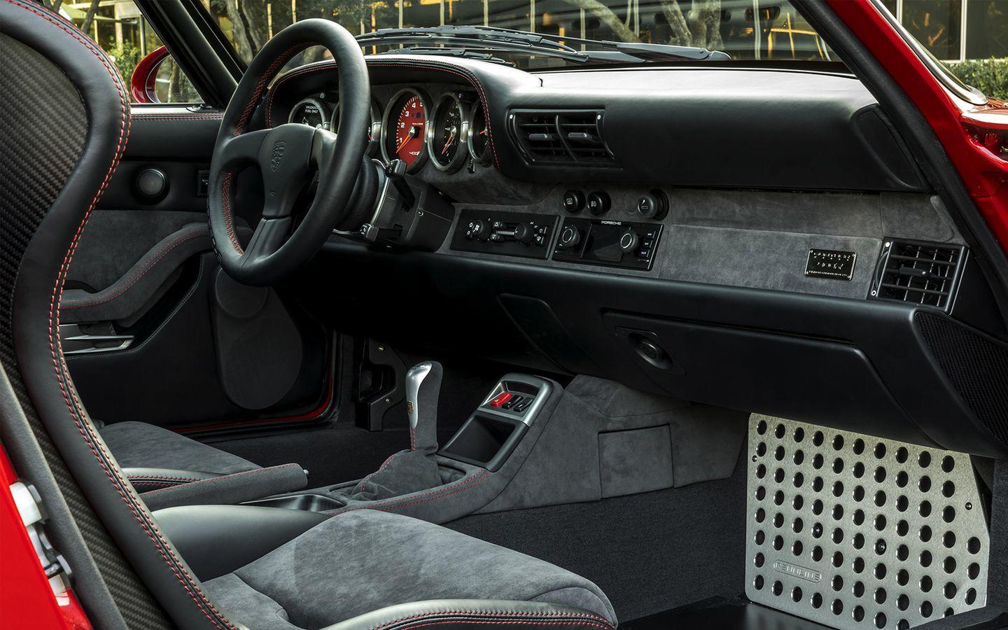 El resultado es apabullante: un Porsche 993 de aspecto absolutamente radical, ensanchado, con un diseño más agresivo, de prestaciones arrolladoras, pero aún perfectamente reconocible como un Porsche 993. En Gunther Werks han querido que la función sea la que dicte la forma del coche, y han captado perfectamente el espíritu aligerado de los Porsche RS. El peso final del coche es de sólamente 1.250 kilos, y a ello contribuye no solo su carrocería de fibra de carbono, sino sus baquets de fibra de carbono de desarrollo propio. Se han suprimido los asientos traseros y se han incluso instalado alfombrillas de fibra de carbono.