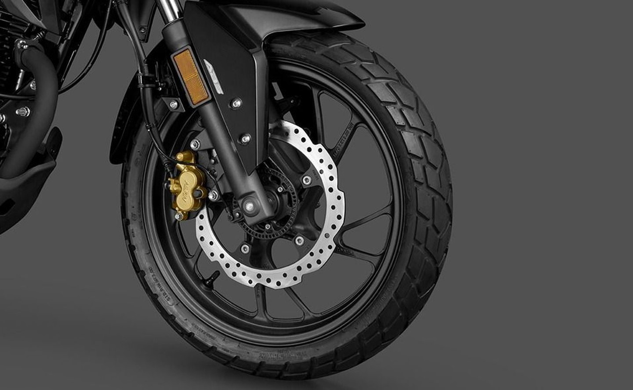 La Honda CB190X es una moto diseñada para mercados emergentes, mercados donde las carreteras no están en buen estado y los caminos son la tónica habitual. Aunque la moto tenga llantas simétricas de 17″ de aleación, la realidad es que monta neumáticos mixtos y tiene protecciones todoterreno notables: el cubrecárter es de serie, al igual que las protecciones para el chasis o los cubrepuños. La suspensión de la moto consta de una horquilla invertida delantera y un monoamortiguador trasero, y su altura mínima al suelo es de 160 mm.