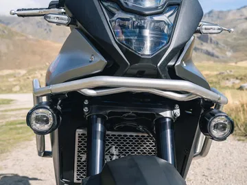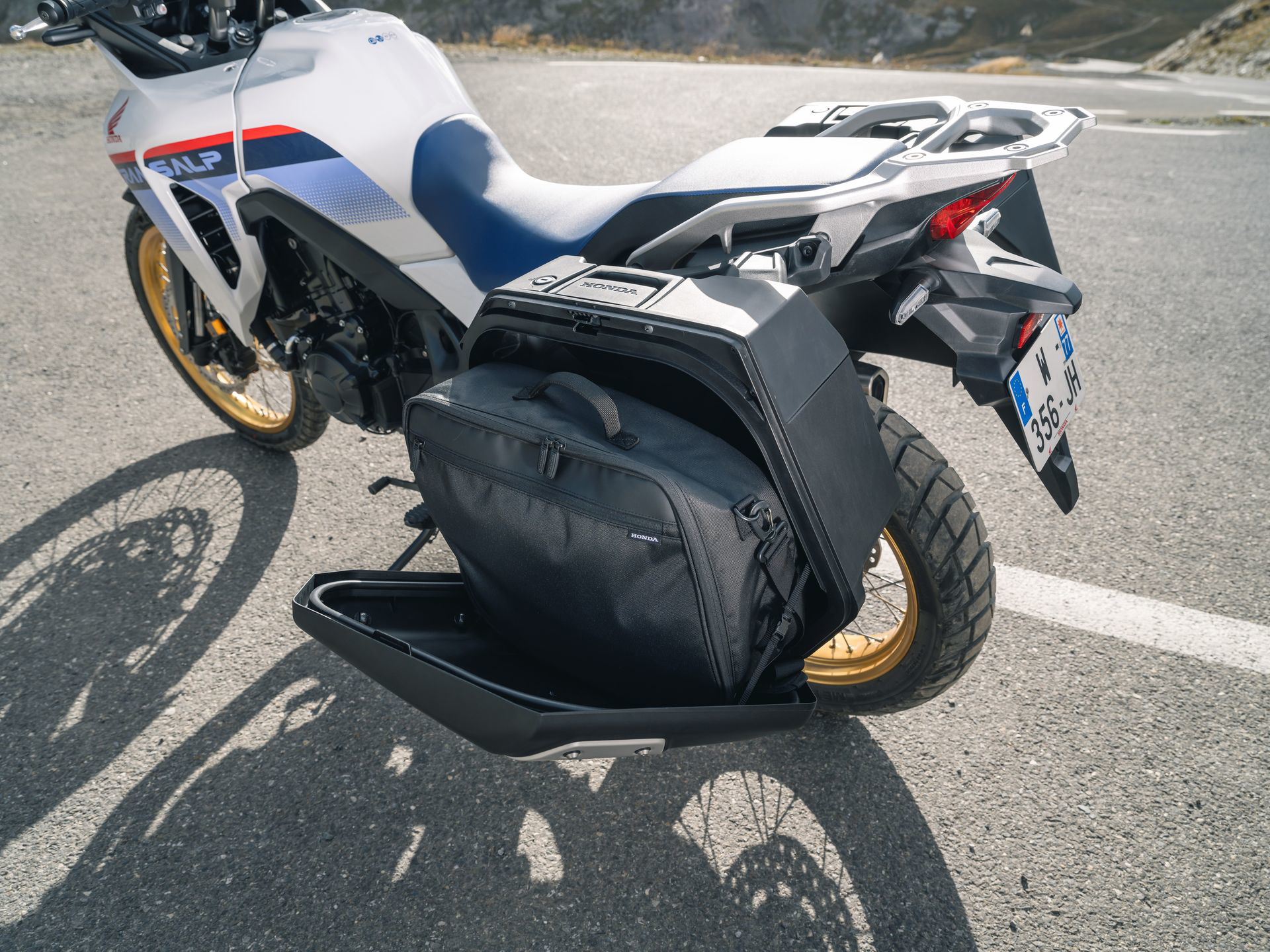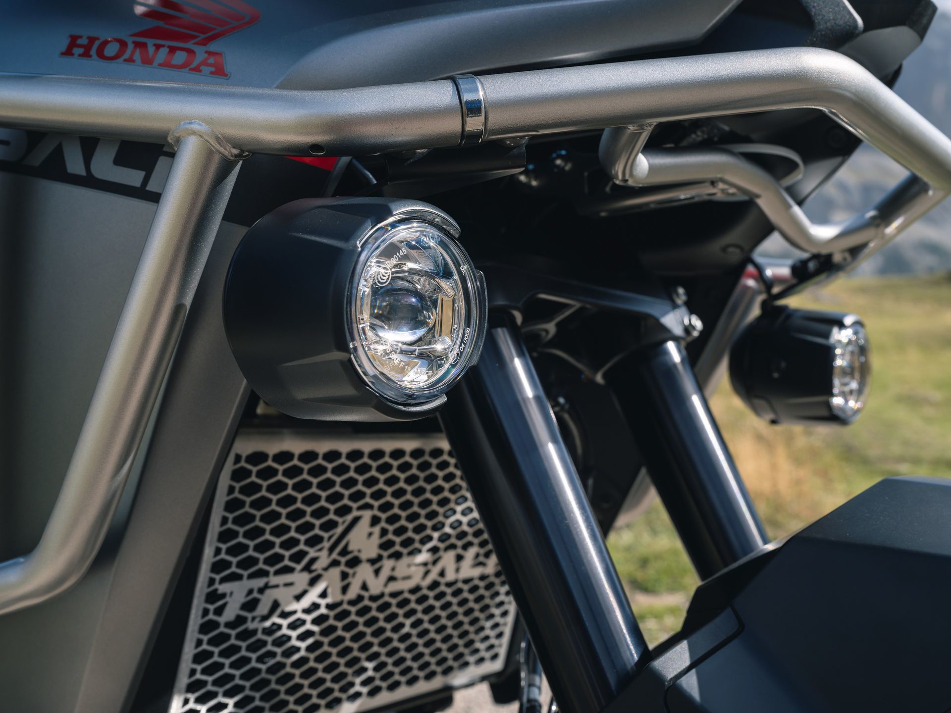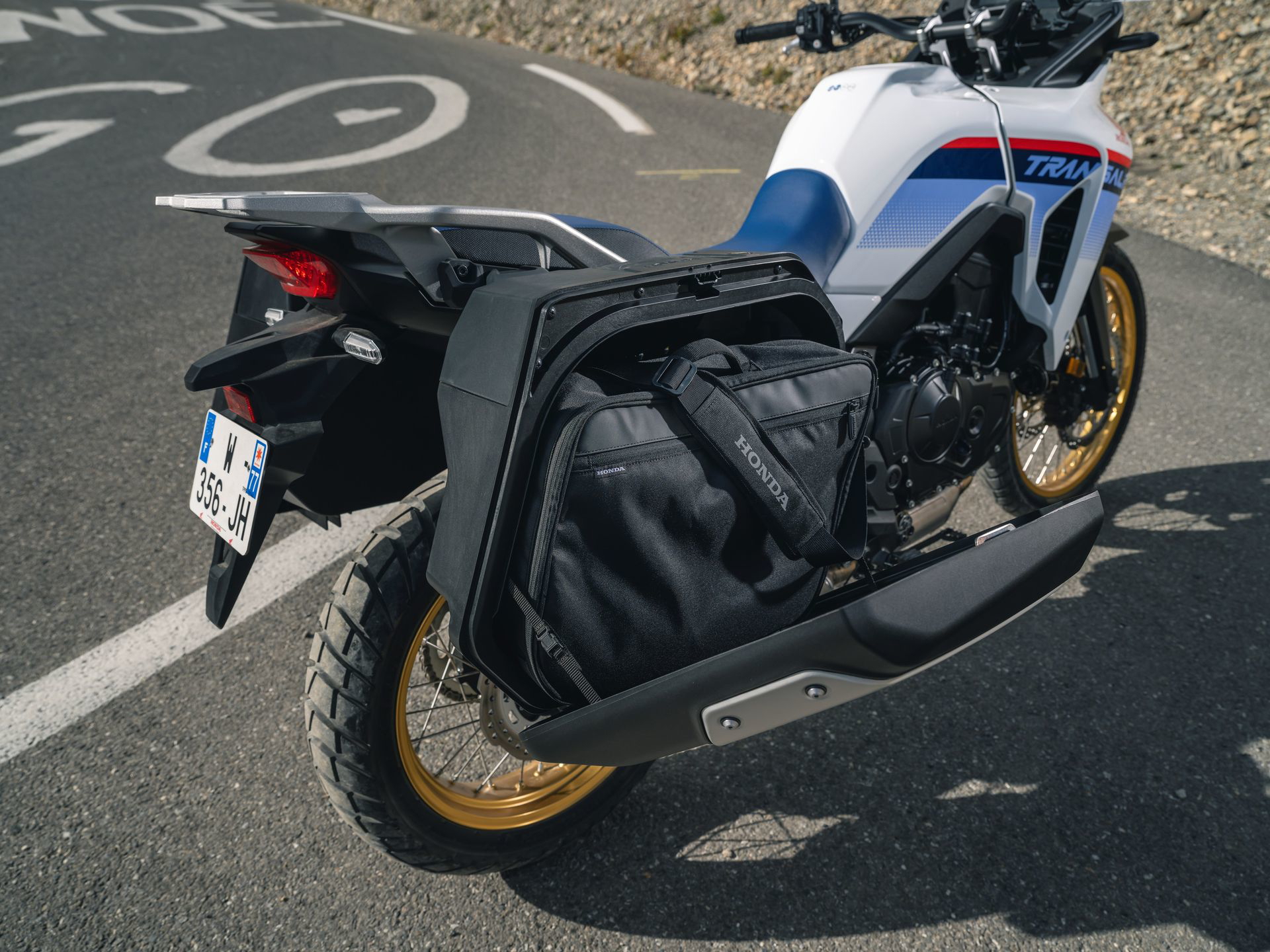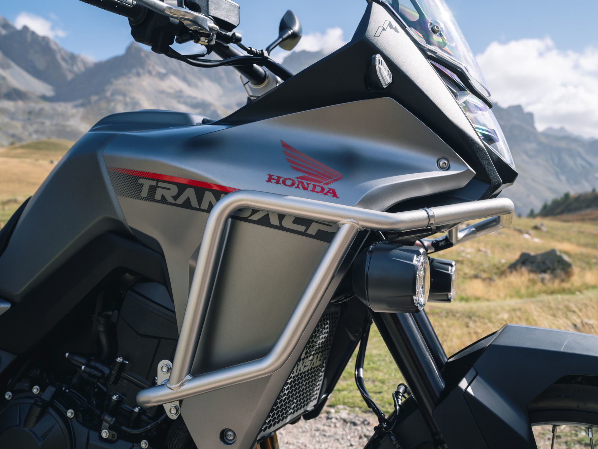 - La Honda Transalp no estaría completa sin una amplísima gama de kits y accesorios. Los packs Rally (1.028 euros) y Adventure Combi (680 euros) dotan a la moto de muchas protecciones y una estética más agresiva, mientras que otros packs, como el Touring (1.106 euros), enfatizan el uso de la Transalp como moto de viaje añadiendo alforjas y otros elementos de confort.