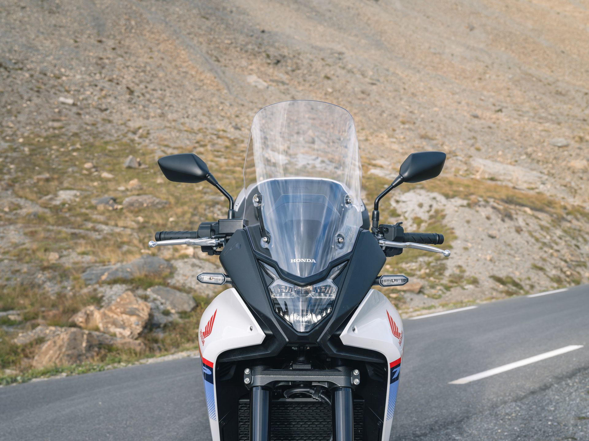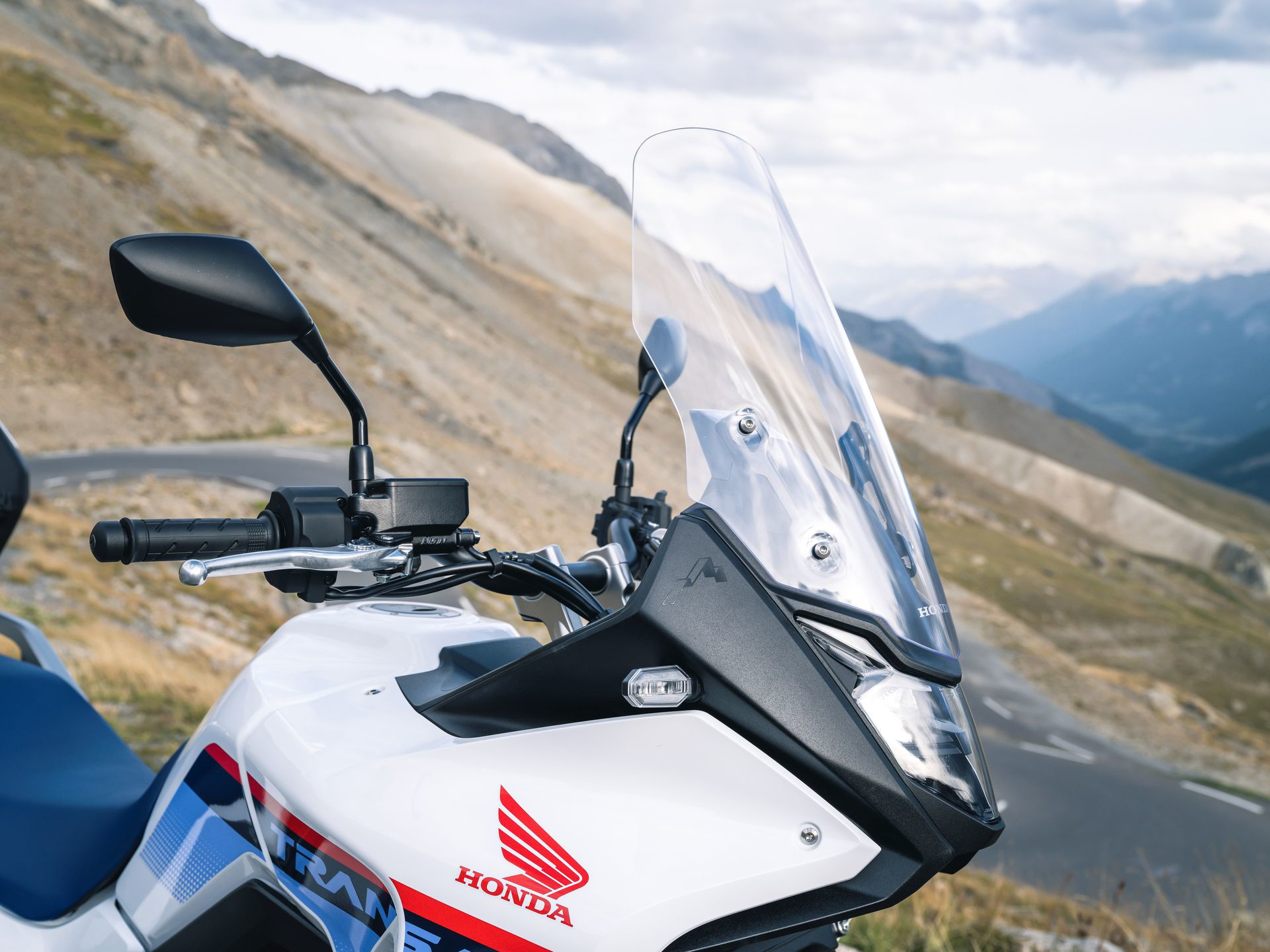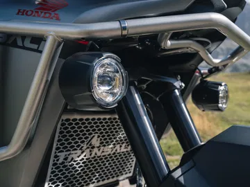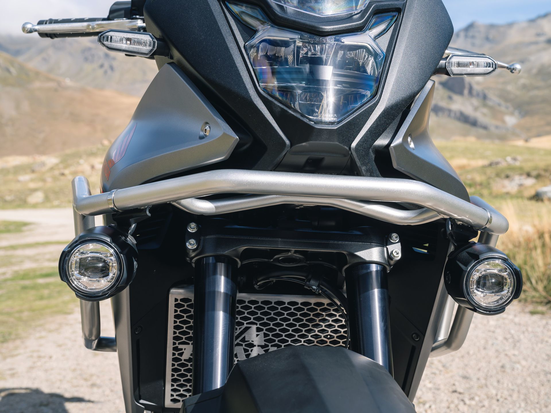 Por una parte, es perfecta para dominar el tráfico urbano, con una posición de pilotaje erguida – y elevada, el asiento está a 850 mm del asfalto – y un manillar que nos hace pilotar erguidos y cómodos. Su suspensión tiene un tarado confortable, y está diseñada para absorber los baches con eficacia. El diseño de la Transalp es llamativo y moderno, con una óptica full-LED muy futurista y un carenado moderno, pero con una vibra reto que enamorará a los apasionados de la historia de Honda. Su agresividad estética no desentona con su mecánica.