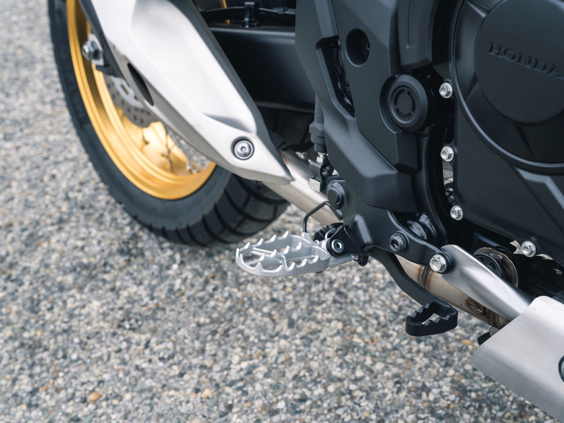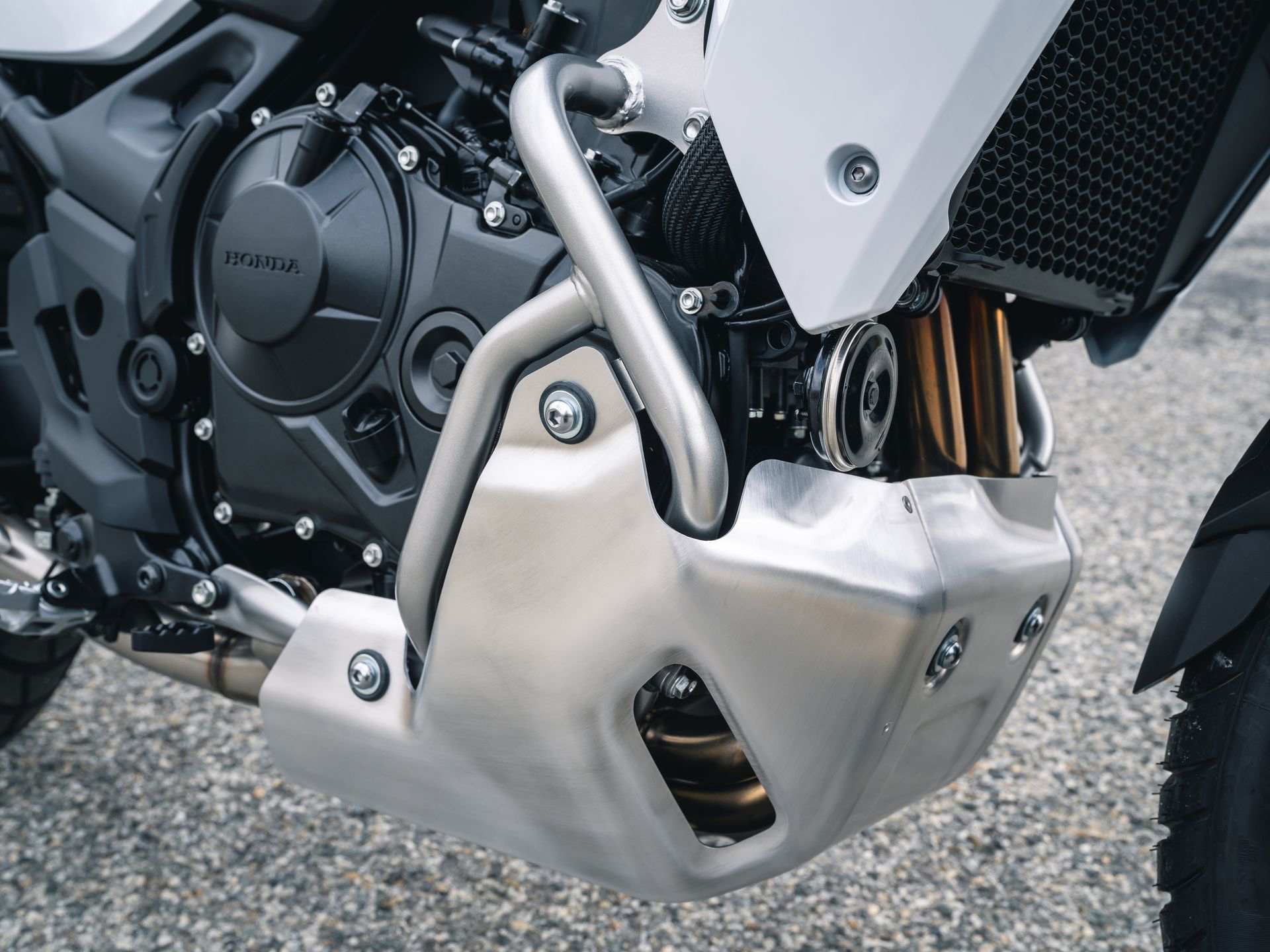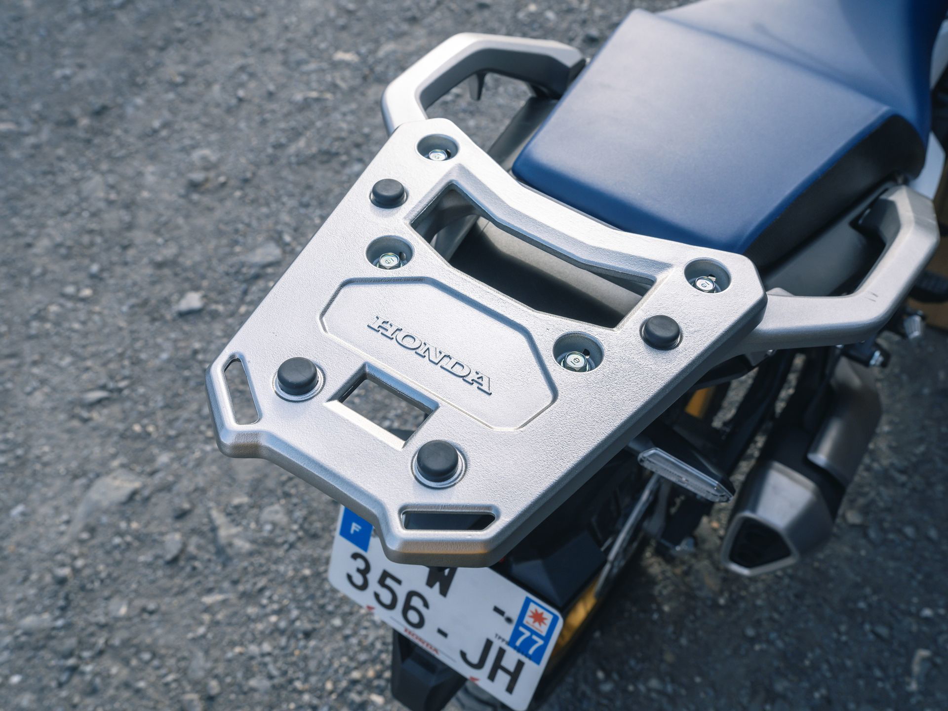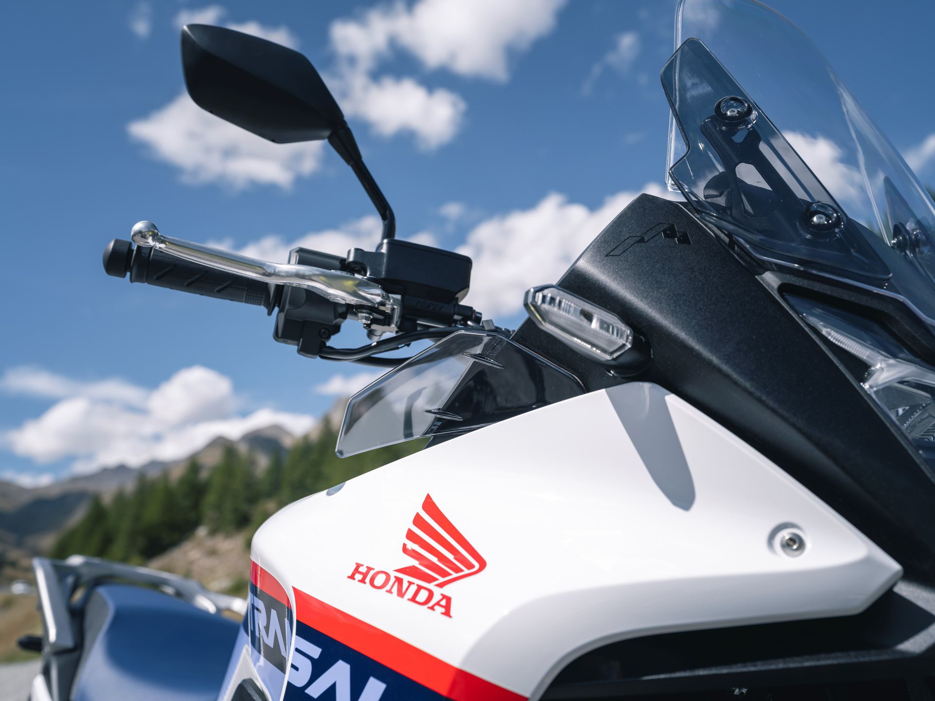 Consta de dos discos delanteros de 310 mm de diámetro y un disco trasero de 256 mm, todos ellos abrazados por pinzas Nissin. El ABS de doble canal es de serie, es desconectable en el eje trasero, y cuenta con control de tracción – denominado HSTC por Honda. Además, tiene asistente anti-caballitos (desconectable) y cuatro modos de conducción (Gravel, Sport, Standard y Lluvia), que regulan la inmediatez de la entrega de potencia y el tarado de las ayudas electrónicas al pilotaje. A nivel tecnológico, la instrumentación TFT de 5 pulgadas permite incluso la navegación por pasos y la conexión Bluetooth con nuestro smartphone.