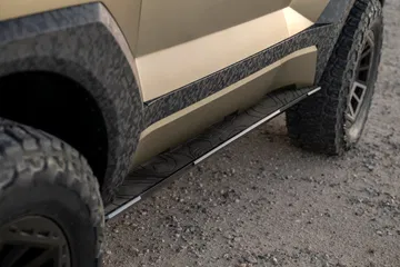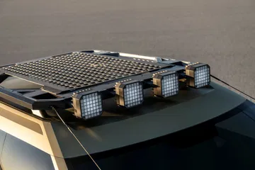Toda la carrocería ha sido diseñada para sobrevivir a la más extenuante de las aventuras, encontrando numerosas protecciones en la carrocería, ganchos de rescate delante y detrás, iluminación LED auxiliar, plataforma de carga sobre el techo, cables de cero sobre el parabrisas para poder abrinos paso por la jungla, etc.