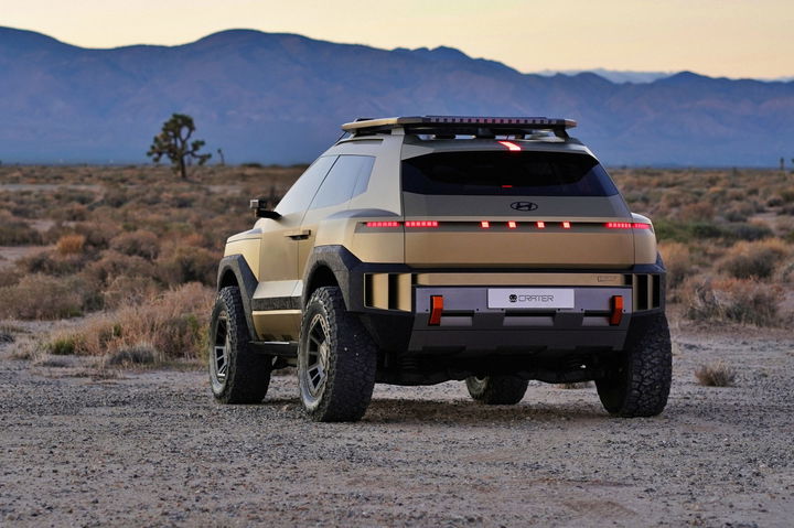 Pero los planes de Hyundai podrían ir todavía más allá. El Crater Concept es la visión del fabricante coreano sobre cómo debería ser el 4×4 perfecto, un coche provisto de un diseño muy robusto y agresivo, dotado de generosos ángulos y altura libre, además de enormes ruedas todoterreno de 33″ con las que poder afrontar cualquier tipo de obstáculo sin miramientos.