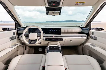 El interior sigue la tendencia de los nuevos Hyundai de intentar crear una atmósfera hogareña, minimalista, moderna y de colores cálidos y suaves. No faltan los materiales sostenibles, pero sobre todo se pone cuidado en los acabados. Por supuesto, la tecnología está muy presente con una doble pantalla panorámica curva de 12,3 + 12,3 pulgadas, que integra instrumentación y sistema multimedia.