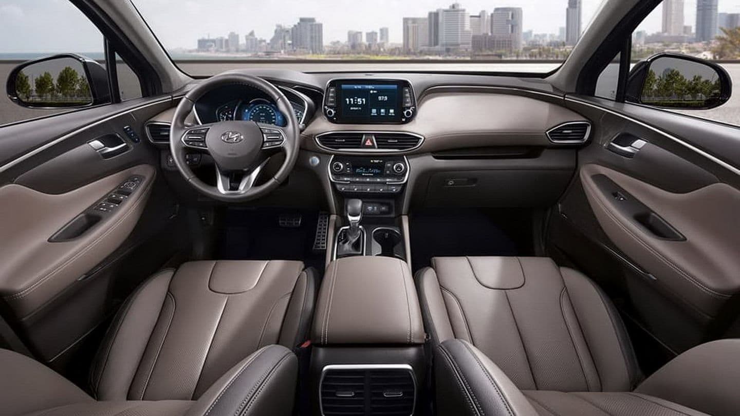 La disposición de los mandos de la climatización o el volante también son elementos comunes a otros Hyundai. En la imagen no se puede ver con claridad, pero es posible que el Hyundai Santa Fe estrene una instrumentación digital. Una de las novedades a nivel tecnológico y de seguridad activa será un asistente llamado Rear Occupant Alert. Este sistema controla la presencia de ocupantes en el asiento trasero y nos avisa si estamos a punto de abandonar el vehículo – ideal para no olvidar niños o mascotas en un coche cerrado al sol. Otra asistencia interesante es una alerta de tráfico cruzado con frenada automática.