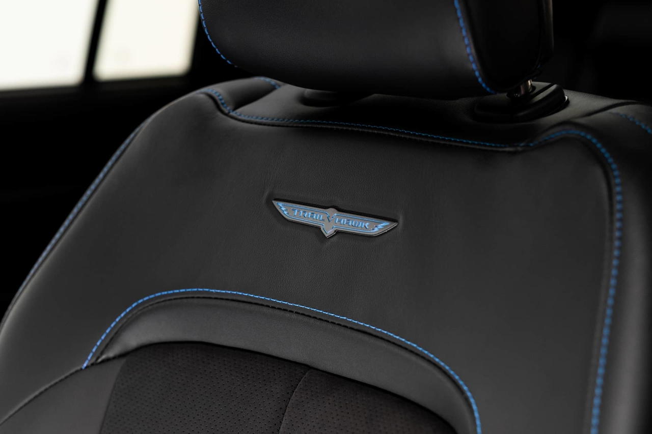 La adopción del sello Trailhawk supondrá estrenar nuevos paragolpes que permitan incrementar los ángulos de ataque y salida, un look más agresivo que también afectará a la parrilla o las protecciones repartidas por toda la carrocería y que también dejará al descubierto los ganchos de rescate (pintados en color rojo) para poder remolcar o ser remolcados cuando la aventura off-road se complique más de la cuenta.