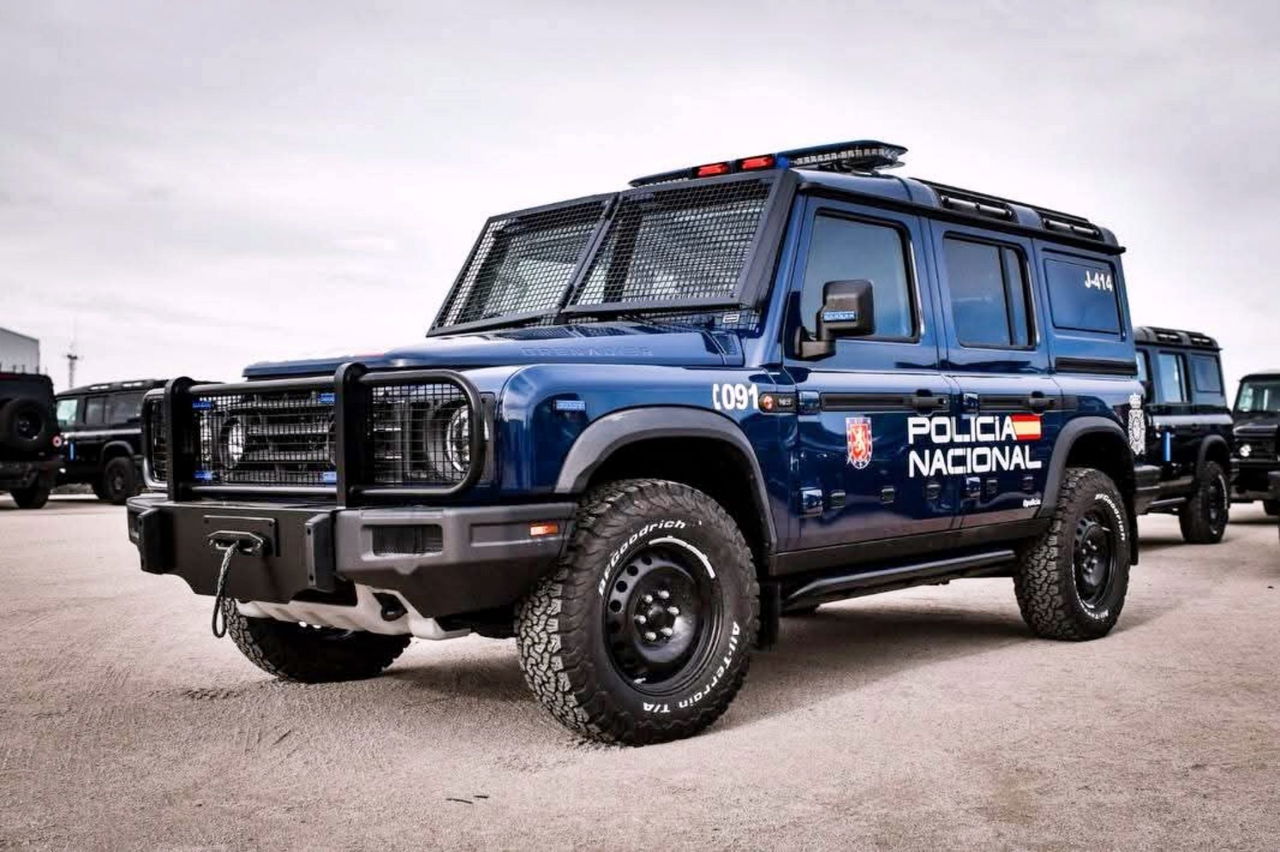 El Grenadier es un todoterreno muy poco visto por la calle, y no es porque estén todos en el campo, sino porque se venden poco. Pero la Policía Nacional ha considerado que es la mejor opción y ha comprado un lote de ellos, tanto rotulados como camuflados. En las imágenes que se han publicado, podemos ver unidades con el kit de la UIP y algunas camufladas, en negro y sin rotular, en segundo plano.