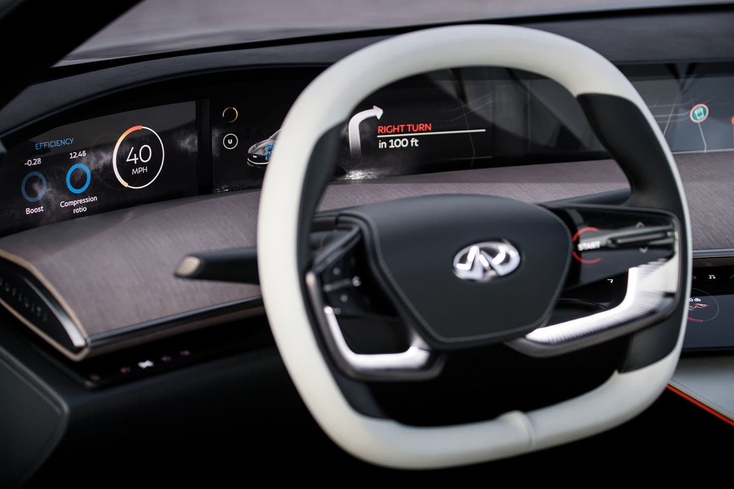Infiniti también reconoce que la estética de este prototipo, su diseño interior y exterior minimalista y moderno, probablemente acabe influyendo en los nuevos diseños de la marca. La filial de lujo de Nissan también reconoce cómo el empleo de mecánicas compactas, como este motor de cuatro cilindros, que asegura tener un rendimiento de V6, y una eficiencia propia de un diésel, han facilitado el diseño de un coche en el que se busca maximizar el espacio interior.