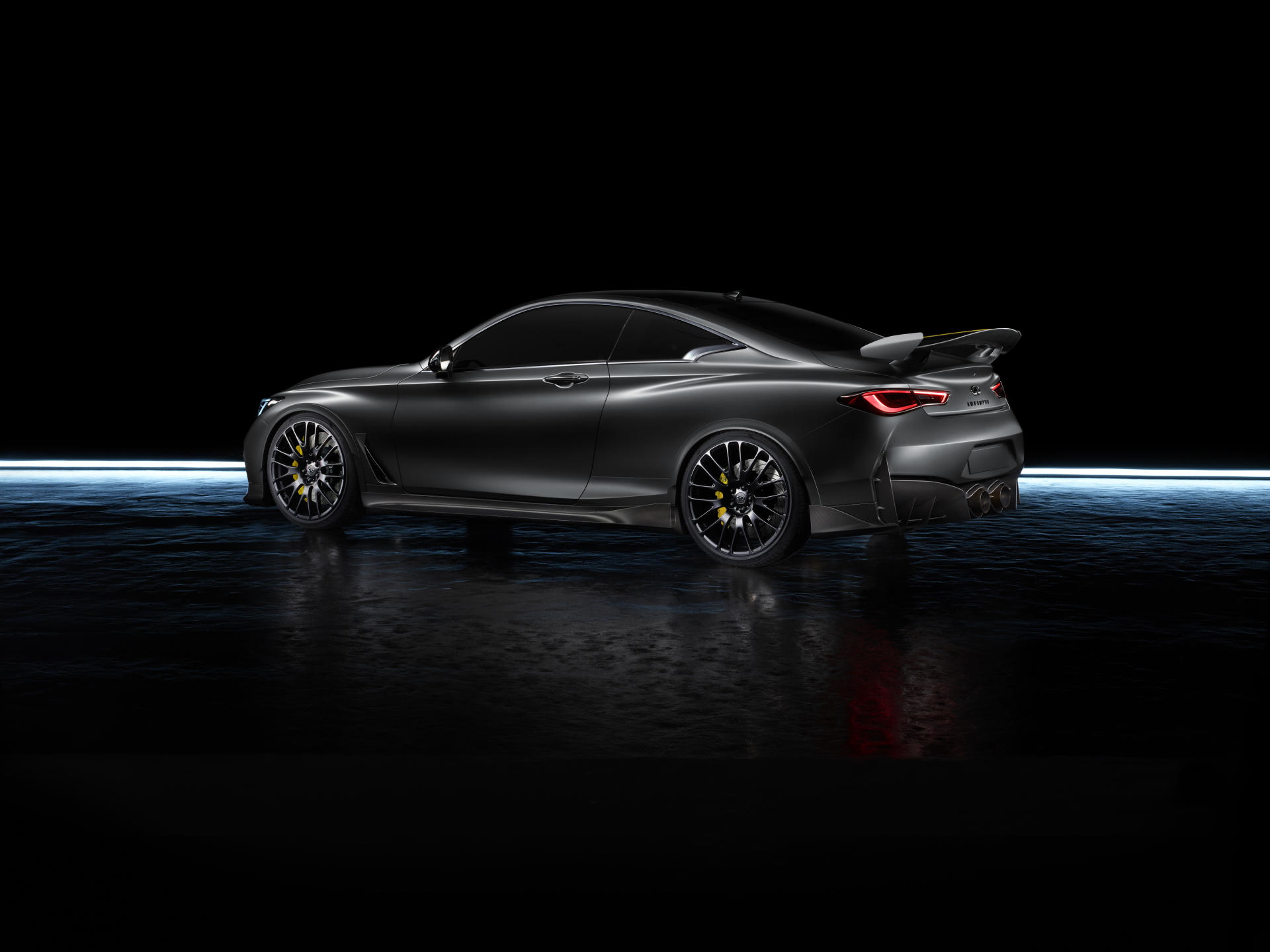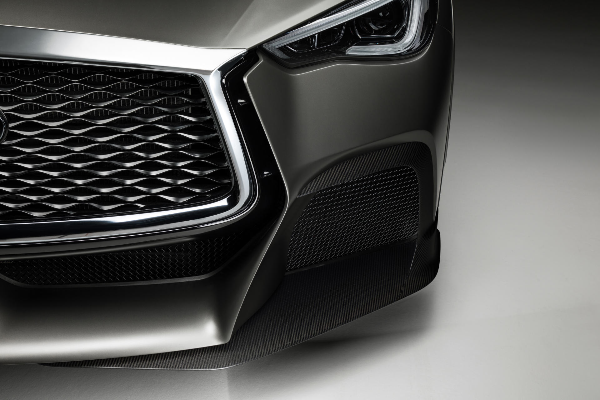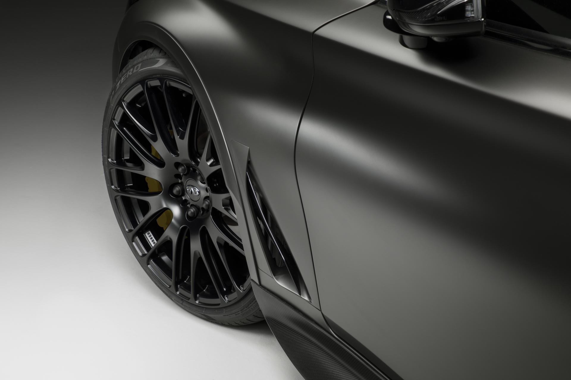 De la mano del estudio de diseño de Infiniti en Paddington, Londres, nos topamos con una extensa aplicación de fibra de carbono en la musculosa silueta del Infiniti Q60, con un nuevo splitter frontal, nuevas taloneras, un nuevo difusor, un gran alerón trasero… apareciendo además unas nuevas llantas de 21 pulgadas, más grandes, brindándonos la oportunidad de montar un neumático más ancho y además más ligeras que las originales.