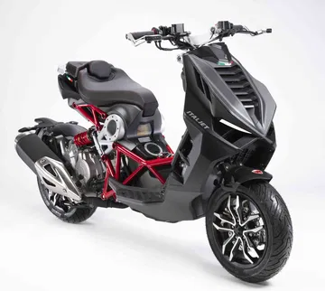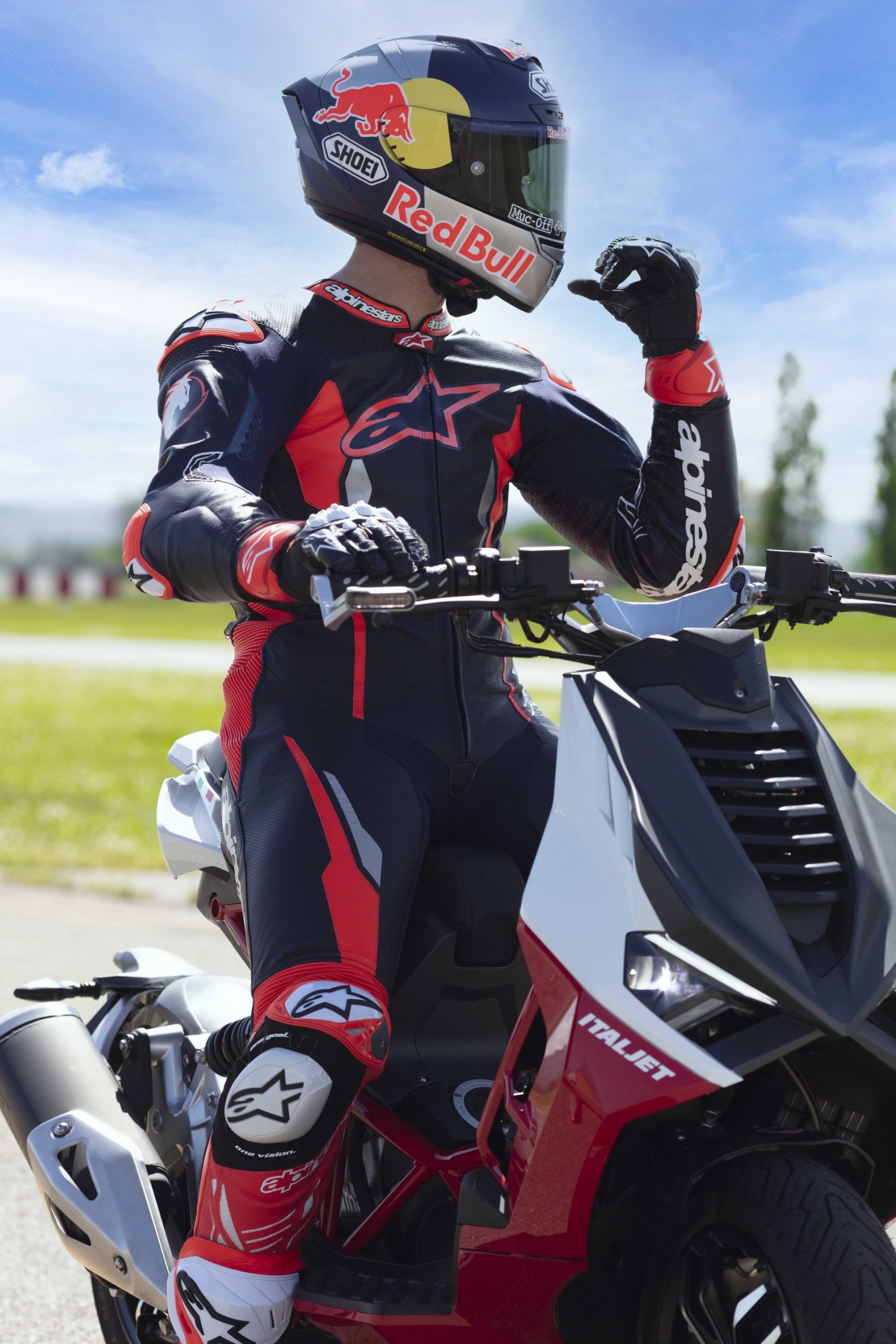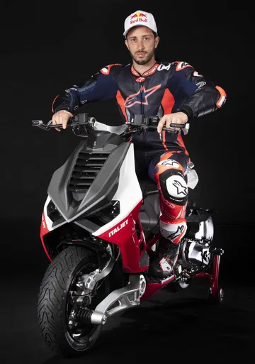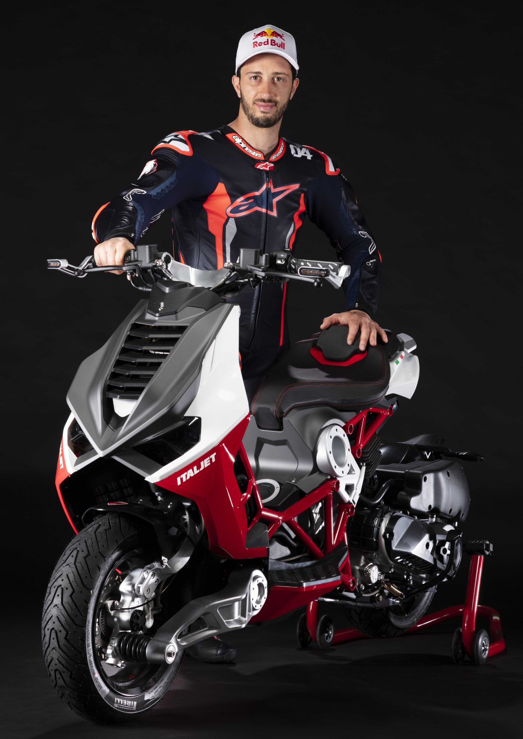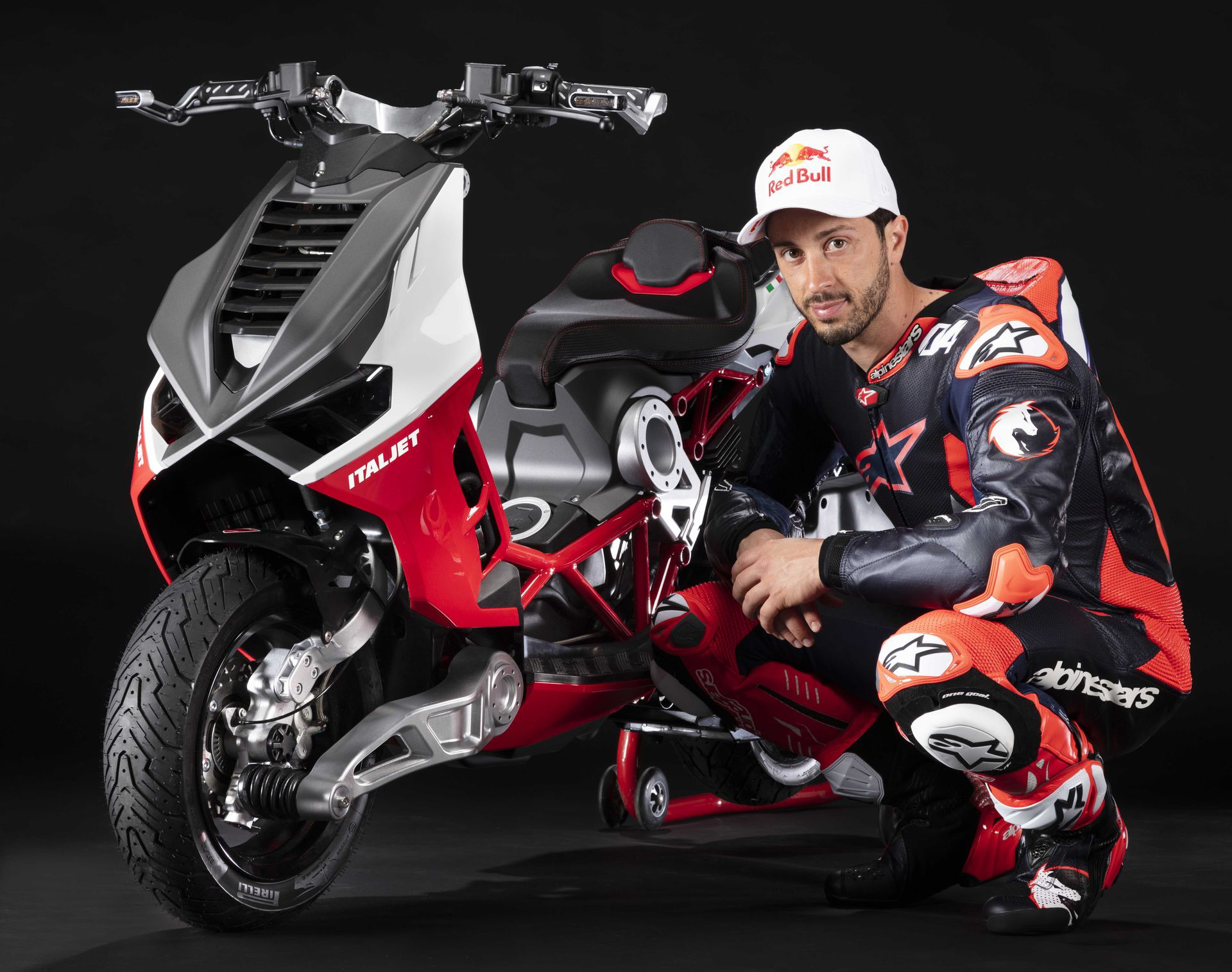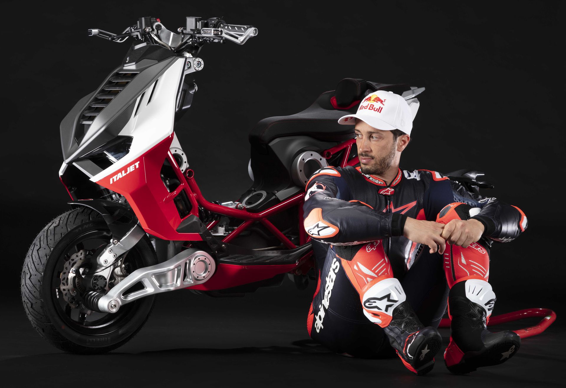 La moto es la Italjet Dragster. Es posible que no conozcas este fabricante de motos de origen italiano. Es un fabricante de bajo volumen afincado en Bolonia, la casa de marcas como Ducati o fabricantes de superdeportivos como Lamborghini o Ferrari. En la «comarca del motor», Italjet produce únicamente la Dragster. Es una scooter, y aunque podemos circular con ella legalmente por carretera y conducirla con el carnet B de coche, es una moto que es habitualmente modificada y personalizada para su uso en circuito y en las competiciones de scooter.