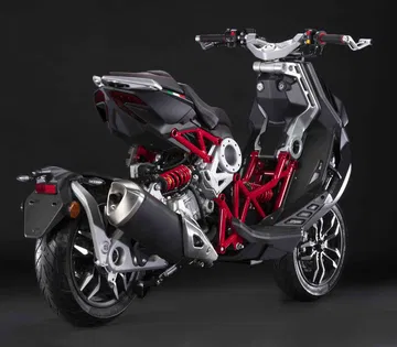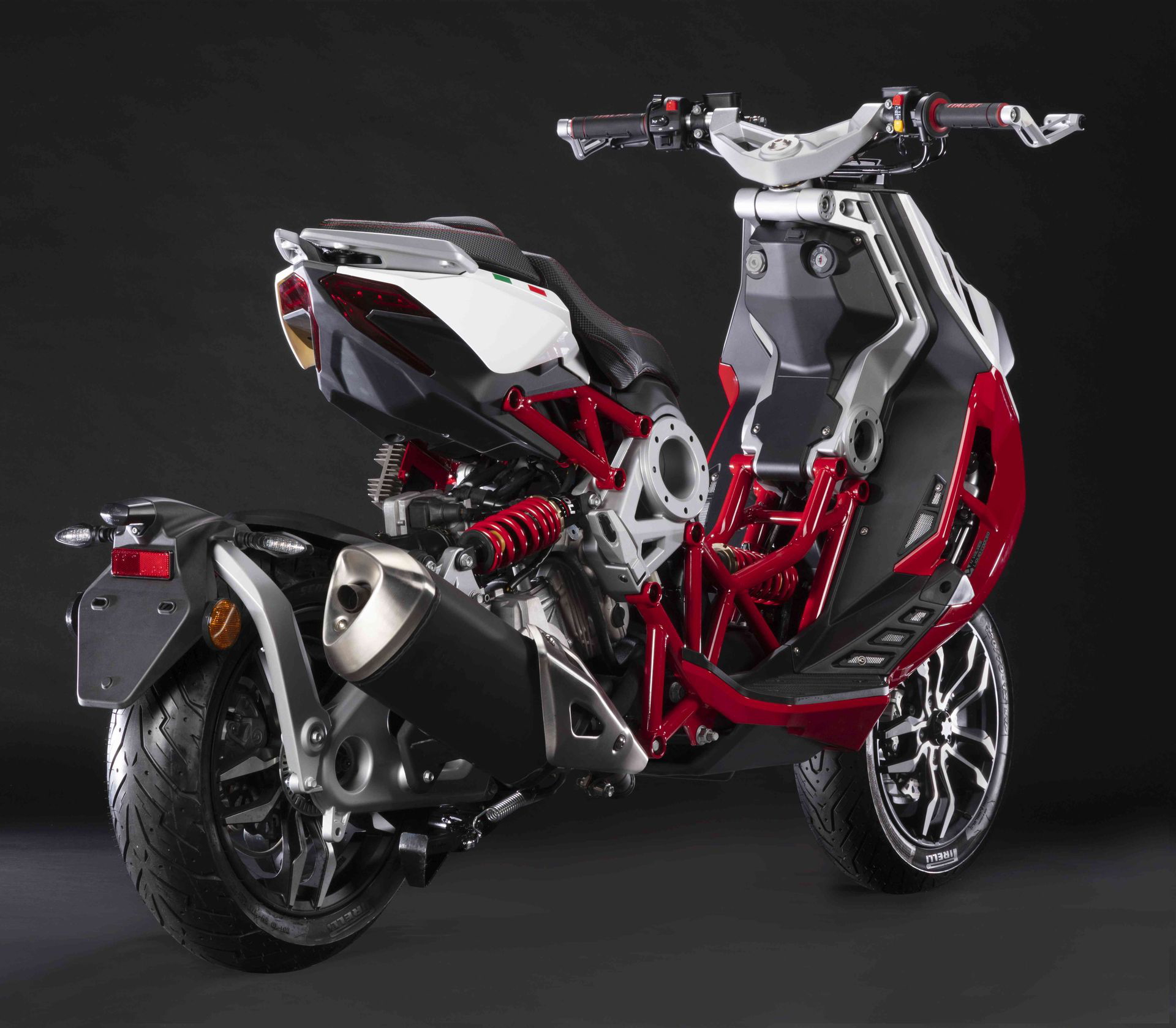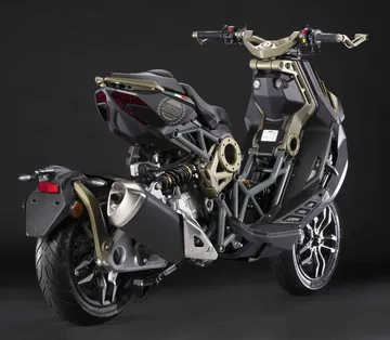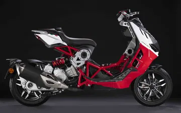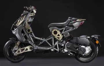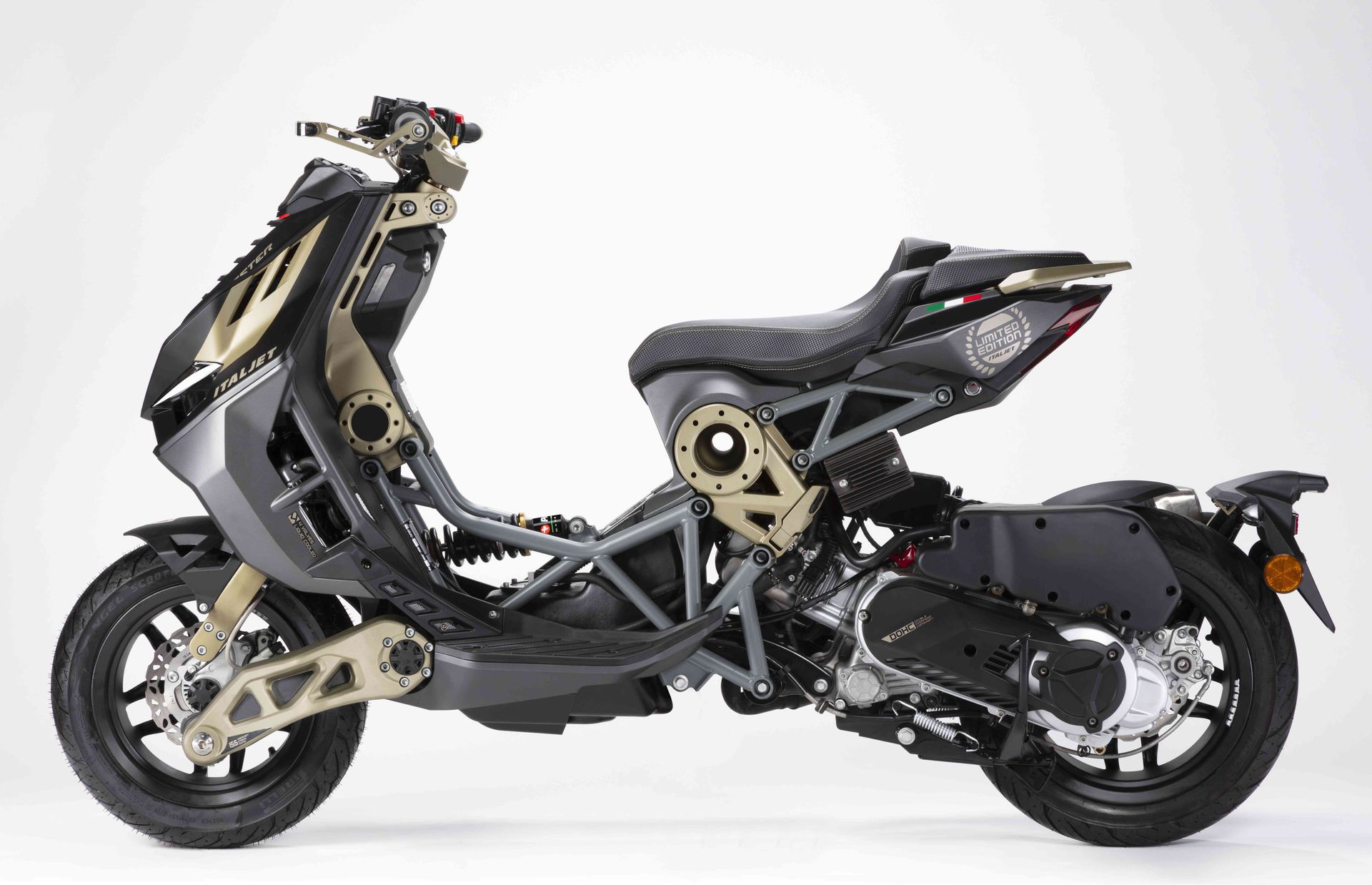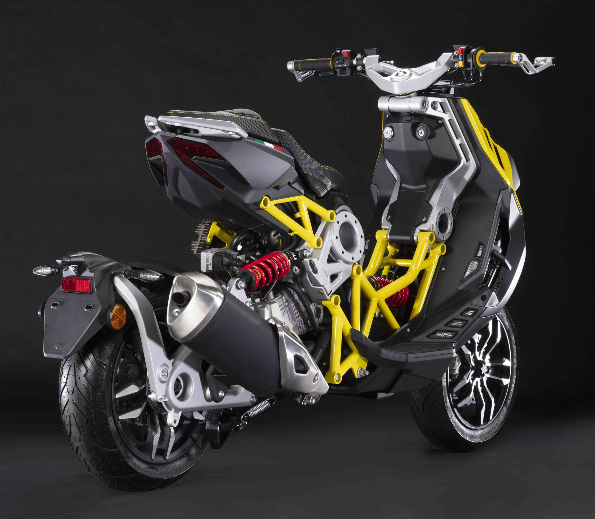 Las scooter de 125 centímetros cúbicos no suelen ser motos asociadas al dinamismo o la deportividad. Son motos que deben ser prácticas y eficientes, a menudo, sacrificando por el camino la pasión. Sin embargo, eso no ocurre en la moto que protagoniza este artículo. Es una scooter deportiva, pero más que eso, casi podríamos definirla como una moto deportiva atrapada en el cuerpo de una scooter. Su diseño es muy llamativo y peculiar, le gustan mucho los circuitos y su construcción es casi artesanal… con una factura acorde.