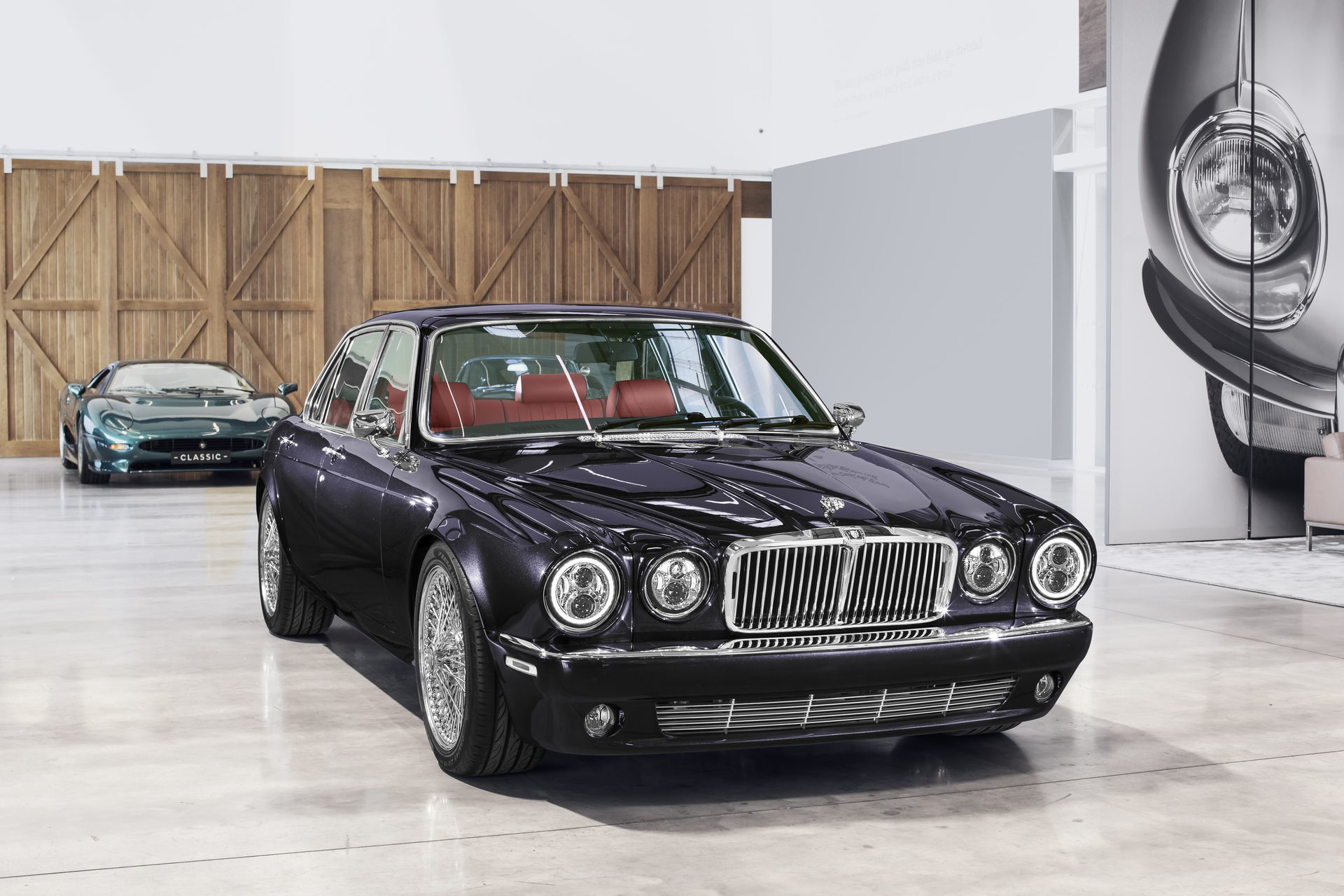 Jaguar Land Rover Classic Works – con sede en Coventry – han invertido la friolera de 3.500 horas de trabajo en crear la preciosidad que tenéis en pantalla. El coche comenzó su vida en 1984, y ha sido la base de una completa restauración, en la que se han actualizado multitud de elementos técnicos y mecánicos, modernizando el coche sin que pierda su carácter. En este restomod hay un fuerte componente de personalización, pero ejecutada con cierto gusto, dentro de los – esperados – excesos del coche de un batería de heavy metal.