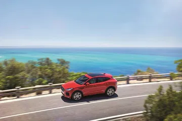 Tras las simulaciones, llegarían las primeras pruebas de campo, en Inglaterra, en la pista de Santa Pod. Jaguar instaló en una explanada una rampa y un colchón hinchable gigante, sobre el que caería el Jaguar E-PACE durante las pruebas. En estas primeras pruebas, Jaguar emplearía un robot que ocuparía el puesto del conductor. Basta echar un vistazo a la carrocería, aún con camuflaje, del E-PACE con el que realizaron estas pruebas, para comprobar que cada caída iba pasando factura en este SUV.