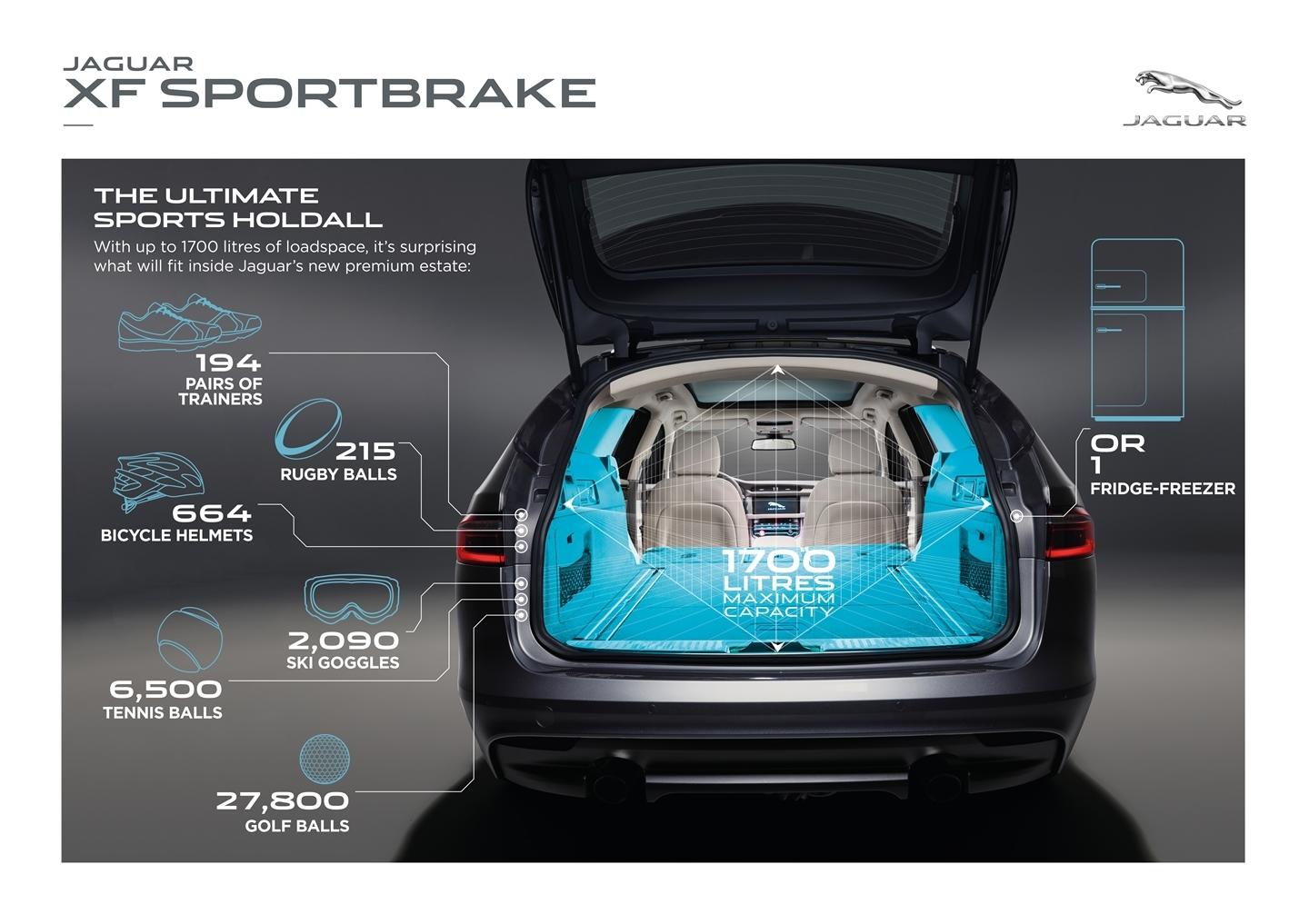 Como con toda carrocería de nuevo diseño, uno de los miedos a la hora de abordar un trabajo que altere las proporciones del modelo es conocer el resultado de esas nuevas cotas. El Jaguar XF Sportbrake no ha defraudado y muestra un patrón estilístico que se ha mantenido prácticamente intacto con el respecto al XF berlina. La ganancia en espacio para el maletero se consigue gracias al rediseño de la zaga donde se ha instalado un portón que mejora sensiblemente el acceso al maletero y permite aumentar la capacidad de carga. De este modo el Jaguar XF Sportbrake alcanza los 565 litros de capacidad de carga (+25 litros) y puede llegar a 1.700 litros si se abaten los asientos traseros divididos en proporción 40/20/40.