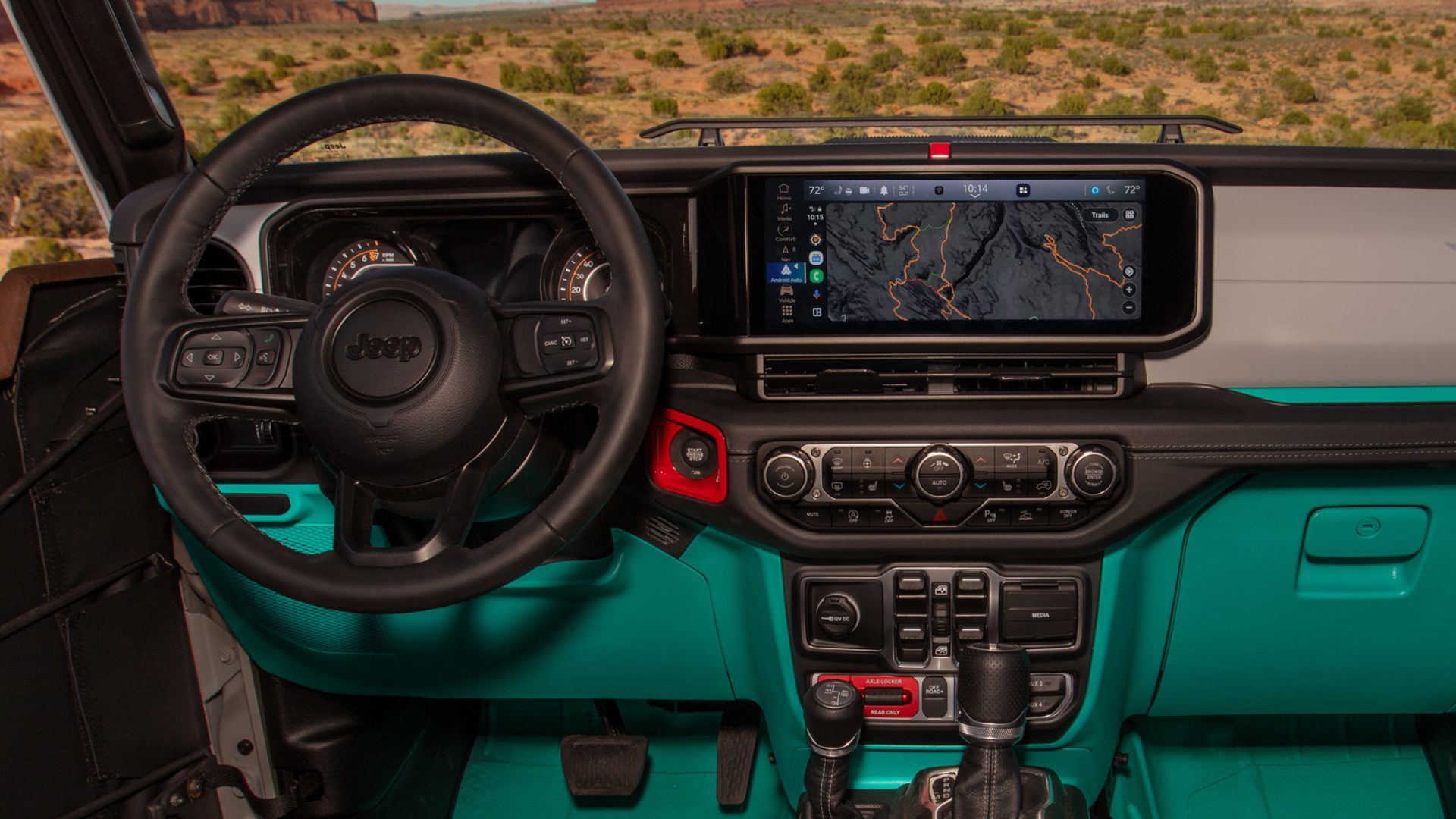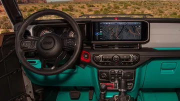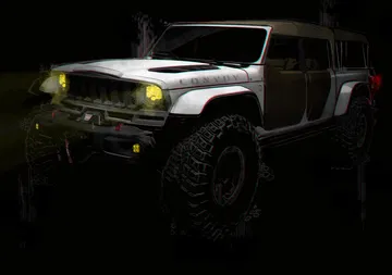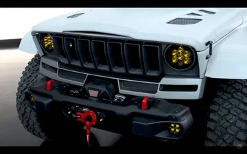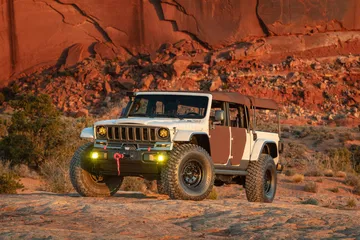 Esos retoques tienen una parte estética, como el morro, que recuerda a las camionetas J-series de los años 60 y 80. Pero lo más tocho es la preparación offroad. Y es que si el Gladiator de por sí es un gran todoterreno, ahora no conoce rival.