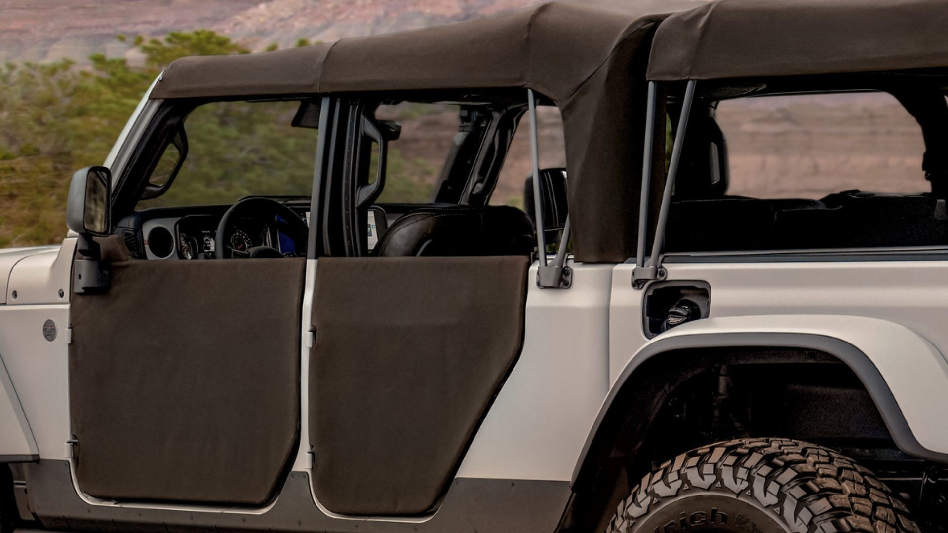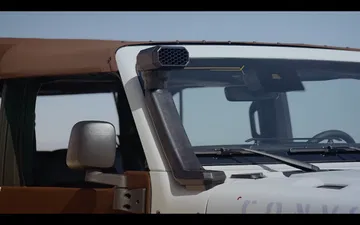 Tenemos elementos más clásicos de preparaciones todoterreno, como el snorkel, o el cabestrante de 5.448kg. Quizá todo ello quede empañado por el enorme techo de lona color chocolate y, sí, también las puertas. Aunque obviamente, hay una estructura tubular en su interior.