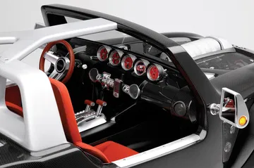 Tampoco se quedaron atrás con el interior. Hicieron algo de aspecto lujoso, pero también funcional, con aluminio cepillado, un sistema GPS que se podía desacoplar para usar en la mano, multitud de relojes y palancas para controlar los sistemas de tracción, motores y giro. Eso sí, el espacio es solo de 2 ocupantes en asientos de aspecto recogido tapizados en tela roja.