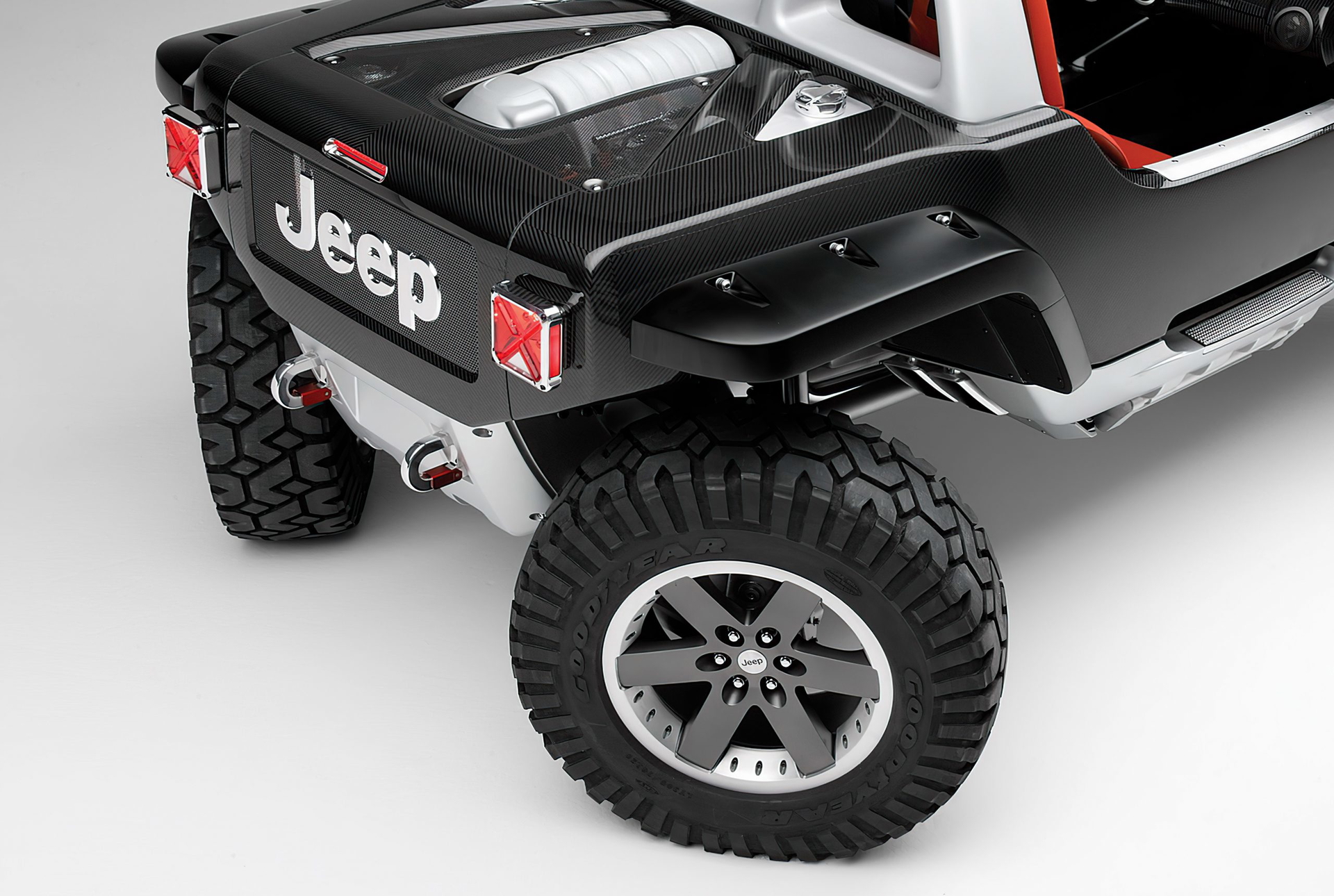 Este coche tiene tanto para contemplar que las enormes llantas de 20″, las salidas de escape dentro del guardabarros trasero, el cabrestante, los intermitentes integrados en retrovisor y piloto, la enorme brújula e incluso los motores sobresaliendo de su espacio, pasan desapercibidos. Sus elementos forman parte de un todo armonioso y brutal al mismo tiempo que, aunque hubiera sido cosa solo de ricos, me encantaría haber visto por las calles (y fuera de ellas).