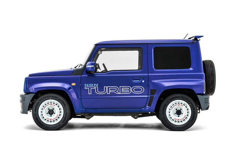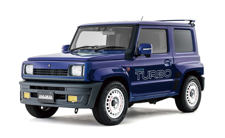 DAMD no es nuevo en esto, y menos, con el Jimny. Ya lo han transformado en un Range Rover, en un Mercedes Clase G, en un Lancia Delta o un Ford Bronco. También hicieron una versión del mítico R5 Turbo que te dejo en las fotos de abajo. Me hace especial gracia que los vinilos digan «NON TURBO».