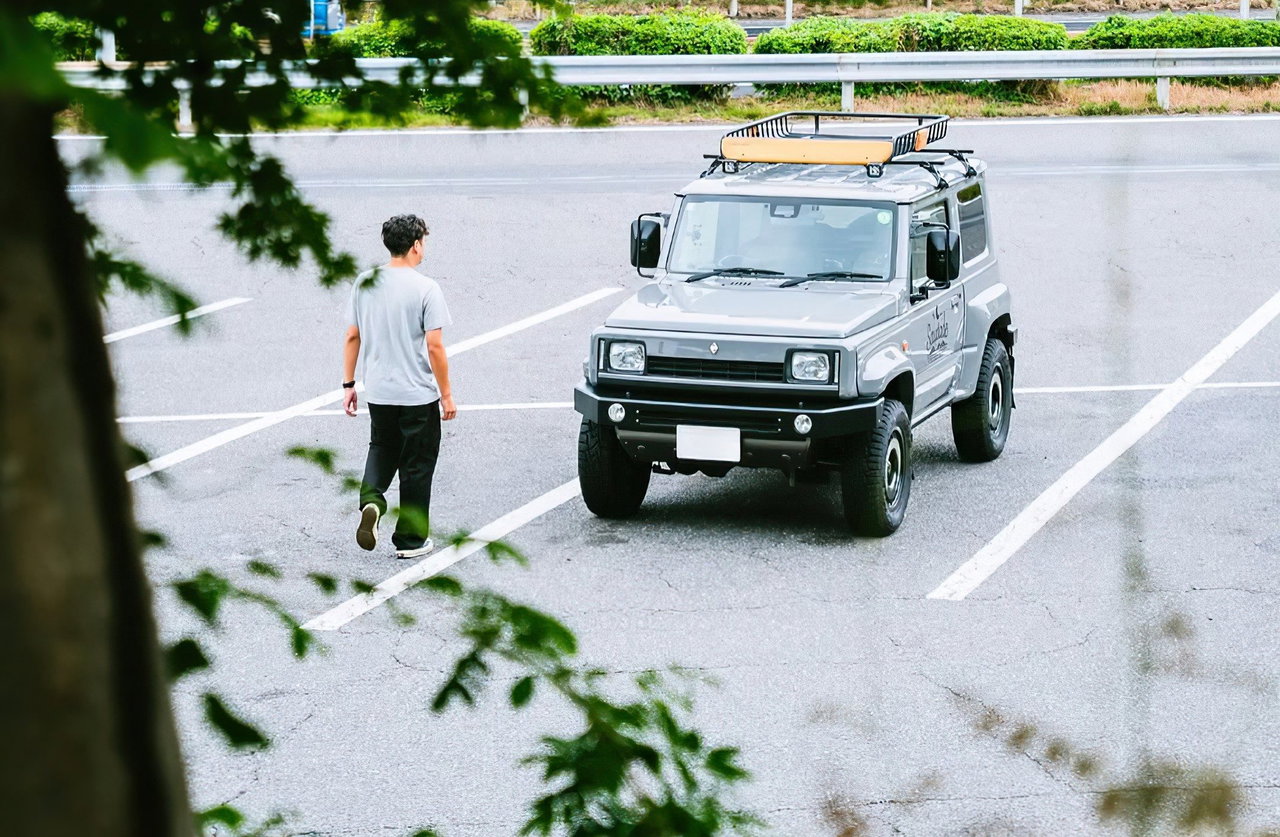 La esencia del Renault 5 nunca fue la de un todoterreno, pero si la base es un Suzuki Jimny, no queda otra que tirar la apuesta por el sendero de la aventura. Aquellas líneas angulosas del mítico R5 encajan muy bien en las formas cuadradas del Jimny, especialmente en el frontal con esa parrilla y los faros.