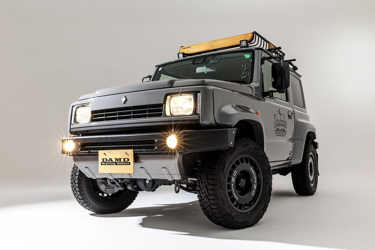 Te presento al DAMD Sierra Saudade, que no es otra cosa que un Suzuki Jimny con un kit inspirado en el clásico R5, desarrollado por la preparadora japonesa DAMD. Y ojito, porque comprando el coche nuevo y el kit completo, ya es más barato que un R5 aunque, eso sí, conseguirlo de esa manera en España sería prácticamente imposible.
