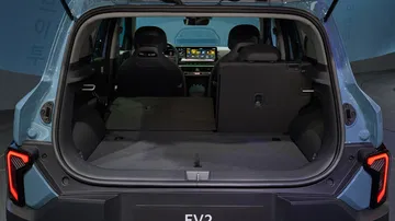 La plataforma eléctrica permite un aprovechamiento del espacio que no pueden igualar los modelos de combustión. Con un tamaño bastante escueto por fuera, el EV2 tiene una batalla de 2.565 mm y ofrece entre 885 y 958 mm de espacio para las piernas en las plazas traseras, unas cifras récord en su segmento, gracias a la banqueta deslizable.