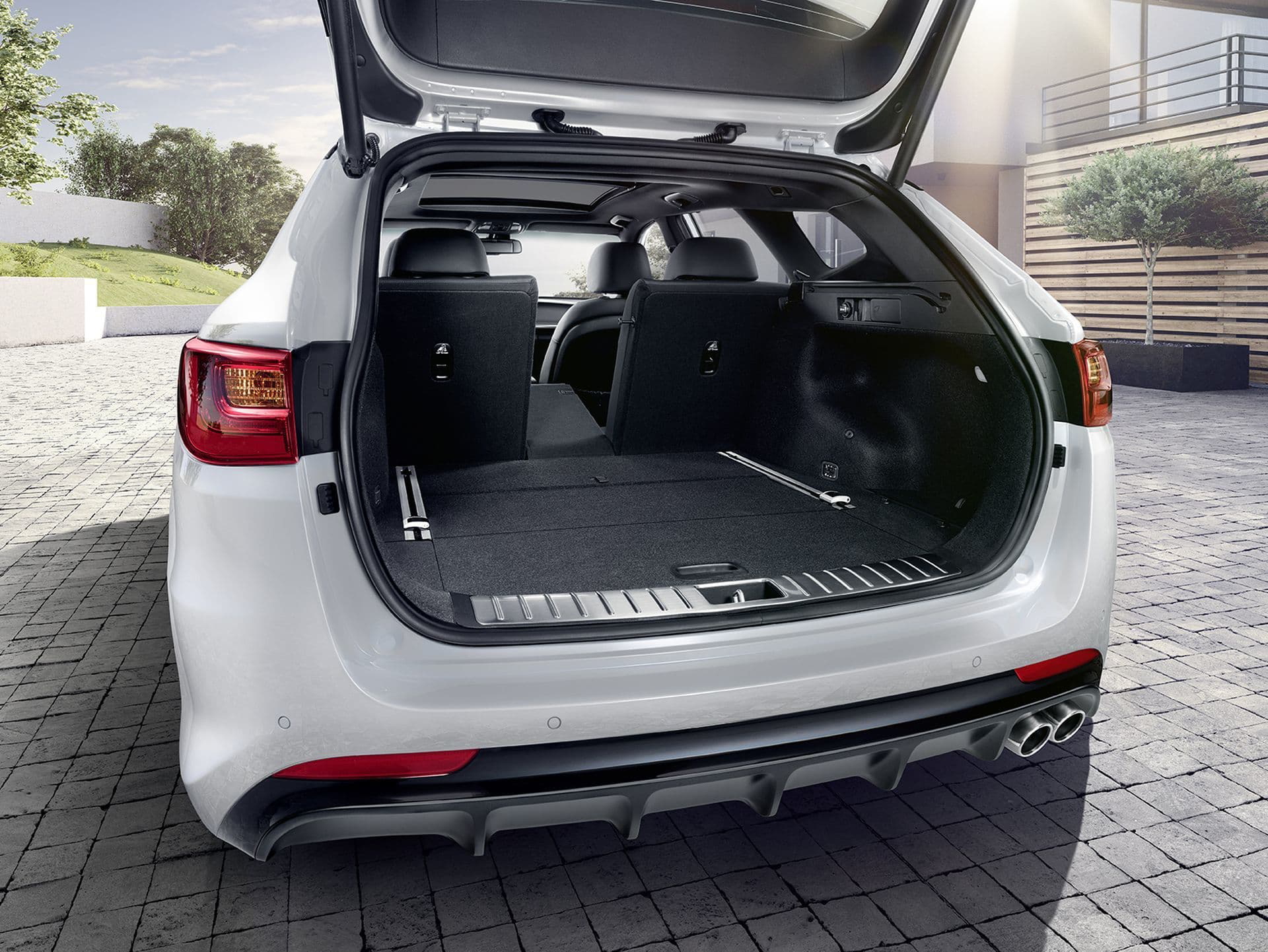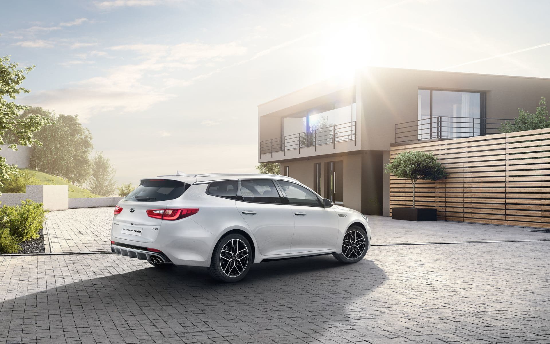 La primera impresión es la que cuenta en el mundo del automóvil. Es por ello que la gama del KIA Optima estrena novedades estéticas: el diseño del paragolpes delantero se ha renovado, con modificaciones en las ópticas y módulos de los faros antiniebla – la calandra sí que permanece invariable, a excepción de un nuevo acabado cromado, más brillante. En la parte trasera del coche – aunque KIA solo nos ha enseñado la versión familiar Sportswagon – encontramos unos pilotos LED rediseñados y un paragolpes de nuevo cuño. Un nuevo color rojo «Runway» y varios diseños de llantas de hasta 18″ cierran el apartado estético.